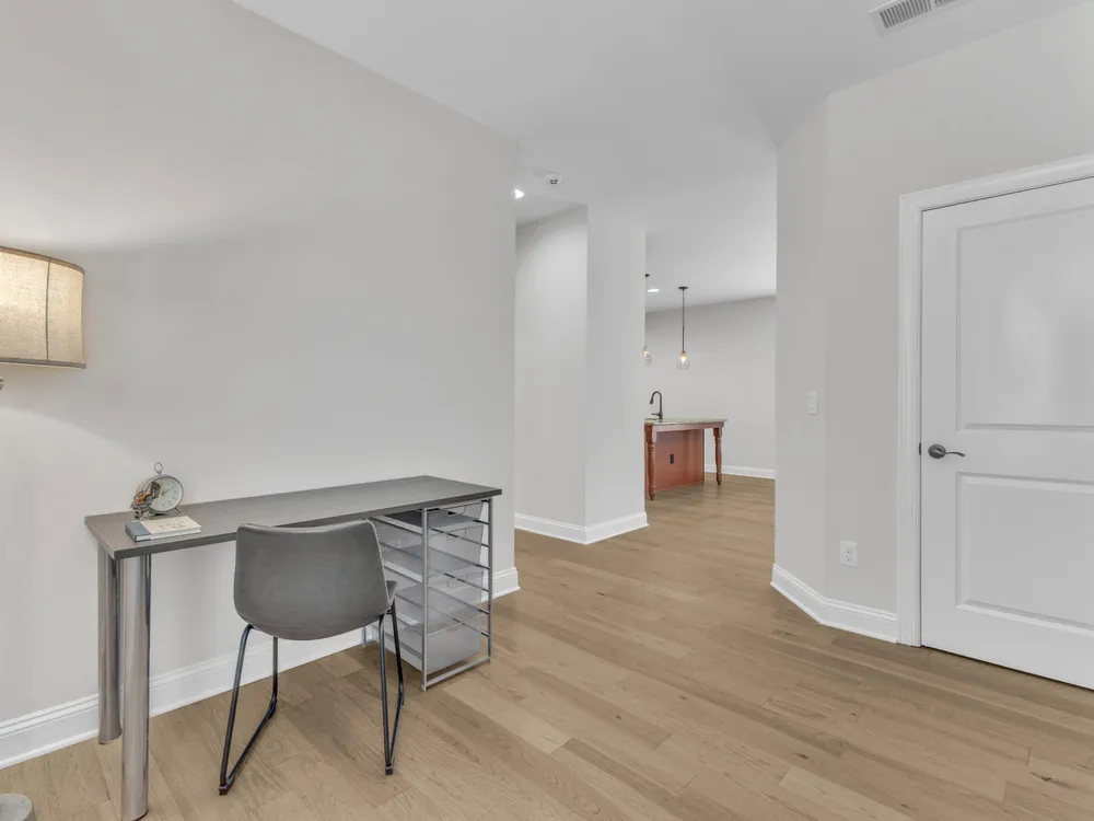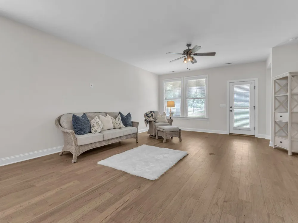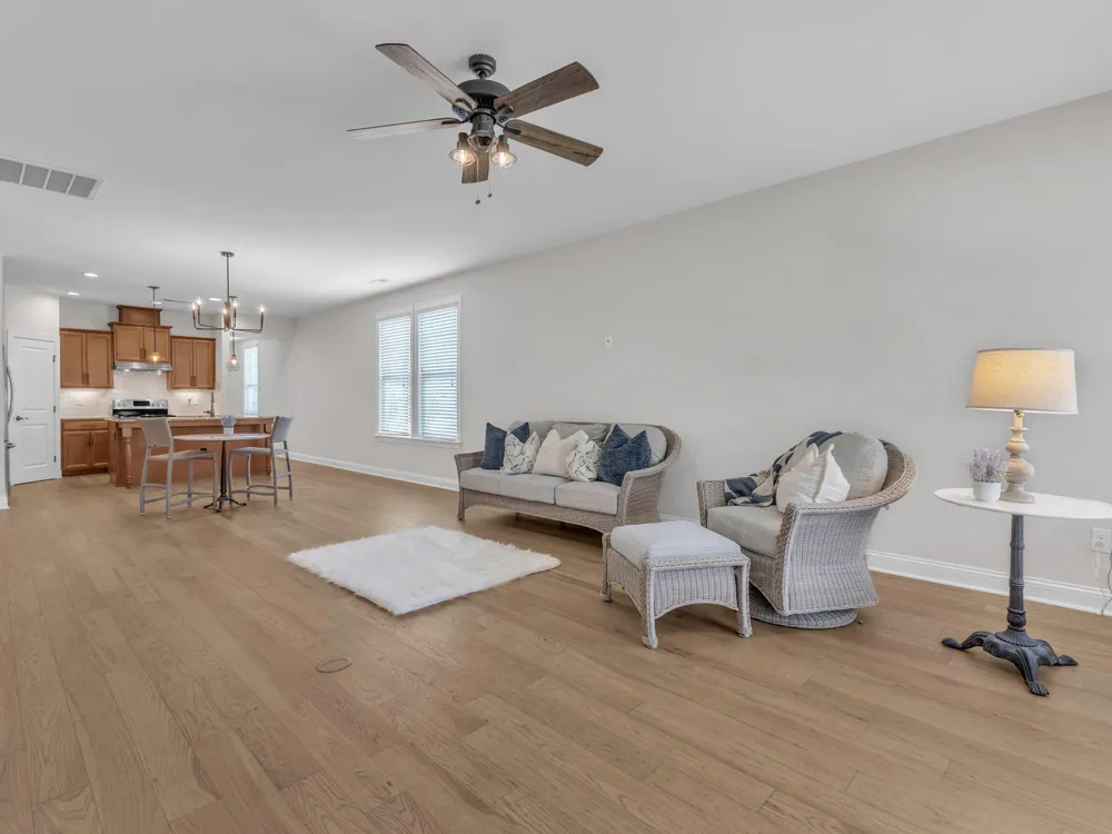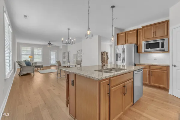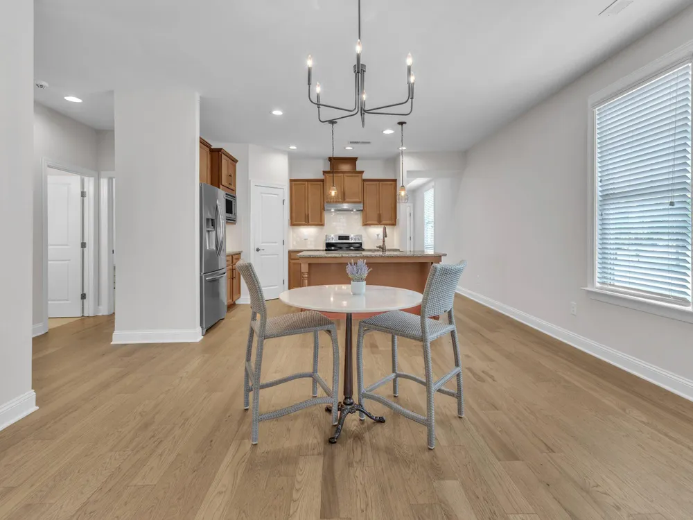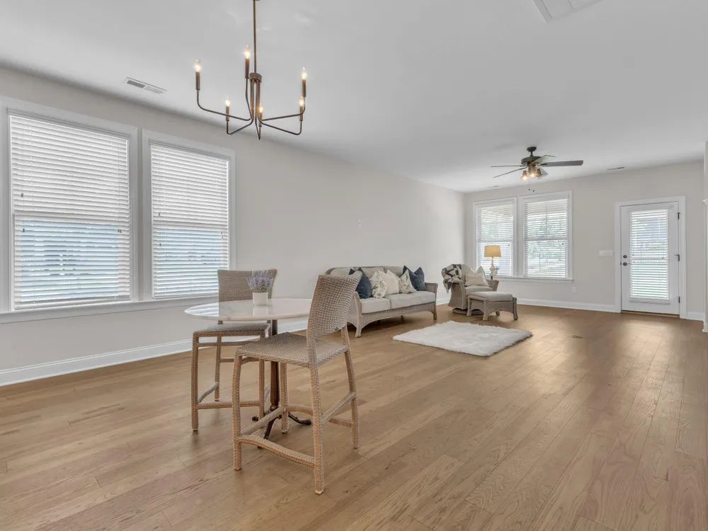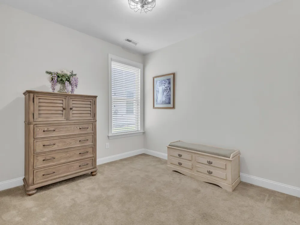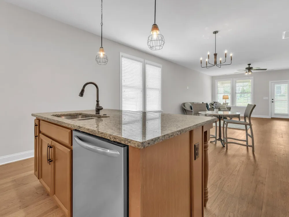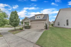 Charming 2-Bedroom Ranch with Office in Award-Winning 55+ Community - Creekside at Bethpage! Welcome to easy living in this refreshed 2-bedroom ranch with a dedicated office, located in the sought-after Creekside at Bethpage 55+ community! Step inside to discover brand new Charlotte Hickory wood flooring throughout the main living areas and a bright, open-concept floorplan that's perfect for both relaxing and entertaining. At the heart of the home is a gourmet kitchen featuring granite countertops, a stunning tile backsplash, abundant cabinetry, matching stainless steel appliances, an oversized walk-in pantry, and convenient counter bar seating. Thoughtfully designed, the kitchen seamlessly connects to a spacious living and dining area that's bathed in natural light from a full wall of windows. Retreat to the large Primary Suite, which boasts a tray ceiling, large bay window, ample room for a sitting area, and a luxurious en-suite bath with a glass-tiled shower and built-in bench, dual vanity with granite countertops featuring drawer storage, and a generous walk-in closet. On the other side of the home you will find a private guest bedroom and full bath, along with a versatile office space that includes a closet and can easily function as a third bedroom with the simple addition of doors. Enjoy peaceful outdoor living with a rocking-chair front porch and a covered back patio that overlooks scenic walking trails. Just a short stroll to the community clubhouse, where you'll enjoy resort-style amenities including a pool, fitness center, pickleball, planned social events and more. Unbeatable location—minutes to I-40, I-540, Brier Creek shopping, dining, medical facilities, and RDU Airport. This home truly offers the best in comfort, convenience, and community. A must-see!