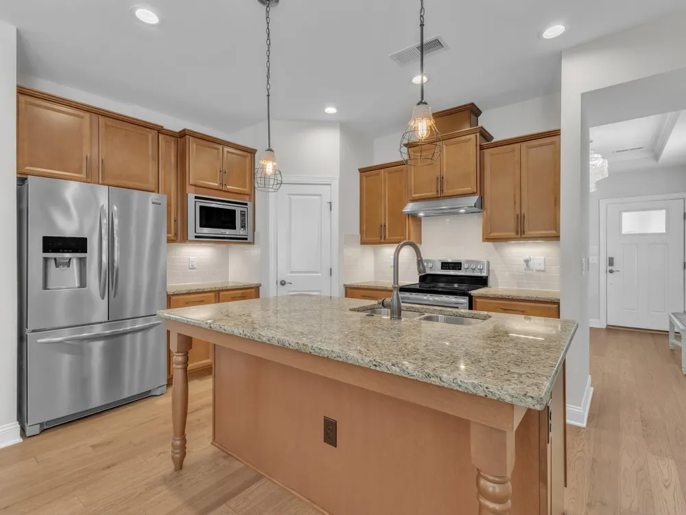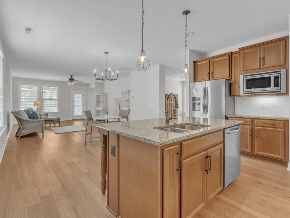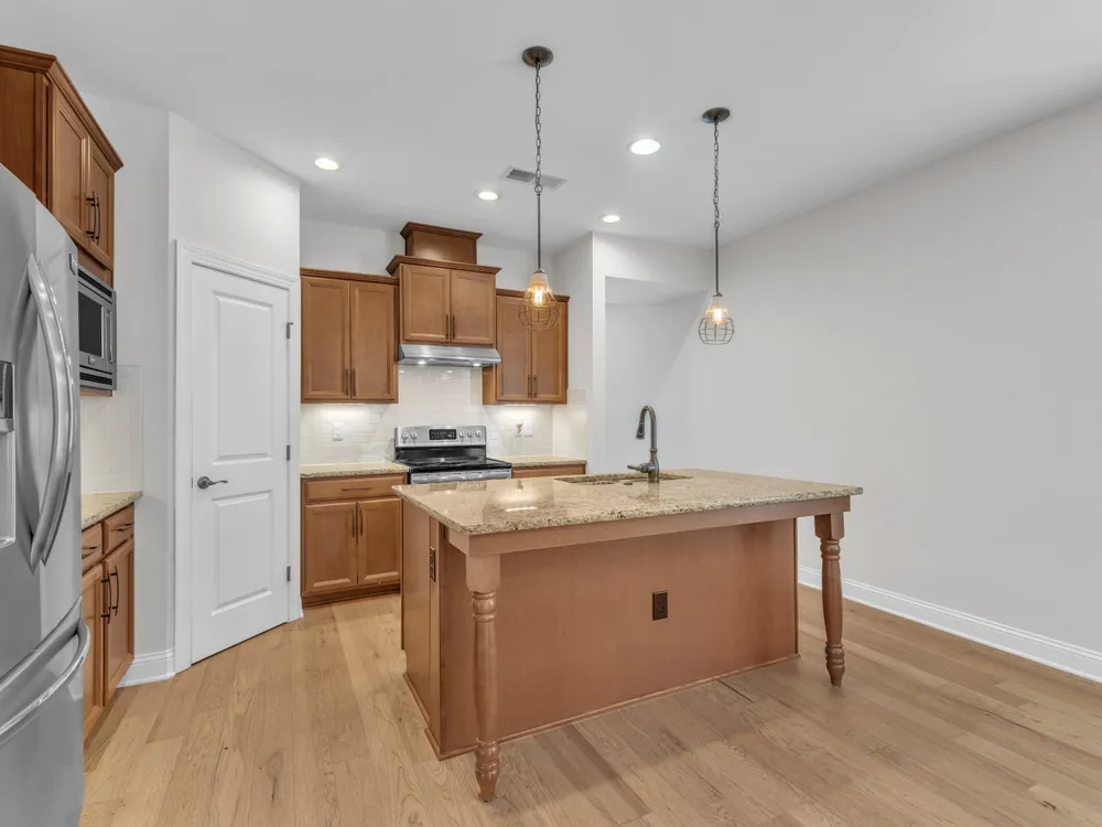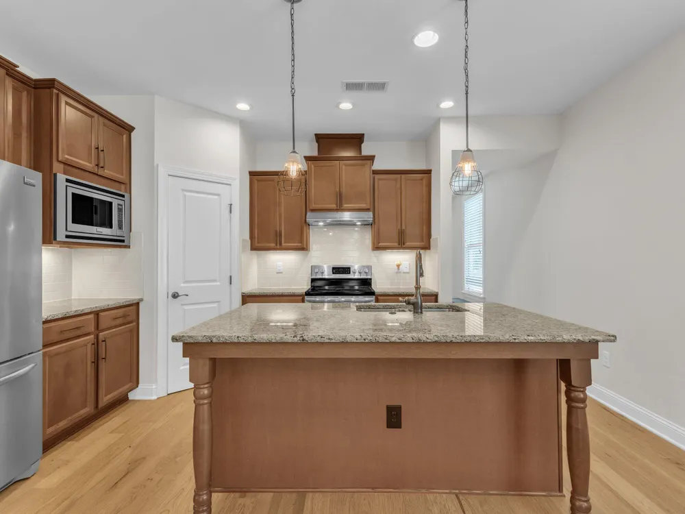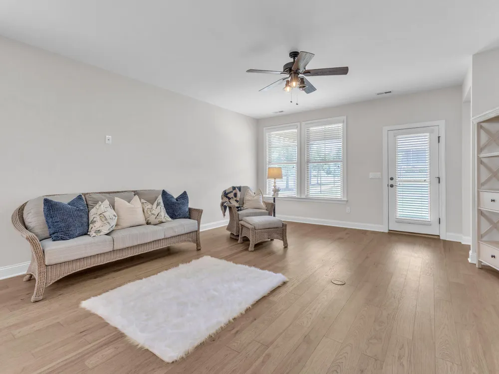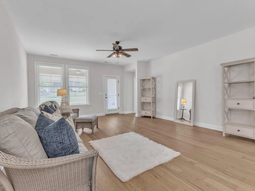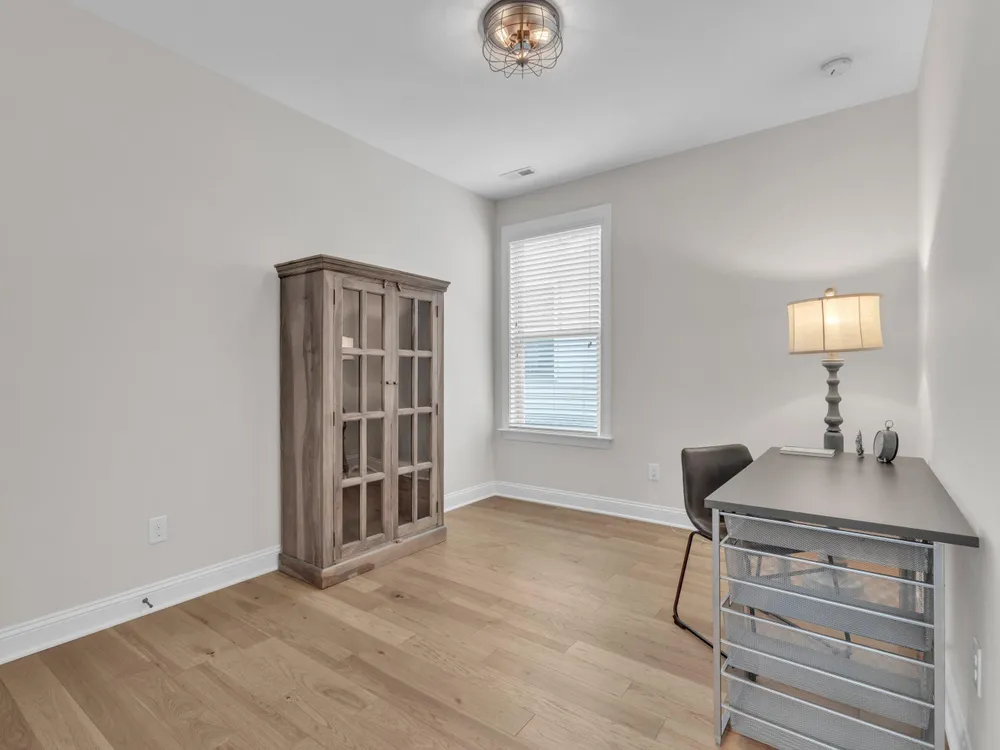 Charming 2-Bedroom Ranch with Office in Award-Winning 55+ Community - Creekside at Bethpage! Welcome to easy living in this refreshed 2-bedroom ranch with a dedicated office, located in the sought-after Creekside at Bethpage 55+ community! Step inside to discover brand new Charlotte Hickory wood flooring throughout the main living areas and a bright, open-concept floorplan that's perfect for both relaxing and entertaining. At the heart of the home is a gourmet kitchen featuring granite countertops, a stunning tile backsplash, abundant cabinetry, matching stainless steel appliances, an oversized walk-in pantry, and convenient counter bar seating. Thoughtfully designed, the kitchen seamlessly connects to a spacious living and dining area that's bathed in natural light from a full wall of windows. Retreat to the large Primary Suite, which boasts a tray ceiling, large bay window, ample room for a sitting area, and a luxurious en-suite bath with a glass-tiled shower and built-in bench, dual vanity with granite countertops featuring drawer storage, and a generous walk-in closet. On the other side of the home you will find a private guest bedroom and full bath, along with a versatile office space that includes a closet and can easily function as a third bedroom with the simple addition of doors. Enjoy peaceful outdoor living with a rocking-chair front porch and a covered back patio that overlooks scenic walking trails. Just a short stroll to the community clubhouse, where you'll enjoy resort-style amenities including a pool, fitness center, pickleball, planned social events and more. Unbeatable location—minutes to I-40, I-540, Brier Creek shopping, dining, medical facilities, and RDU Airport. This home truly offers the best in comfort, convenience, and community. A must-see!