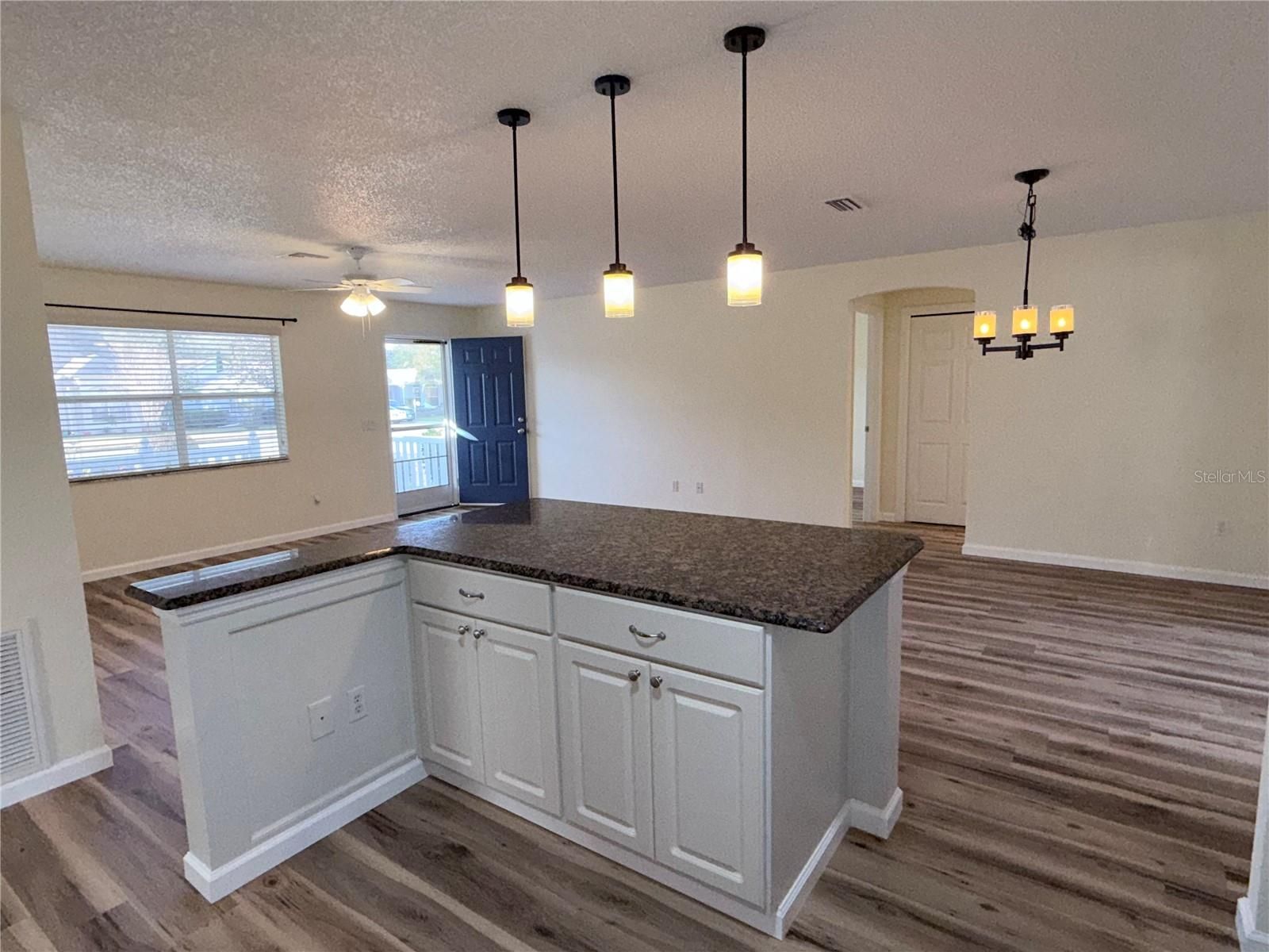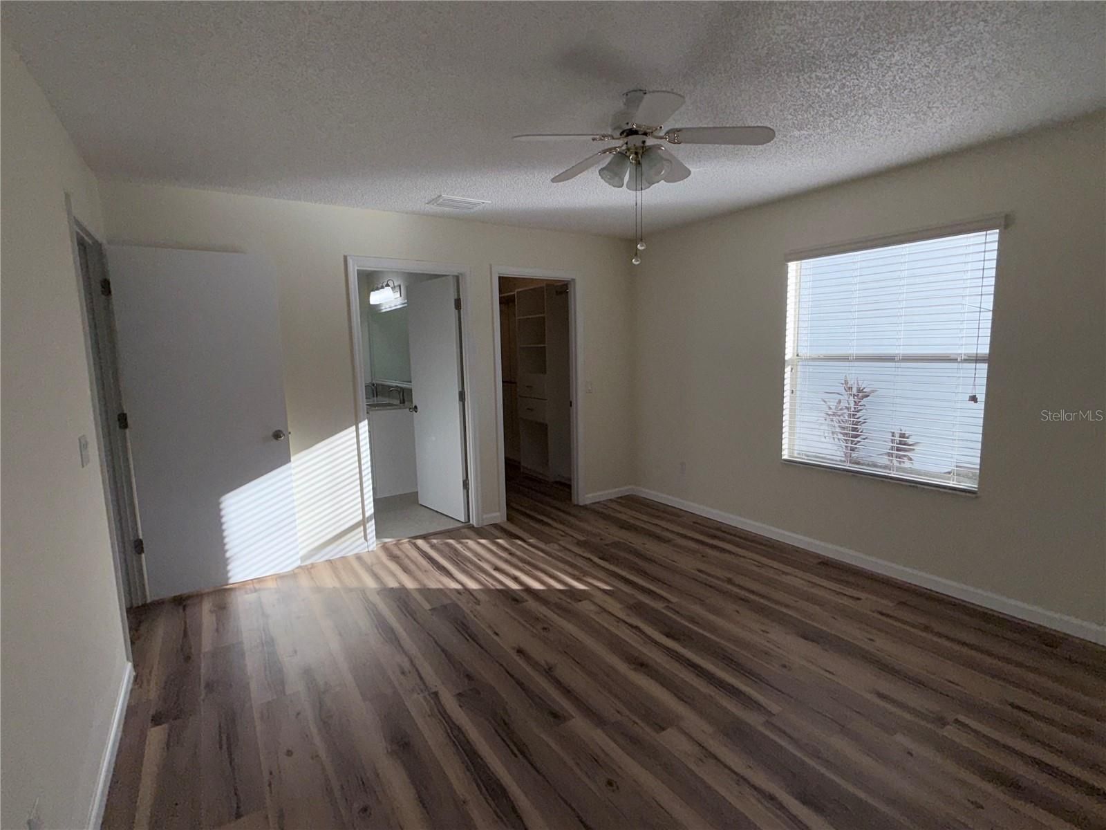 - Ceiling Fan(s), Open Floorplan, Main Level Primary, Solid Surface Counters, Split Bedrooms, Stone Counters, Thermostat, Walk-In Closet(s), Window Treatments