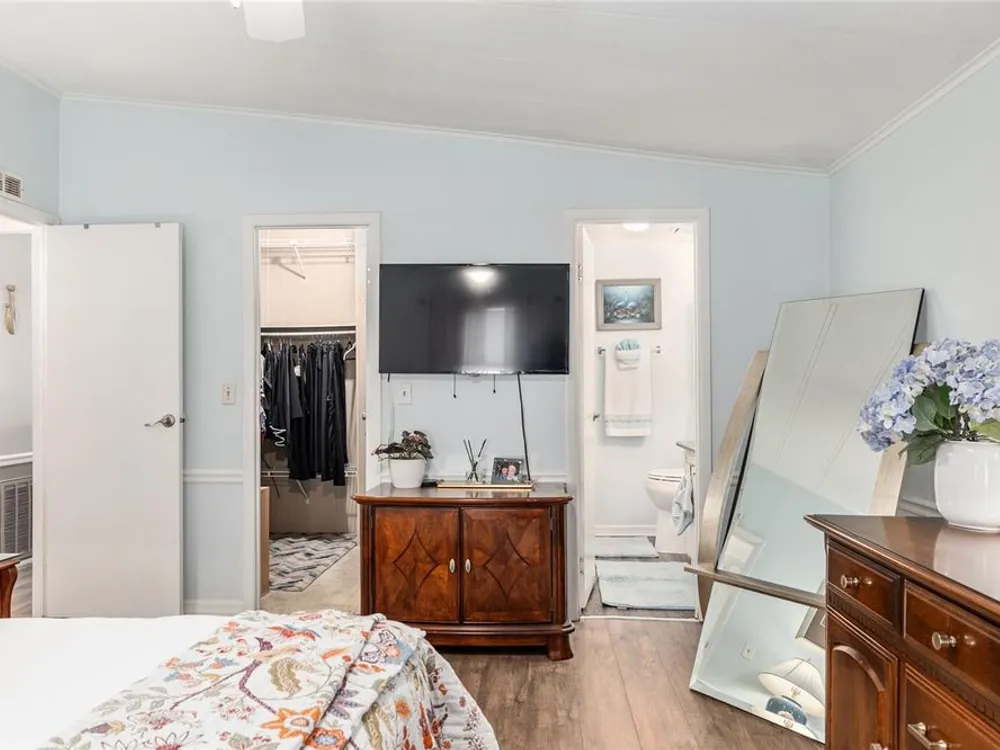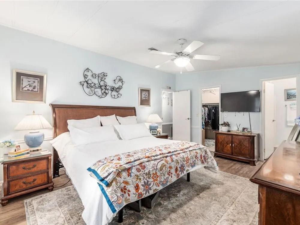 - Ceiling Fan(s), Dry Bar, High Ceilings, Solid-Wood Cabinets, Thermostat