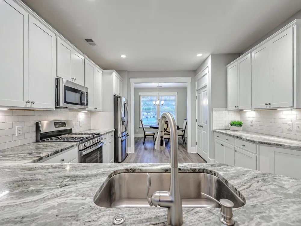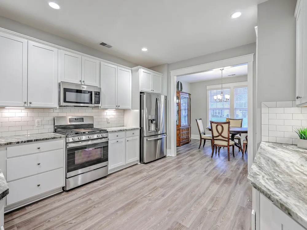 Beautiful home in Cresswind! This 55+ community is amazing and perfect for active adults, where every detail caters to comfort, convenience, sophistication and style! This floorplan offers 9' ceilings, new LVP flooring, neutral paint color and high end upgrades throughout. Kitchen features granite countertops, subway tile backsplash, loads of cabinets, stainless steel appliances (including gas range), roll-out shelves, recessed lighting and counter bar. Separate dining room opens to the kitchen and is perfect for formal gatherings. The living area is huge! It offers an additional dining space, has lots of natural light and gives access to the screened porch. The master suite features tray ceilings, TWO walk-in closets, dual granite vanities and largetile-surround shower. Spacious secondary bedrooms and full bath with tub/shower. Nice screened porch is perfect for relaxing and backs to a wooded buffer. This community is incredible! It's 55+ at it's best and offers the greatest of amenities...Clubhouse, fitness center, swimming pool, tons of activities and outdoor recreation like tennis, bocce & pickleball courts, walking trails and more. Come visit today!