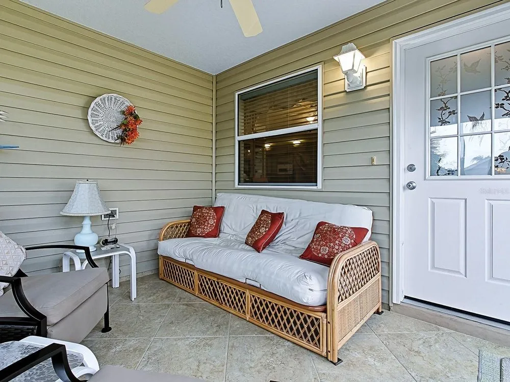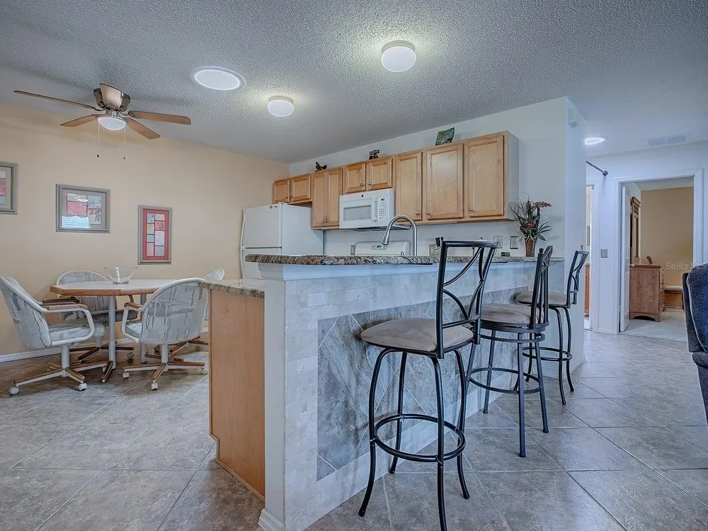 BOND PAID! ROOF 2023! HVAC 2024! WELL MAINTAINED COLONY PATIO VILLA LOCATED IN THE VILLAGE OF SABAL CHASE, CLOSE PROXIMATEY TO LAKE SUMTER LANDING MARKET SQUARE AND TWO (2) BLOCKS FROM SABAL CHASE POOL. Spacious, Open-Concept Living/Dining Area with Two Bedrooms & Two Baths in Oleander Villas, right off of Canal Street near so many recreational options. Designed for both Comfort and Style, this Villa features easy-care TILE FLOORING throughout the main living area and cozy carpet in bedrooms. The KITCHEN features Wood Cabinetry, Granite Counters, Solar Tube, White Appliances w/ GAS Range, a Closet Pantry and a Breakfast Bar. The PRIMARY SUITE offers a Large Walk-in Closet and a refreshed EN-SUITE with GRANITE COUNTERS and an UPDATED STEP-IN TILE SHOWER. The Guest Bedroom with Built in Closet has an adjacent bath with Granite Countertop Vanity, updated TILE Tub/Shower combo. Enjoy relaxing or entertaining in the Enclosed Lanai, perfect for year-round use. The Front & Side Patio have been enlarged for additional outdoor enjoyment. Laundry Closet is located in the Kitchen for everyday convenience. The Garage includes space for your golf cart, and there are pull down stairs to access the attic. WITH BOND PAID & A PRIME LOCATION NEAR ALL THE VILLAGES AMENITIES, THIS MOVE-IN READY VILLA IS A PERFECT FLORIDA RETREAT, SNOW BIRD GET-AWAY, and/or MAKES FOR A TERRIFIC RENTAL! *FURNISHINGS OPTIONAL*