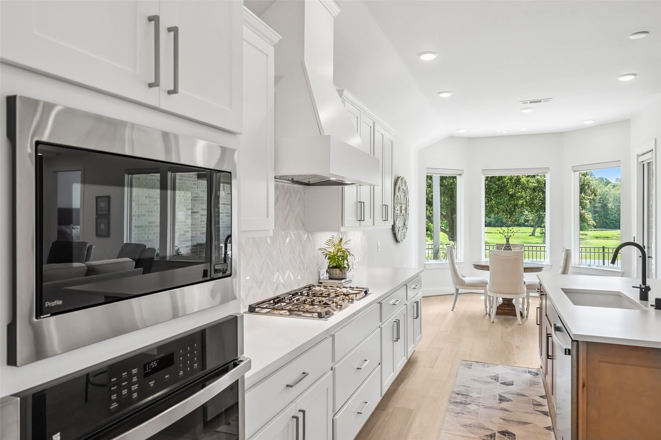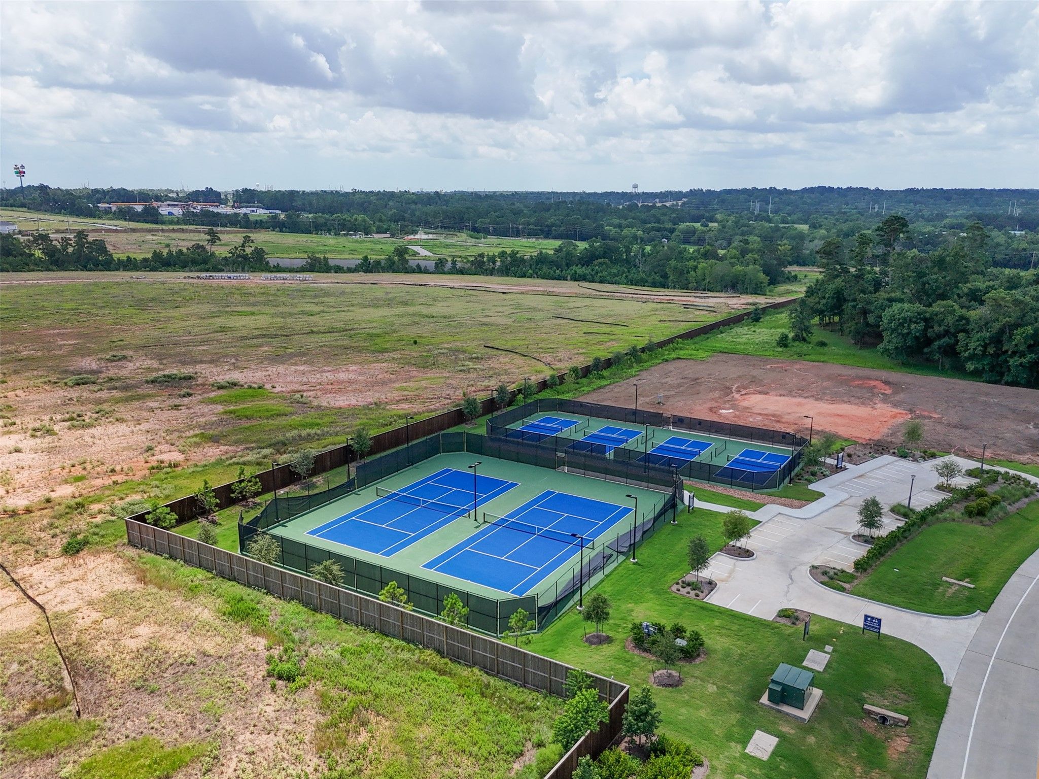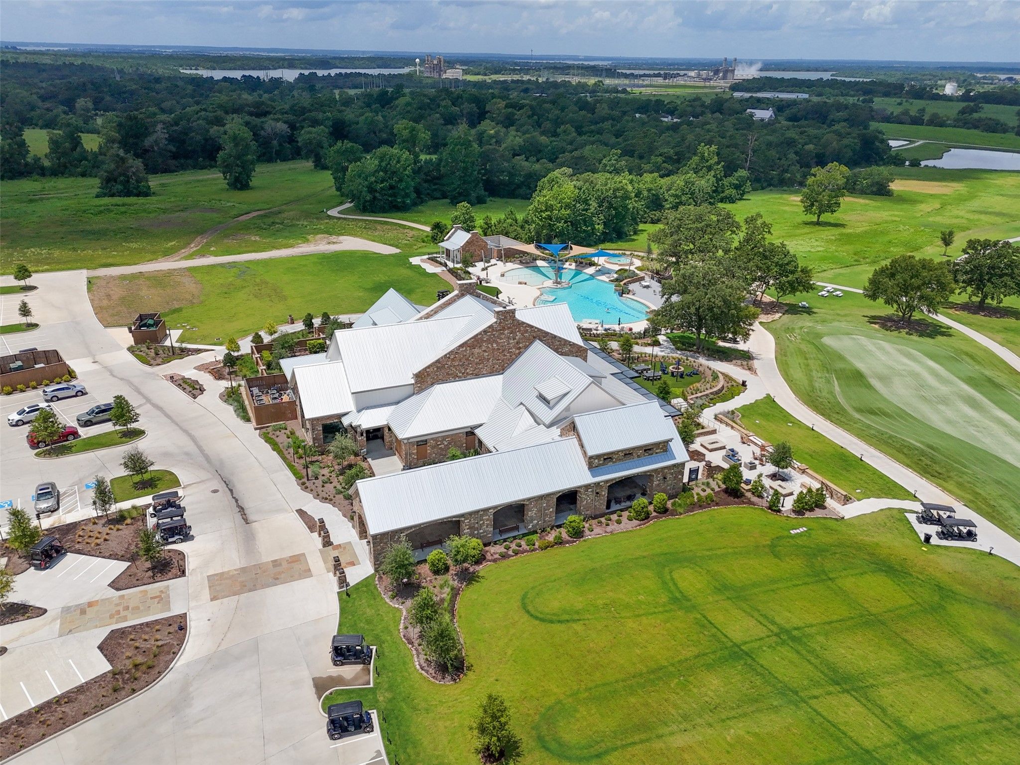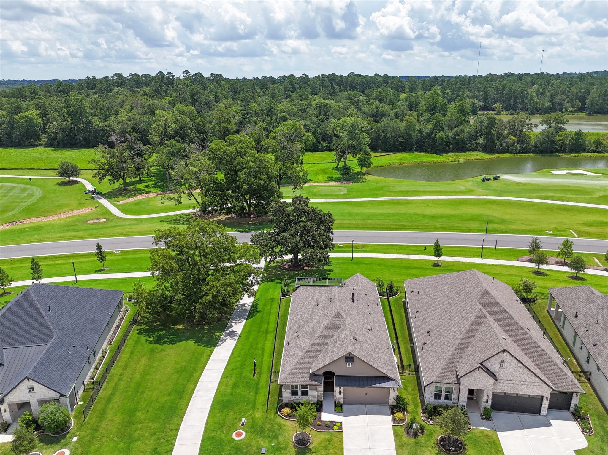 Outstanding resort-style community of Chambers Creek known as Houston's Hill Country. Rolling hills, lakes, trails, golf, vineyard (join planting/harvesting/al fresco dining, tastings), pool/club house, private marina, community garden, tons more! Gorgeous home on corner lot overlooks golf course from back lanai w/outdoor kitchen, custom louvered pergola. Single-story 3 bedroom, 3 bath home has inviting atmosphere w/modern wood floors, designer colors/finishes. Home office. Living has corner modern rustic FP, window wall w/expansive breathtaking views. Kitchen is stunning w/high end quartz counters, herringbone marble backsplash. Coffee bar, walk-in pantry, island with seating. Casual dining space surrounded by windows/views. Laundry room has space for fridge. Primary suite has wall of windows with captivating views, ensuite with dual vanities, walk-in frameless glass shower, large walk-in closet. Bedroom 2 has full bath nearby. Bedroom 3 has ensuite. Water softener & a generator.