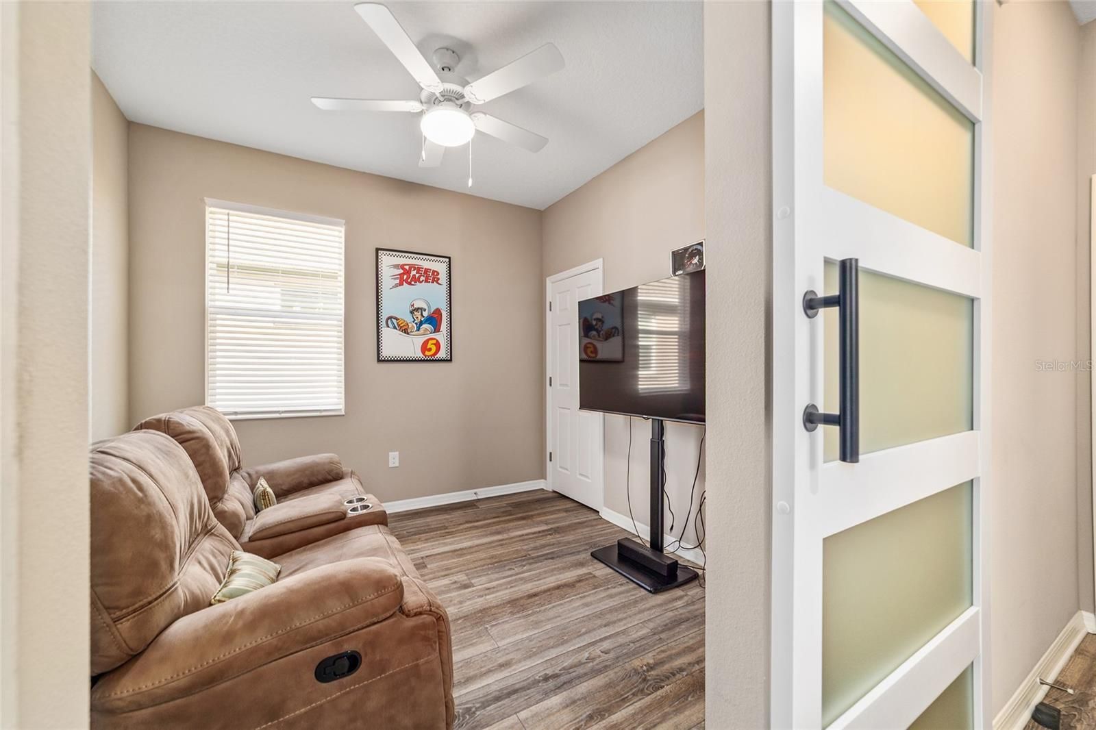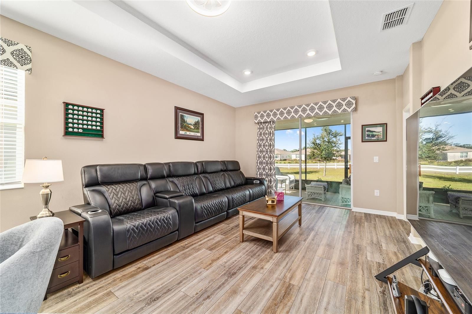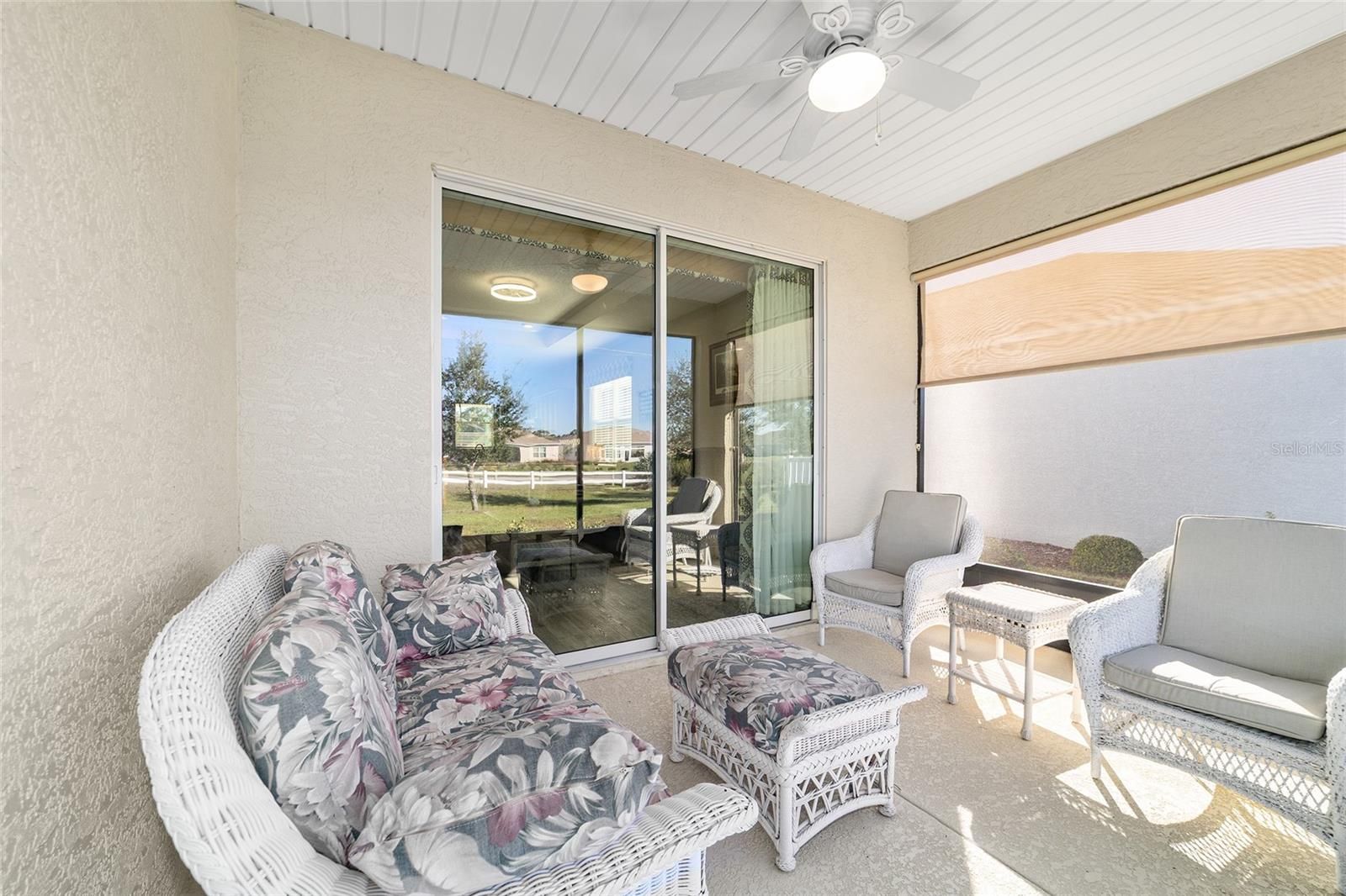 PRIVATE LOT: This fully furnished Tamar on a private lot in Crescent Ridge 3 is a true bargain!! This well-appointed 2 bedroom, 2 bathroom, 2 car garage has a versatile flex room with a barn door that can double as a 3rd bedroom or as an office or den. Step into the future with this fully automated home has smart devices that make home living easy including light switches, blinds, irrigation system, thermostat, security cameras, doorbell, and garage door that can be controlled by an Alexa device as well as an Electric Vehicle charger. The kitchen has a luxurious look with solid wood cabinets with crown molding, extra pot drawers, granite counters, stylish backsplash, and stainless-steel appliances. The breakfast bar is also tiled to coordinate with the decor while also protecting from scuffs. The main bedroom has a large walk-in closet as well as an ensuite bathroom with dual vanity sinks and a frameless zero-entry shower. Designer features can be seen throughout with luxury vinyl floors, tray ceilings, and builder installed solar. Best of all, enjoy a perfect northern exposure from the lanai with NO REAR neighbor for the ultimate in privacy. Crescent Ridge is a fully solar community in On Top of the World community that features fully sodded and irrigated lots as well as curbside mail delivery and waste collection. On Top of the World is Ocala's premier 55+ active adult resort golf community with golf cart access to 2 shopping centers.