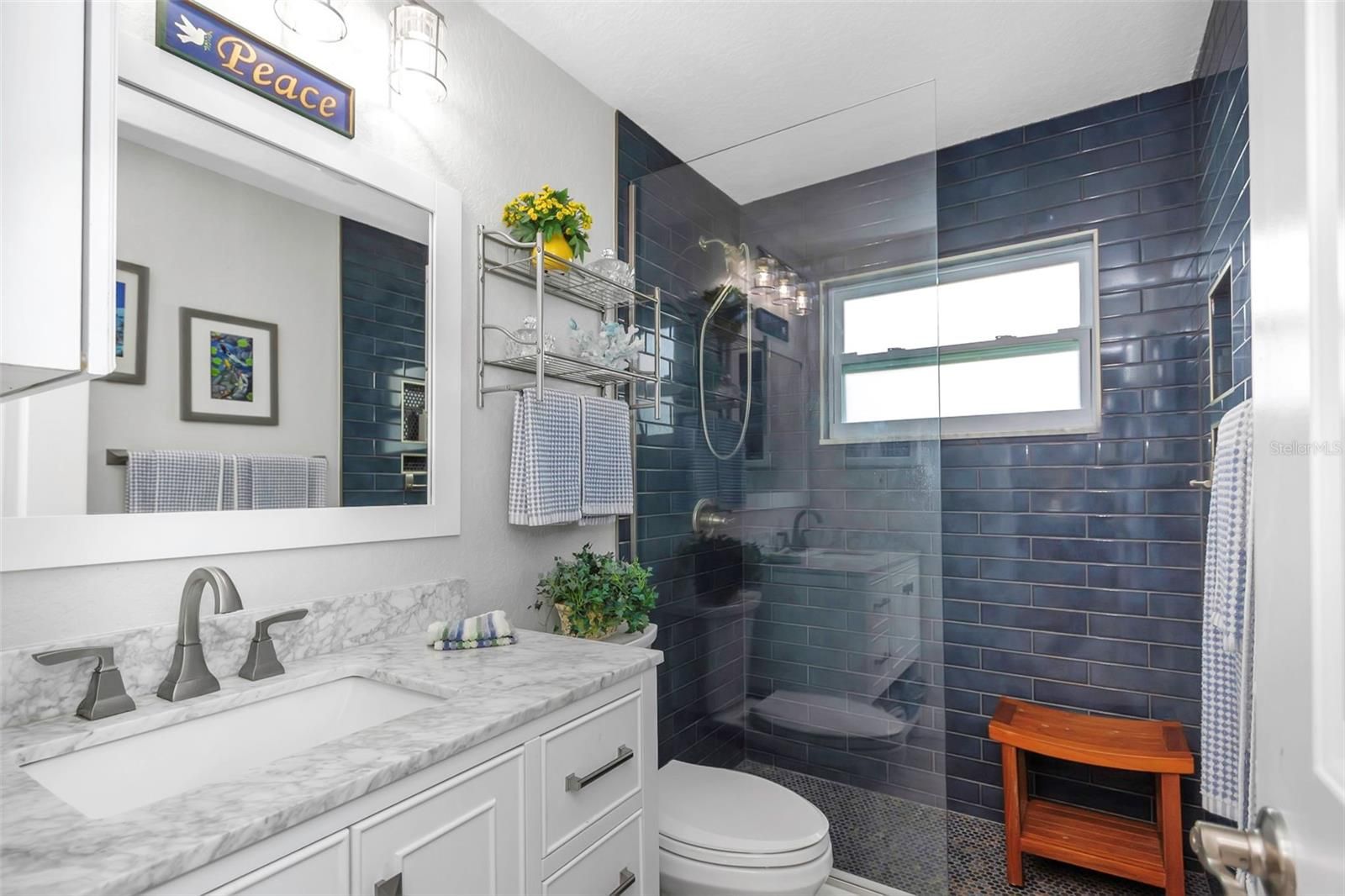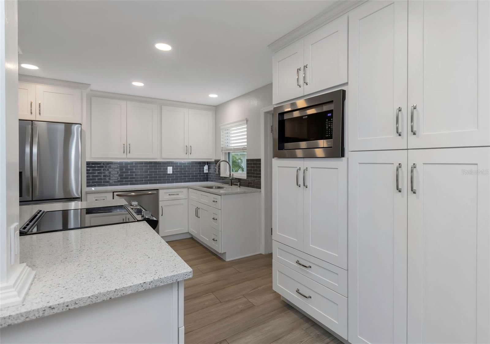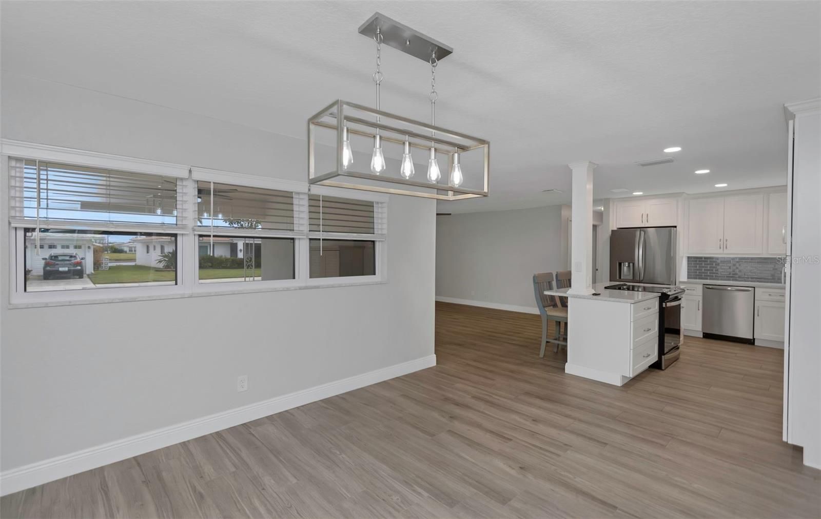 Welcome to this beautifully updated Carlton model in the friendly 55+ community of The Mainlands, Unit Three. This three-bedroom, move-in-ready home stands out with exceptional curb appeal, featuring fresh landscaping, new paver walkways, a spacious rear patio, double paved parking pad, and a charming covered front porch. Inside, the open floor plan centers around a dream kitchen with a large island, quartz countertops, soft-close cabinetry, and brand-new stainless steel appliances. Easy-care wood plank tile flooring runs throughout, creating a modern, cohesive look. The spacious dining area is ideal for everyday living and entertaining. At the rear of the home, a versatile bonus room overlooks the backyard and works perfectly as a den, home office, or guest space. This area also includes a convenient ensuite half bath and laundry. Two comfortable bedrooms and a fully renovated bathroom complete the interior. This home truly shines in a community where many residences look alike, offering unique updates and thoughtful design both inside and out. Residents of Unit Three enjoy an exclusive recreation area with a clubhouse featuring meeting rooms, a stage, full kitchen, and library. Outdoor amenities include a large swimming pool, shuffleboard courts, and outdoor cooking areas. A full calendar of social events—organized by the Unit Three Social Club—brings neighbors together for breakfasts, dances, bingo, and more. The $477 monthly maintenance fee covers water, sewer, trash, cable and internet, lawn care, reclaimed-water irrigation, exterior painting and pressure washing, and roof repair and maintenance—delivering truly maintenance-free living. Golf carts are welcome, and up to two domestic pets are allowed. Conveniently located just off US-19, The Mainlands offers easy access to shopping, dining, downtown St. Petersburg, Tampa, and award-winning Gulf beaches. Whether you’re looking for a full-time residence or a seasonal retreat, this home offers the perfect blend of style, comfort, and the Florida lifestyle.