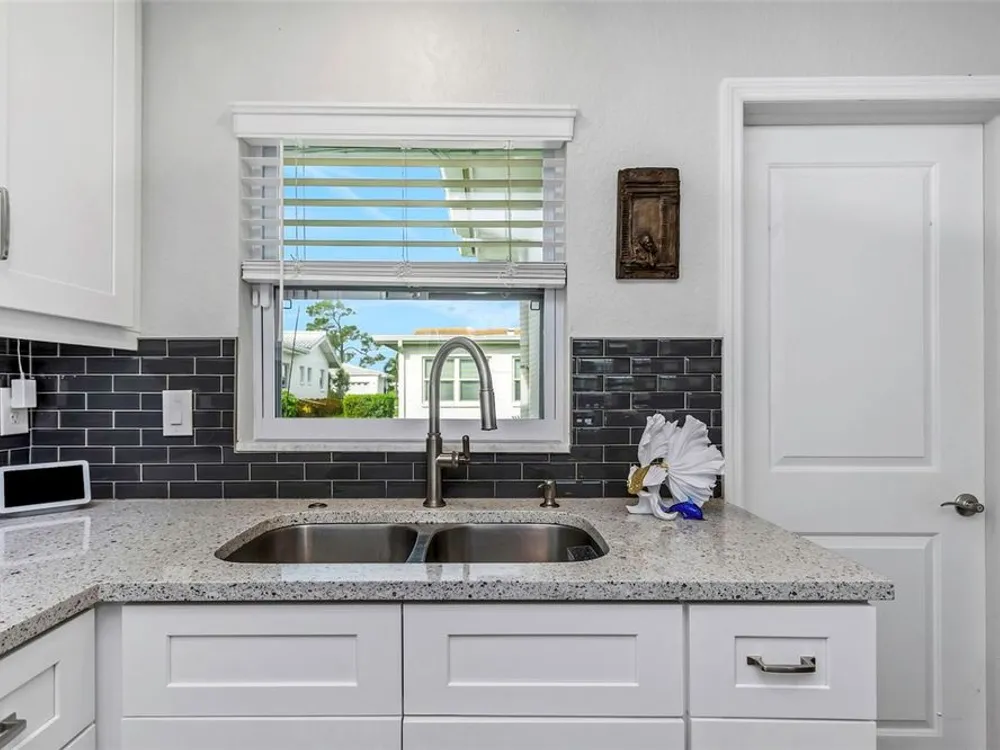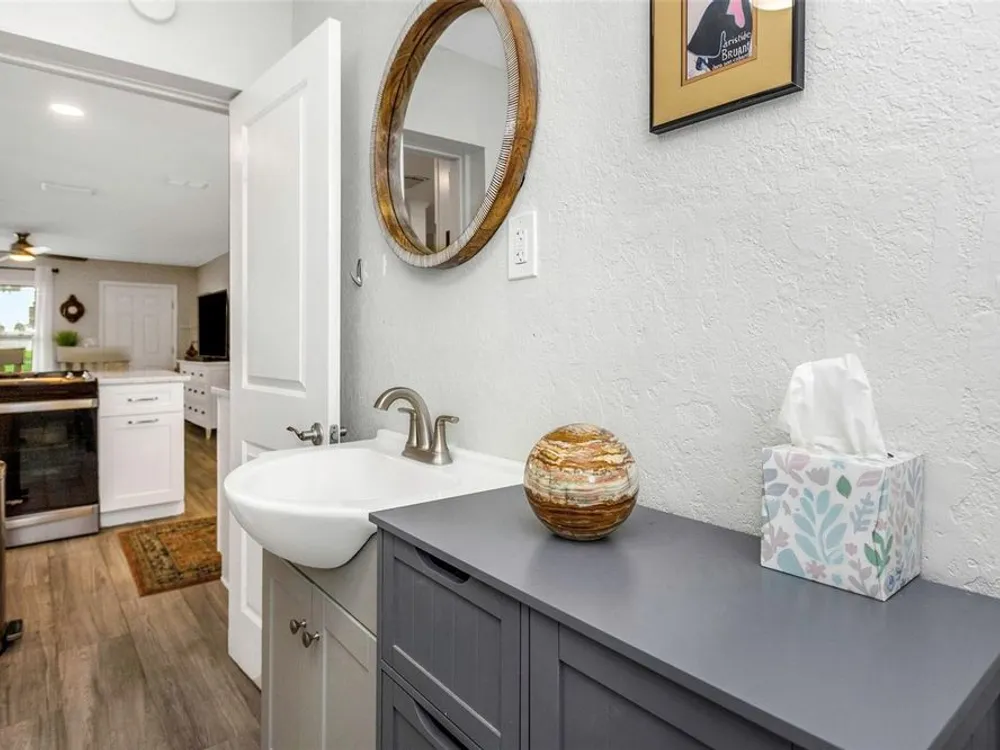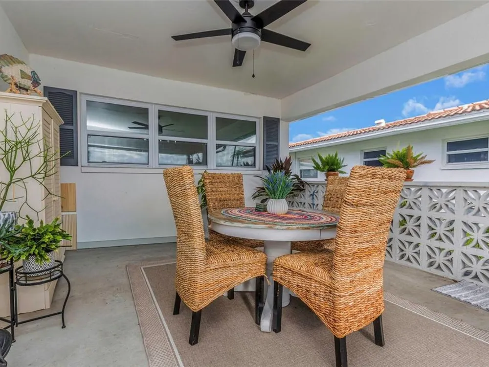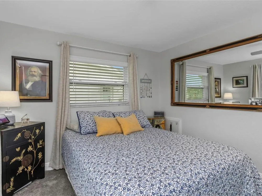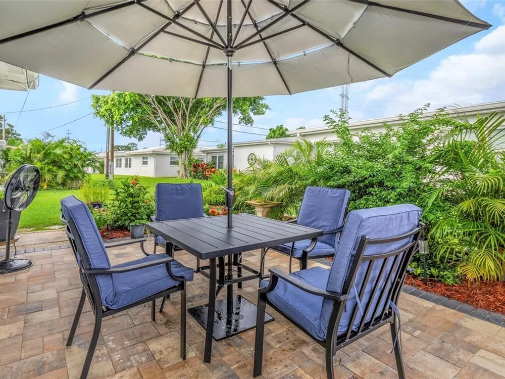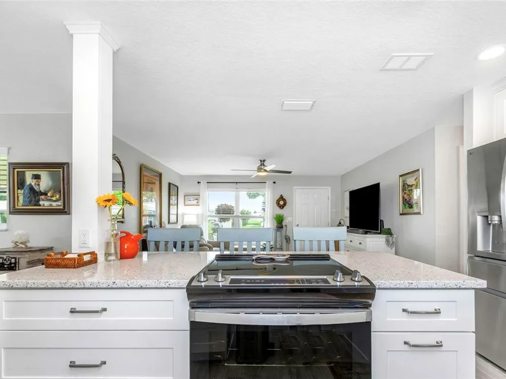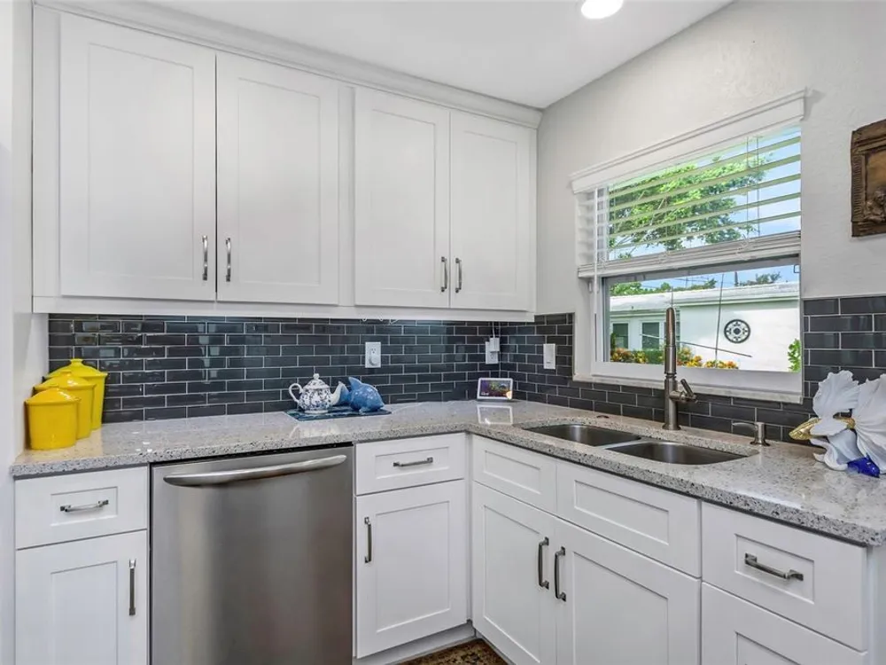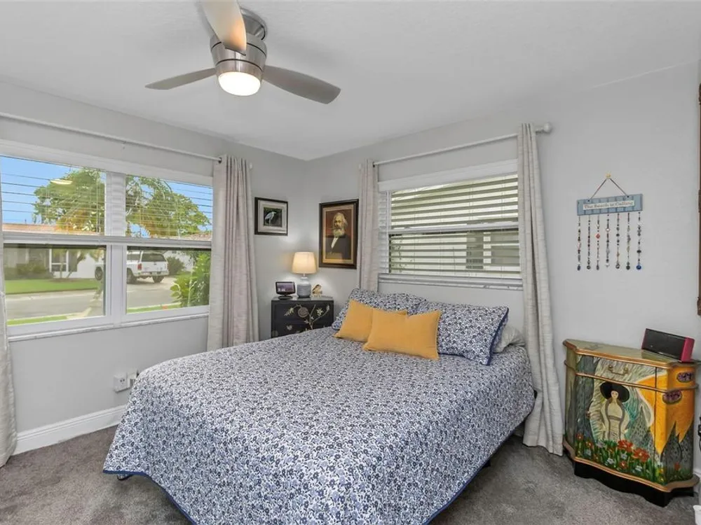 Welcome to this beautifully updated Carlton model in the friendly 55+ community of The Mainlands, Unit Three. This three-bedroom home is truly move-in ready and offers standout curb appeal with fresh landscaping, new paver pathways, a spacious rear patio, a double paved parking pad, and a charming covered front porch. Inside, the open floor plan features a dream kitchen with a large island, quartz countertops, soft-close cabinetry, and brand-new stainless steel appliances. Easy-care wood plank tile flooring flows throughout the home, creating a modern and cohesive feel. The spacious dining area is perfect for family meals and entertaining. At the rear of the home, a versatile bonus room overlooks the backyard and makes an ideal den, home office, or guest space. This room also includes a convenient ensuite half bath combined with the laundry area. Two comfortable bedrooms and a fully renovated bathroom complete the interior. This property truly stands out in a community where many homes look alike — offering unique updates and thoughtful touches inside and out. Unit Three residents enjoy their own exclusive recreation area, featuring a clubhouse with meeting rooms, a stage, a full kitchen, and a library. Outdoors, there’s a large swimming pool, shuffleboard courts, and outside cooking facilities. A full calendar of social events, organized by the Unit Three Social Club, brings neighbors together for breakfasts, dances, bingo, and more. The monthly maintenance fee of $477 covers water, sewer, trash, cable/internet, lawn care, irrigation with reclaimed water, exterior painting and pressure washing, and roof repair/maintenance — making this true maintenance-free living. The community also welcomes golf carts and up to two domestic pets. Conveniently located off US-19, The Mainlands offers easy access to shopping, dining, downtown St. Petersburg, Tampa, and award winning Gulf beaches. Whether you’re seeking a full-time residence or a seasonal retreat, this home delivers the perfect blend of style, comfort, and Florida lifestyle.