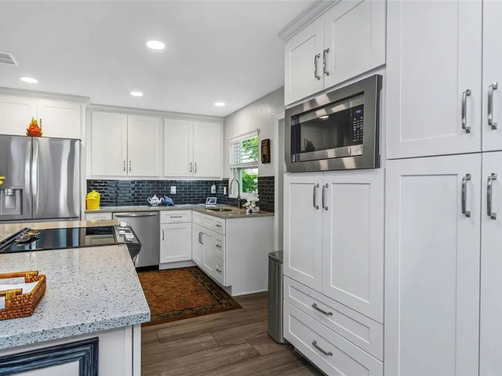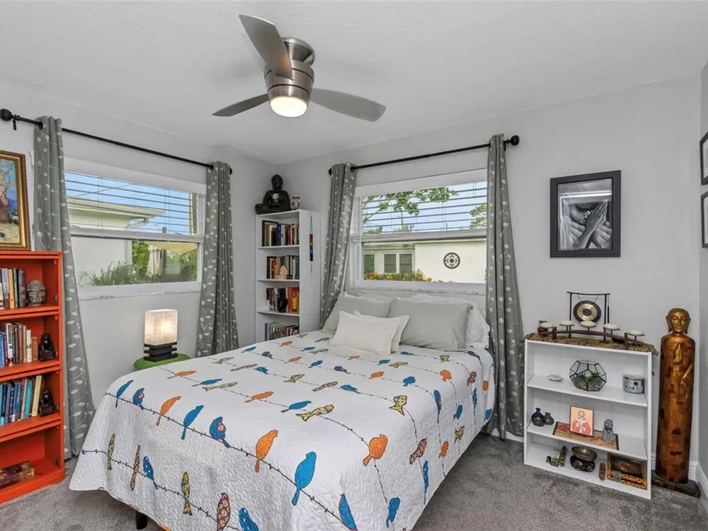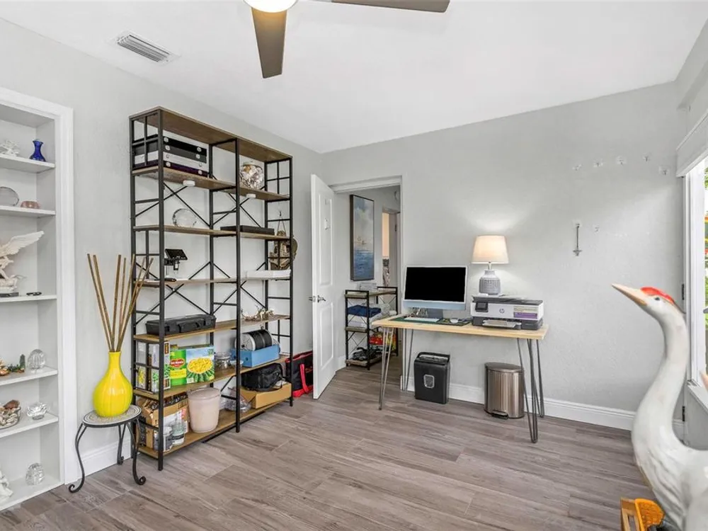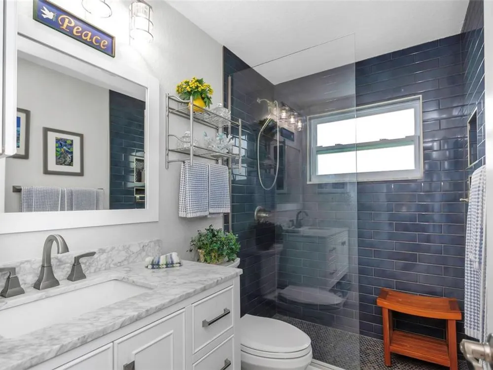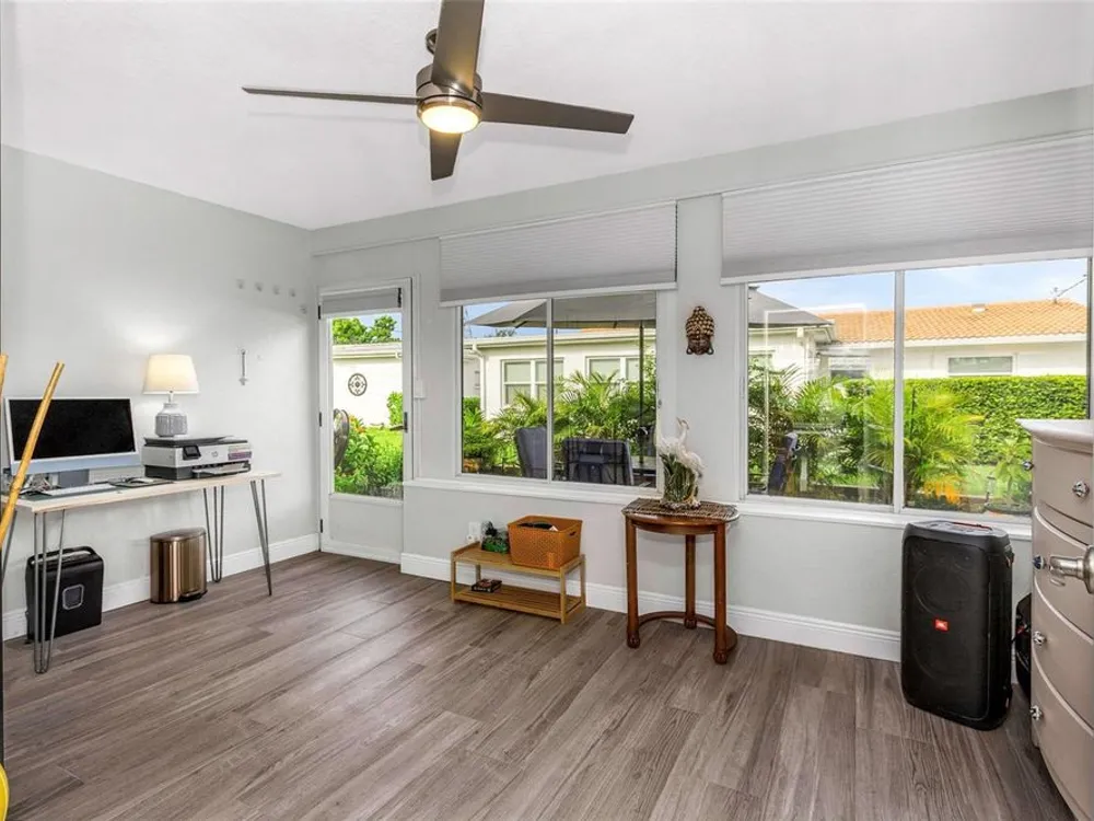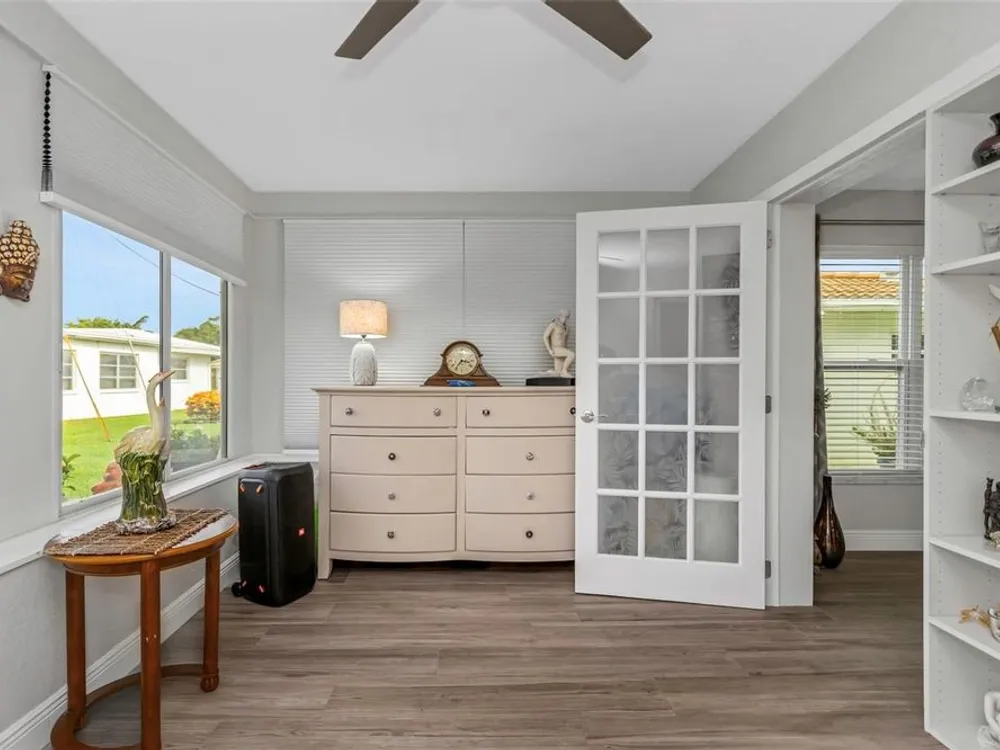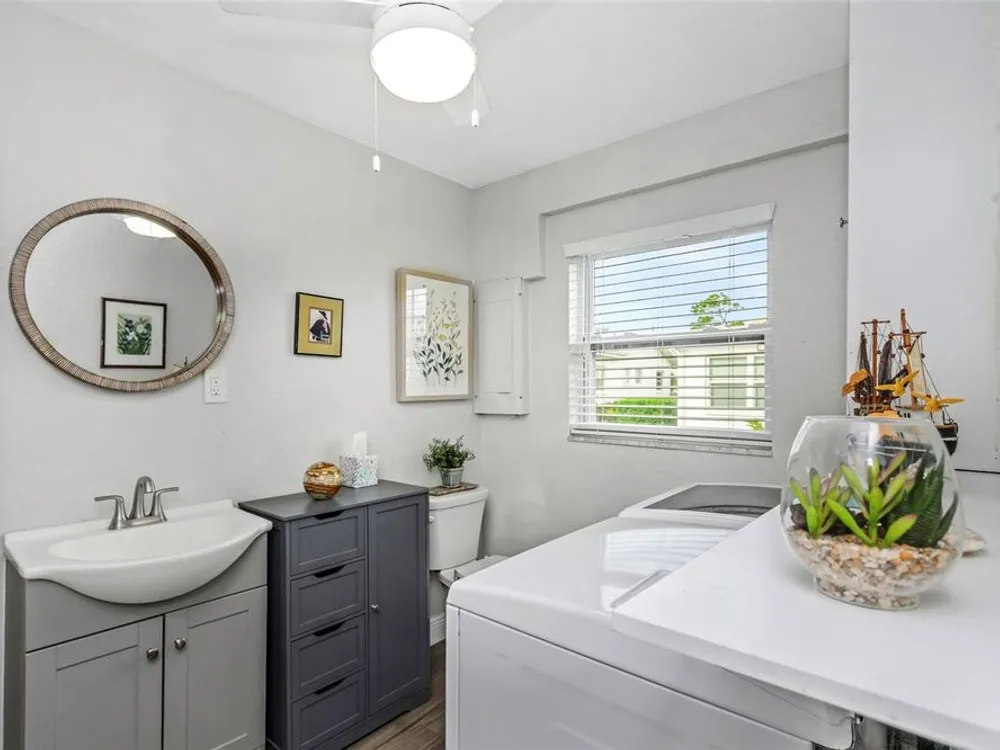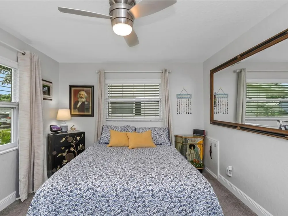 Welcome to this beautifully updated Carlton model in the friendly 55+ community of The Mainlands, Unit Three. This three-bedroom home is truly move-in ready and offers standout curb appeal with fresh landscaping, new paver pathways, a spacious rear patio, a double paved parking pad, and a charming covered front porch. Inside, the open floor plan features a dream kitchen with a large island, quartz countertops, soft-close cabinetry, and brand-new stainless steel appliances. Easy-care wood plank tile flooring flows throughout the home, creating a modern and cohesive feel. The spacious dining area is perfect for family meals and entertaining. At the rear of the home, a versatile bonus room overlooks the backyard and makes an ideal den, home office, or guest space. This room also includes a convenient ensuite half bath combined with the laundry area. Two comfortable bedrooms and a fully renovated bathroom complete the interior. This property truly stands out in a community where many homes look alike — offering unique updates and thoughtful touches inside and out. Unit Three residents enjoy their own exclusive recreation area, featuring a clubhouse with meeting rooms, a stage, a full kitchen, and a library. Outdoors, there’s a large swimming pool, shuffleboard courts, and outside cooking facilities. A full calendar of social events, organized by the Unit Three Social Club, brings neighbors together for breakfasts, dances, bingo, and more. The monthly maintenance fee of $477 covers water, sewer, trash, cable/internet, lawn care, irrigation with reclaimed water, exterior painting and pressure washing, and roof repair/maintenance — making this true maintenance-free living. The community also welcomes golf carts and up to two domestic pets. Conveniently located off US-19, The Mainlands offers easy access to shopping, dining, downtown St. Petersburg, Tampa, and award winning Gulf beaches. Whether you’re seeking a full-time residence or a seasonal retreat, this home delivers the perfect blend of style, comfort, and Florida lifestyle.