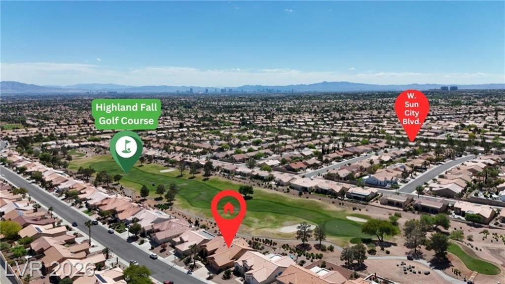 Live the dream in Sun City Summerlin!Welcome to 10033 Villa Ridge—an exceptional golf course home with stunning mountain views in one of Las Vegas’s premier 55+ communities. This bright, single-story residence offers an open layout, spacious living areas, and seamless indoor-outdoor flow—perfect for relaxing or entertaining.Enjoy breathtaking sunsets from your backyard overlooking the fairway, with low-maintenance landscaping for easy living. Residents of Sun City Summerlin enjoy resort-style amenities including golf, pools, fitness centers, and an active social calendar.Golf course + mountain views + 55+ lifestyle—this is the one.