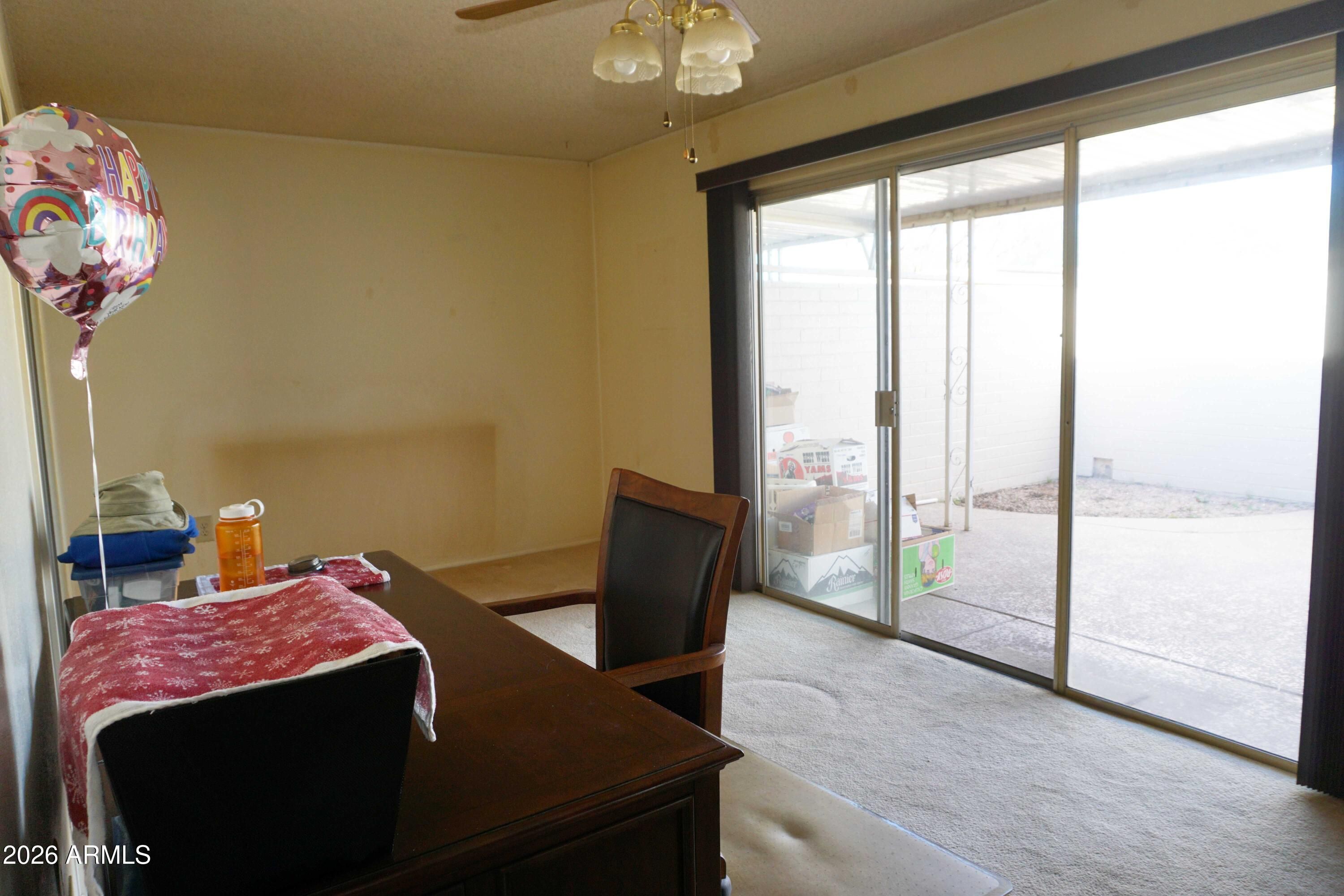 Opportunity awaits for the right buyer ready to build sweat equity! This 2-bedroom, 1-bath home is full of potential and ready for a fresh vision. Step inside to an oversized living room offering plenty of space to gather and relax. The kitchen opens to a dedicated dining area, while a spacious family room/Arizona room provides additional flexible living space and leads to a private courtyard, perfect for outdoor enjoyment. Two well-sized bedrooms share a conveniently located bath. A one-car garage with built-in cabinets adds extra storage. Bring your ideas and make this home your own!