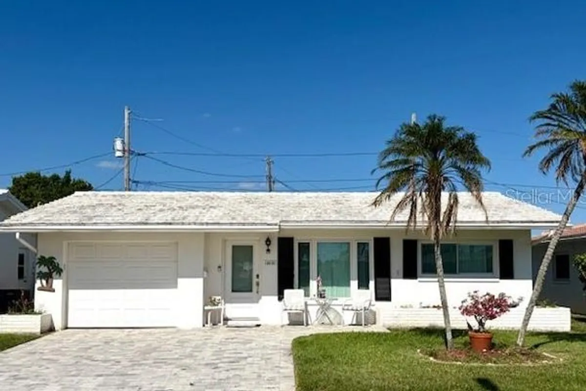 Welcome to this charming 2-bedroom, 2-bathroom home, 1-car garage with 1,261 sq ft of living space, located in the desirable 55+ community of Mainlands of Tamarac by the Gulf. As you approach, you'll be greeted by an updated paver driveway that accommodates two parking spaces, complemented by a cozy front patio area. The property has impact windows, recently installed French drains and exterior foundation has been re-sealed offering added peace of mind. Step inside to an open-concept that connects the living room, dining room, and family room. The main living areas features tile flooring, ensuring both style and durability. The modern kitchen has newer stainless-steel appliances, updated cabinets, and Corian countertops. Off the kitchen, you'll find a convenient laundry area equipped with a washer, dryer, and sink. The family room, with laminate flooring, includes built-in wall closets for extra storage. Enjoy ample natural light streaming through the windows, providing a view of the green space outside. Both bedrooms have vinyl plank flooring. The primary suite includes its own updated bathroom with a walk-in shower, while the guest bedroom, located at the front of the home, is just steps away from the guest bathroom, which offers a tub/shower combo. Ideally situated across from the Mainlands Unit 3 clubhouse and heated pool, where you can engage in various activities, including dances, shuffleboard, card games, bingo, and more. Mainlands is a golf cart community, just minutes away from Mainlands Public Golf Course, Mayor Park, beautiful beaches, airports and downtown St. Petersburg. This lovely home is perfect for downsizing or spending winters basking in the Florida sunshine. Don't miss out on the opportunity—call today to schedule your private showing!