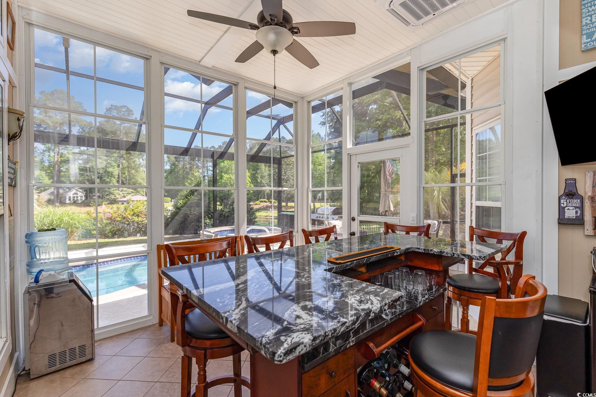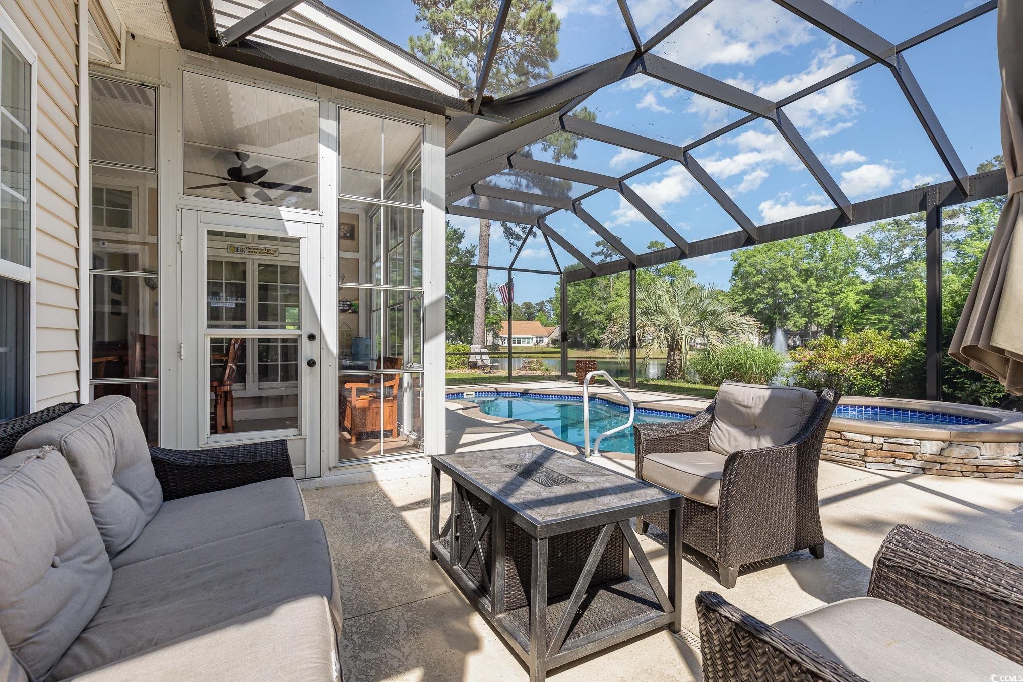 WOW, THIS HOME HAS IT ALL! Located on the widest lot, on a pond, in a cul-de-sac, with a heated pool and hot tub.This 4 bedrooms with 2.5 bathrooms home has a lot to offer. One level living at its best. Park your car in the side loading 2 car garage with recently epoxied floor or on the extra long driveway with plenty of parking for your guests. Enter through the front door and enjoy the open floor plan. You will notice 10 foot ceilings with crown molding along with Chair molding in dinning area and breakfast nook. There are lots of windows with plantation shutters allowing plenty of sunlight. The large main suite with tray ceilings and hardwood floors is located off the family room. Attached to the main bedroom is an ensuite with double sinks and an oversized custom shower with double shower heads. The family room has a gas fireplace and is located right beside the updated kitchen with solid surface countertops, stainless steel appliances, painted cabinets, breakfast bar and a breakfast nook. Just off the family room is the Carolina room boasting two walls of windows to let in the sunlight and access to the recently enclosed sun room equipped with a mini split system that can heat or cool the room to make it a four season room. In the sun room you will find a custom built bar for entertaining pool guests. Oh yes, there is an enclosed heated pool and hot tub, with plenty of space for seating and grilling, perfect for entertaining. The roof is 3 years old and the HVAC was installed at the end of June 2025. This home is a must see, contact an agent to schedule a showing.