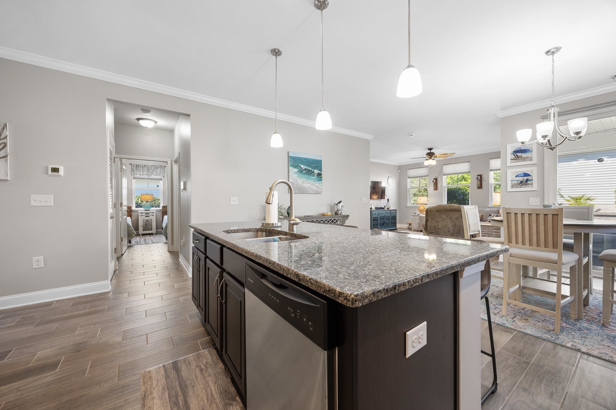 Beautiful FURNISHED 3BR/2BA home located in the desirable Waters Edge community, just minutes from shopping, dining, and the beaches of North Myrtle Beach. This move-in ready home features an open-concept kitchen and living area with stainless steel appliances, granite countertops, and a pantry. Split-bedroom floor plan offers privacy for guests. Enjoy outdoor living on the screened-in patio. Additional features include a two-car garage and low-maintenance living with lawn care provided by the HOA. Community amenities include a clubhouse, swimming pool, and exercise room. Conveniently located near the beautiful beaches of North Myrtle Beach, making this home perfect as a primary residence, second home, or investment property.