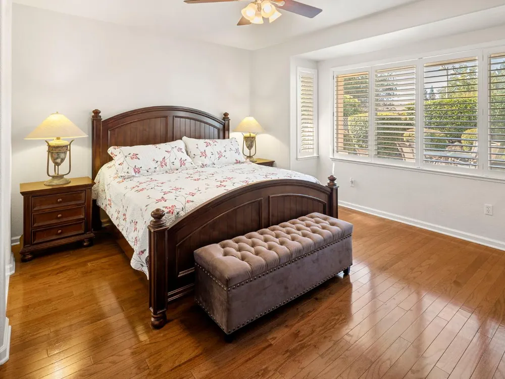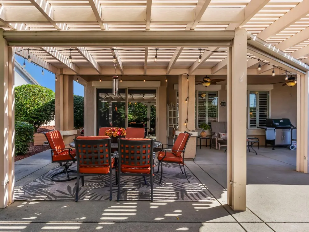 Want a cozy, gorgeous home with a fantsastic backyard? Then you have come to the right place. This Quail Cove plan has the enlarged dining area and bay window at the primary bedroom. Hardwood floors throughout most rooms. Tile floors in the bathrooms kitchen and laundry! Plantation shutters throughout. Roomy 2.5 car garage. This home features cherry cider cabinets, granite counters and pull-out shelving. New HVAC system and duct work, Kitec plumbing has been replaced. Power-purchase solar for great utility savings. New interior paint. Exterior painted a few years back. Stunning back yard with pergola and picture-perfect backyard for entertaining or just relaxing. Why wait? Better grab this before it is gone!