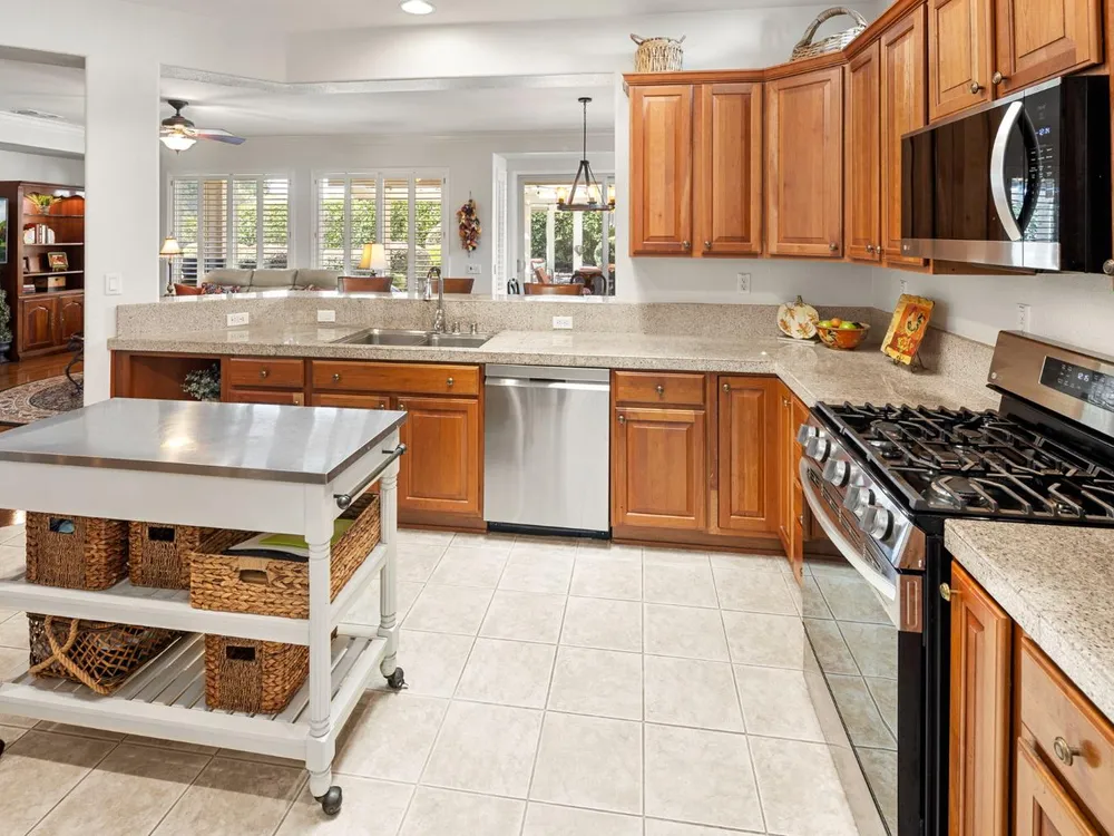 - Free-Standing Gas Range, Range Hood, Dishwasher, Disposal, Microwave, Self Cleaning Oven