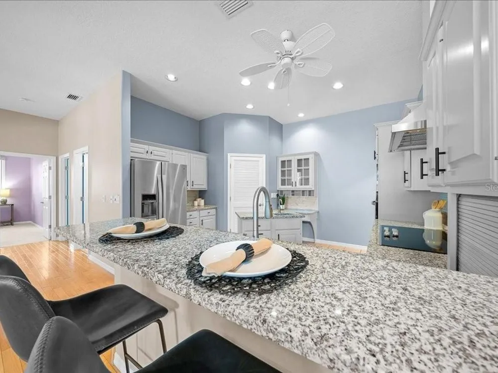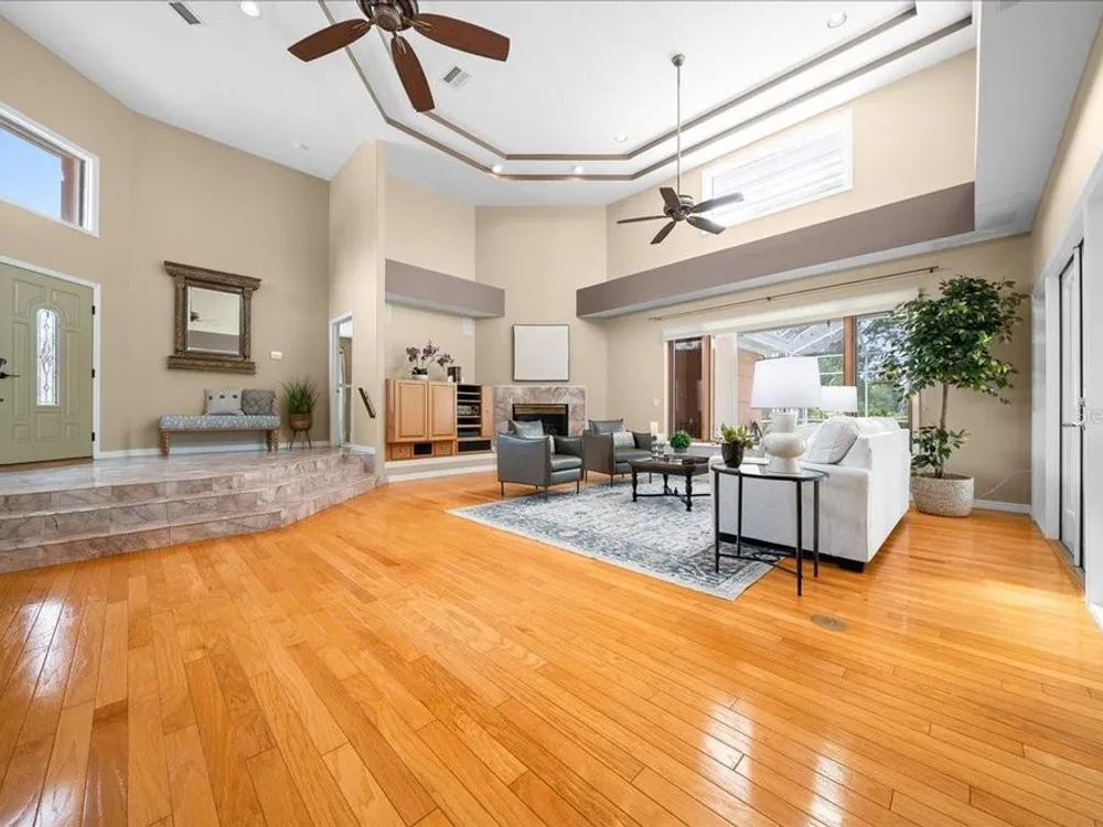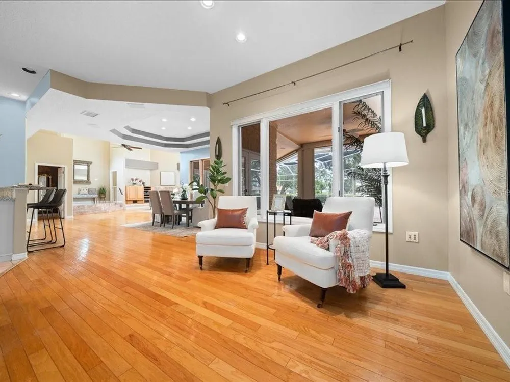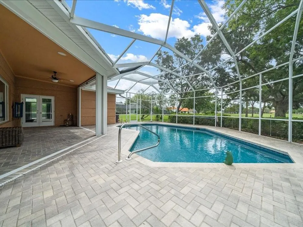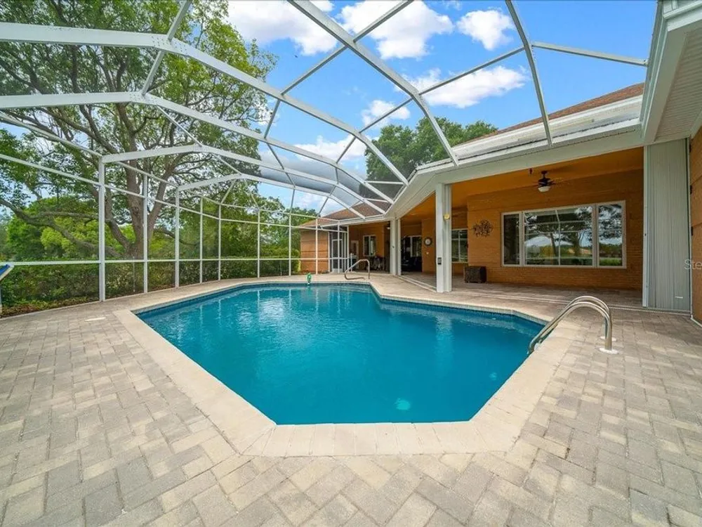 $50,000 PRICE DROP!! This one truly has it all! 4 BEDROOMS + 3 FULL BATHROOMS + an OVERSIZED 3-CAR GARAGE (with a separate GOLF CART ENTRANCE!) + a HEATED POOL + a dreamy BACKYARD right along the 2ND TEE in GLEN LAKES GOLF & COUNTRY CLUB. This CUSTOM-BUILT HOME has tons of space—over 4,800 SQUARE FEET UNDER ROOF—and some of the best GOLF COURSE VIEWS in the entire community! From the minute you walk through the front door, you’ll notice how warm and welcoming it feels. The GRAND FOYER with MARBLE FLOORS opens up to a huge GREAT ROOM with HARDWOOD FLOORS, a cozy GAS FIREPLACE, and views straight out to the pool. The floor plan flows right into the dining room and the CHEF’S KITCHEN, which is honestly a dream. We’re talking GRANITE COUNTERTOPS, real wood cabinets, a big prep island with sink, newer stainless appliances, a wall oven, cooktop with hood, plus a walk-in pantry and plenty of bar seating for friends and family. The PRIMARY SUITE is tucked away for total privacy and has everything you could want: a cedar-lined walk-in closet, its own sitting area with French doors to the pool, and a spa-like bathroom with a soaking tub, walk-in shower, and double sinks. Guests will be just as spoiled—one bedroom even has its own private bath that doubles as a pool bath, and there’s a fourth bedroom/office with built-ins. And the outdoor space? It’s amazing. There are THREE SEPARATE LANAI SEATING AREAS where you can sip your morning coffee or watch the sun set over the golf course. The HEATED POOL has a newer finish, a reinforced screened enclosure, and an in-floor cleaning system so it’s easy to maintain. This home is loaded with extras: GENERAC GENERATOR, DOUBLE-PANE PELLA WINDOWS, TANKLESS WATER HEATER, SURROUND SOUND, HURRICANE SHUTTERS, brand-new landscaping, and so much more. Living in GLEN LAKES honestly feels like you’re on vacation every day. You’ve got the golf course, clubhouse dining, pickleball, tennis, a big fitness center, community pool, and neighbors who actually know each other. At this new price, it’s an incredible opportunity—so let’s get you in to see it before it’s gone!