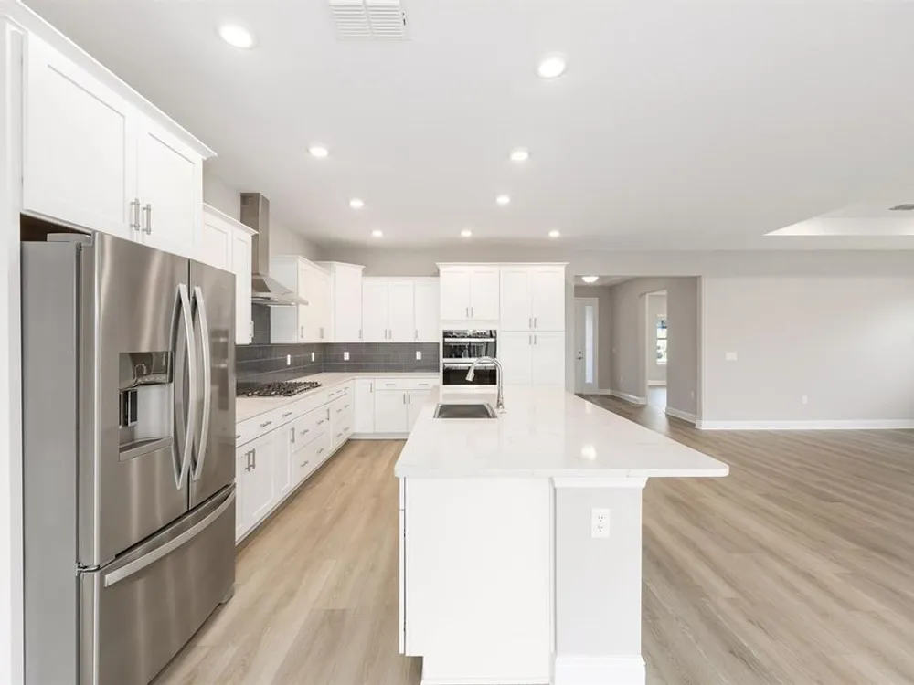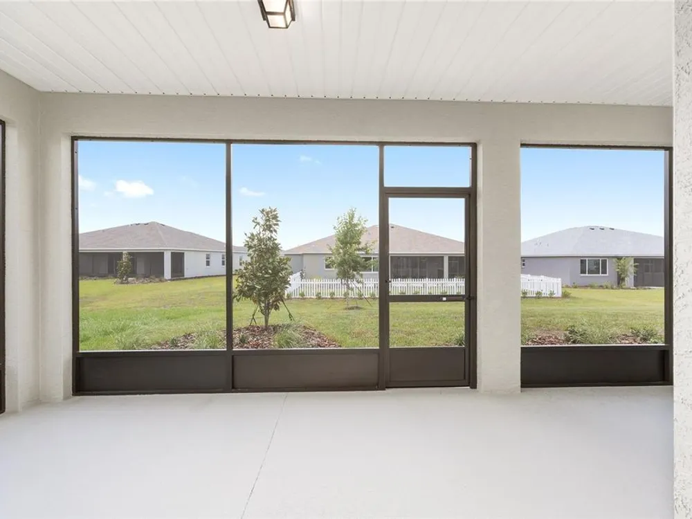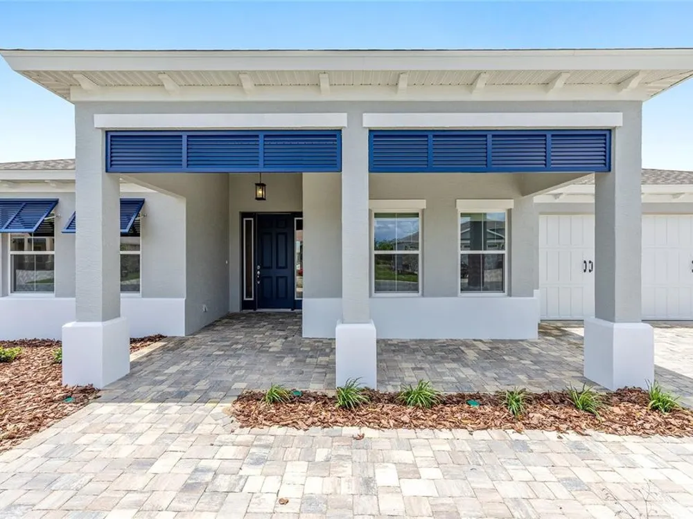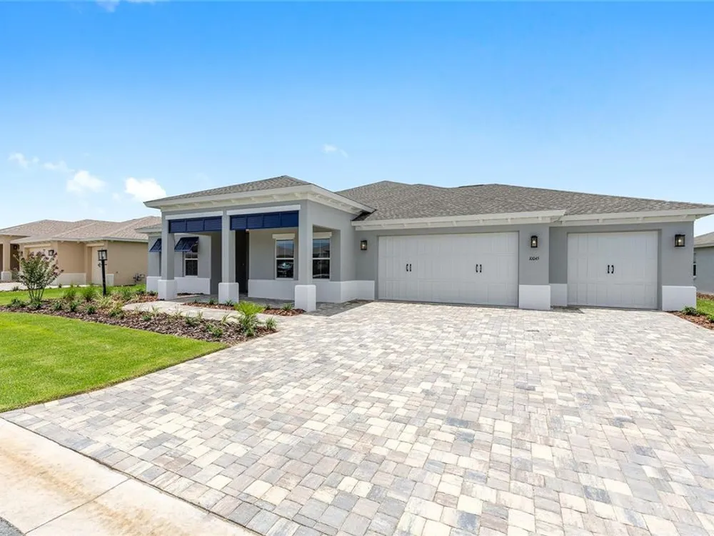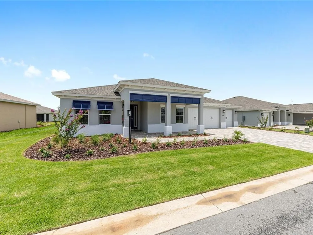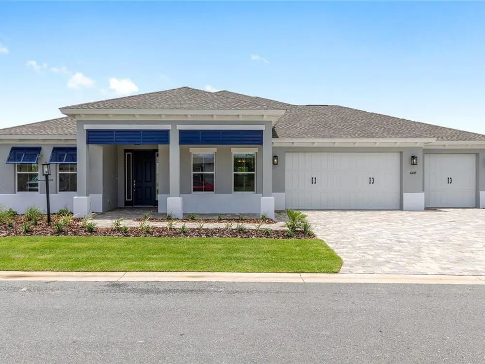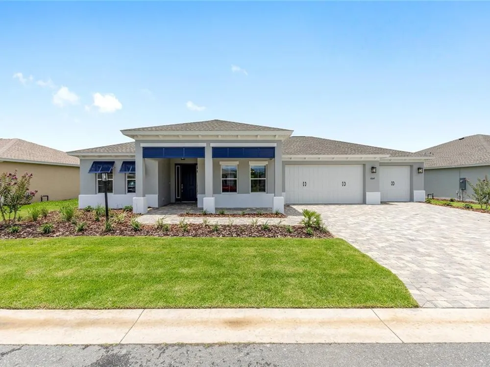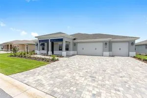 Brand-New Arlington Model in Balfour—On Top of the World Living at Its Finest! Welcome to this stunning new construction Arlington model, perfectly nestled in the prestigious estate neighborhood of Balfour within Ocala’s premier 55+ gated community, On Top of the World. From the moment you arrive, the curb appeal stuns—featuring beautiful Bahama shutters, a matching front door, lush landscaping, and an oversized paver driveway. This home offers 3 spacious bedrooms, 3 full bathrooms, and a 3-car garage with a workshop. Designed with elegance in mind, it features luxury vinyl plank flooring and tray ceilings throughout for a sophisticated touch. At the front of the home, a guest bedroom includes a roomy closet and a private en suite with a quartz-topped vanity and a glass-enclosed tiled shower. The second bedroom includes its own closet and is conveniently located adjacent to the guest bathroom, which features a tub/shower combination and a sleek quartz vanity. Perfect for entertaining, the open-concept layout features tray ceilings and two sets of sliding glass doors leading to a large, screened lanai, ideal for indoor-outdoor living. The show-stopping gourmet kitchen includes a built-in oven and microwave, cooktop, under-cabinet lighting, and a generous island with quartz counters. Staggered premium white cabinetry with crown molding, a stylish tile backsplash, and a spacious walk-in pantry complete the heart of the home. The luxurious primary suite is a serene retreat with a tray ceiling and abundant natural light through triple-panel windows. The en suite bath offers dual quartz vanities, a zero-entry tiled shower with a built-in bench, and a massive walk-in closet that connects directly to the laundry room for ultimate convenience. Enjoy all of this in a community packed with resort-style amenities and golf cart access to two shopping centers. Don’t miss your chance to own this remarkable home, schedule your private showing today!