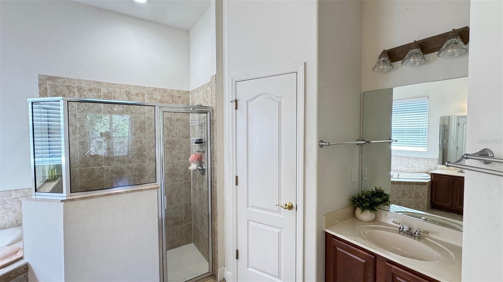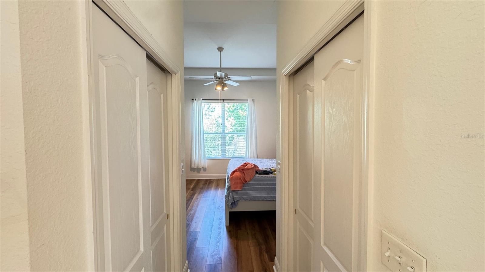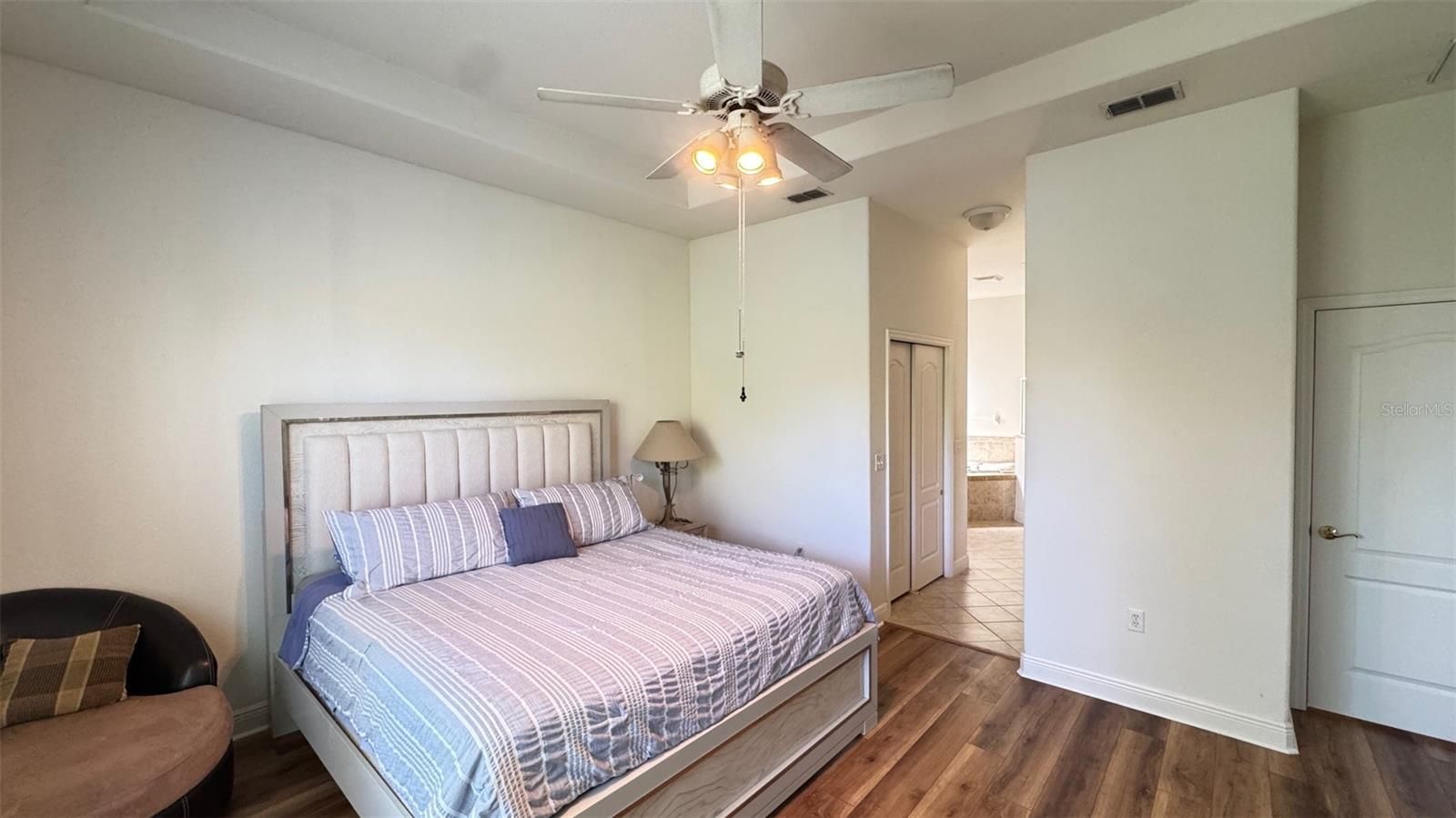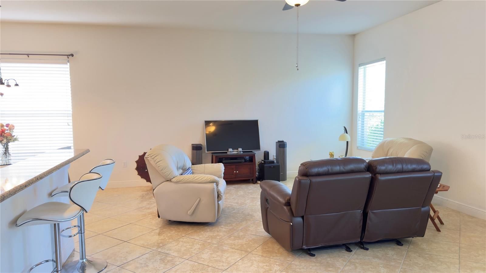 - Ceiling Fan(s), High Ceilings, Living/Dining Room, Main Level Primary, Stone Counters, Thermostat, Walk-In Closet(s)