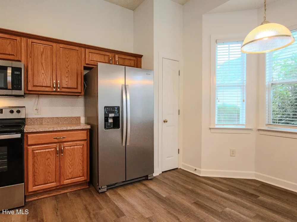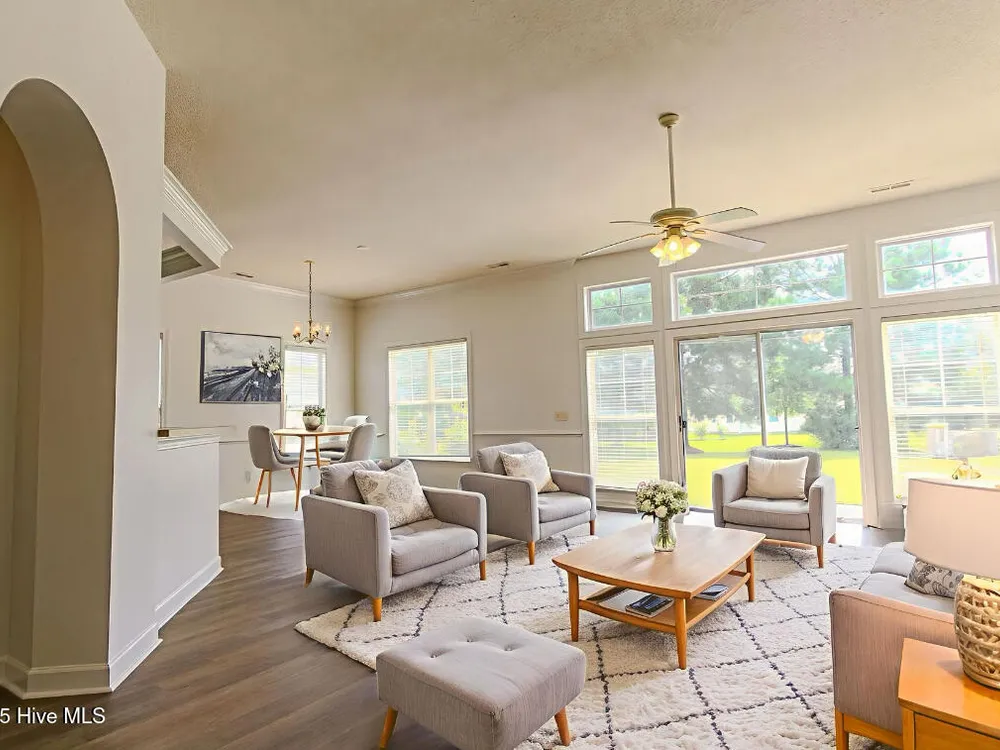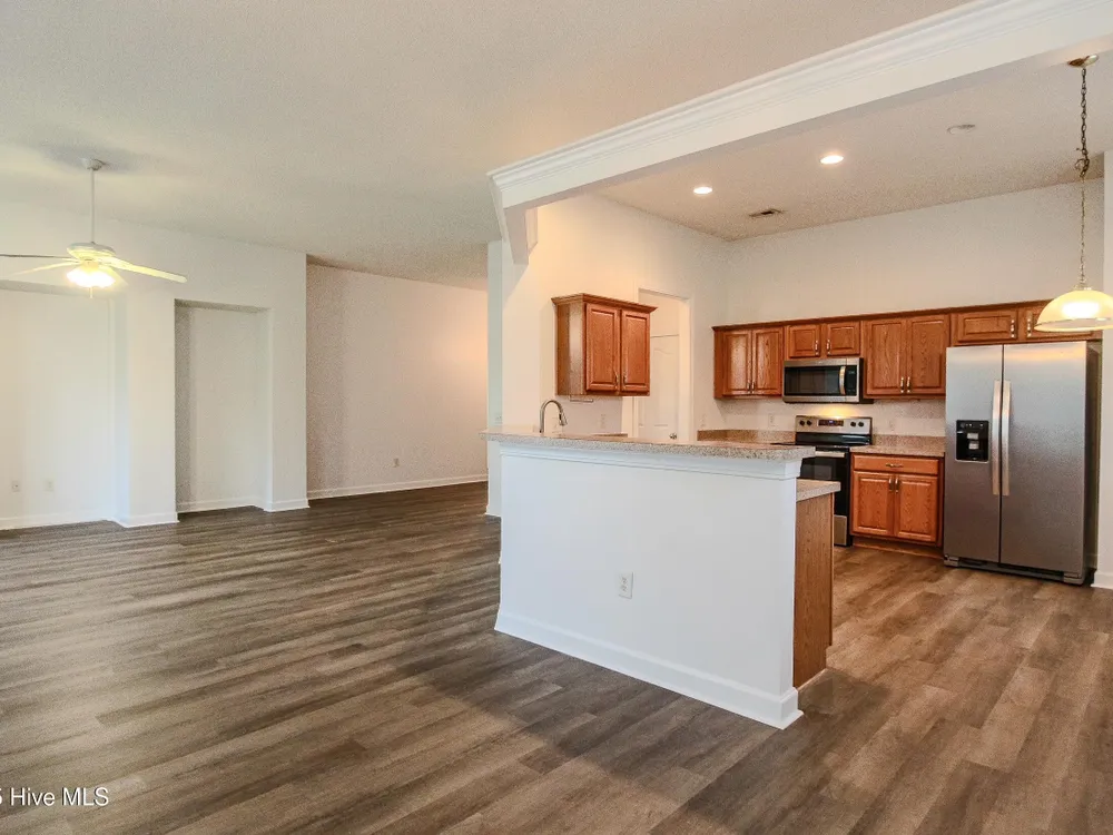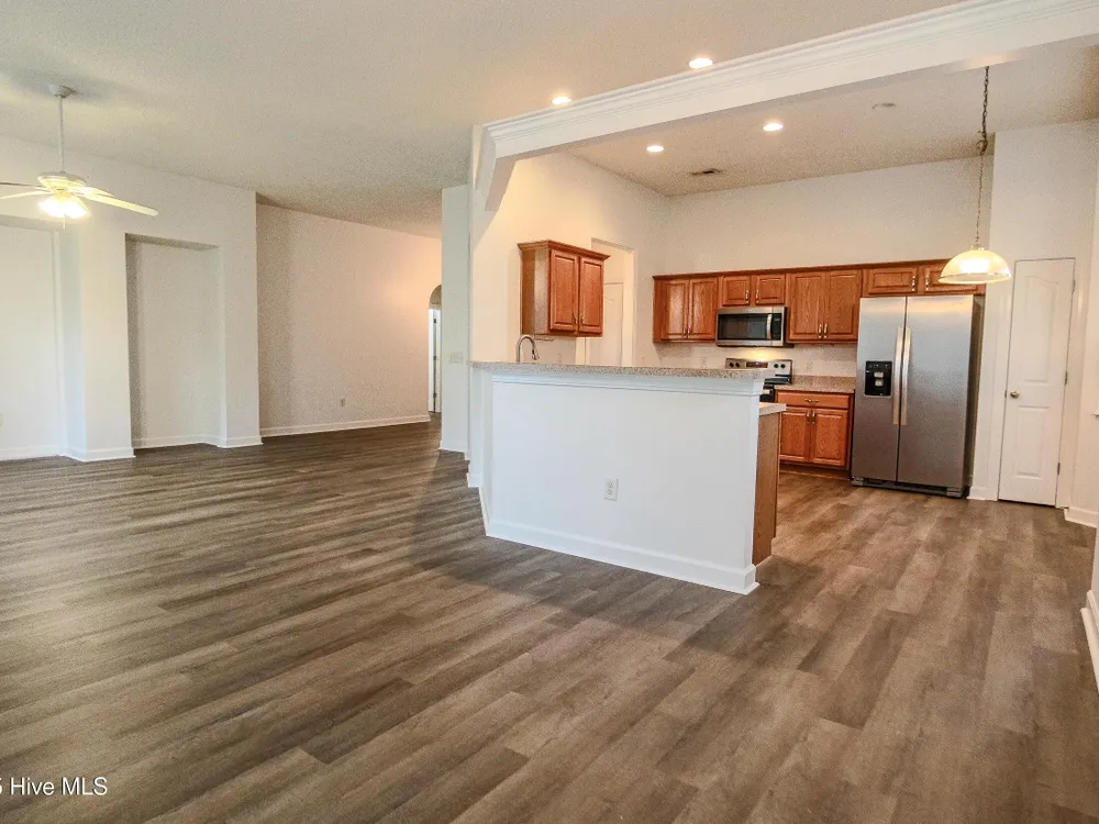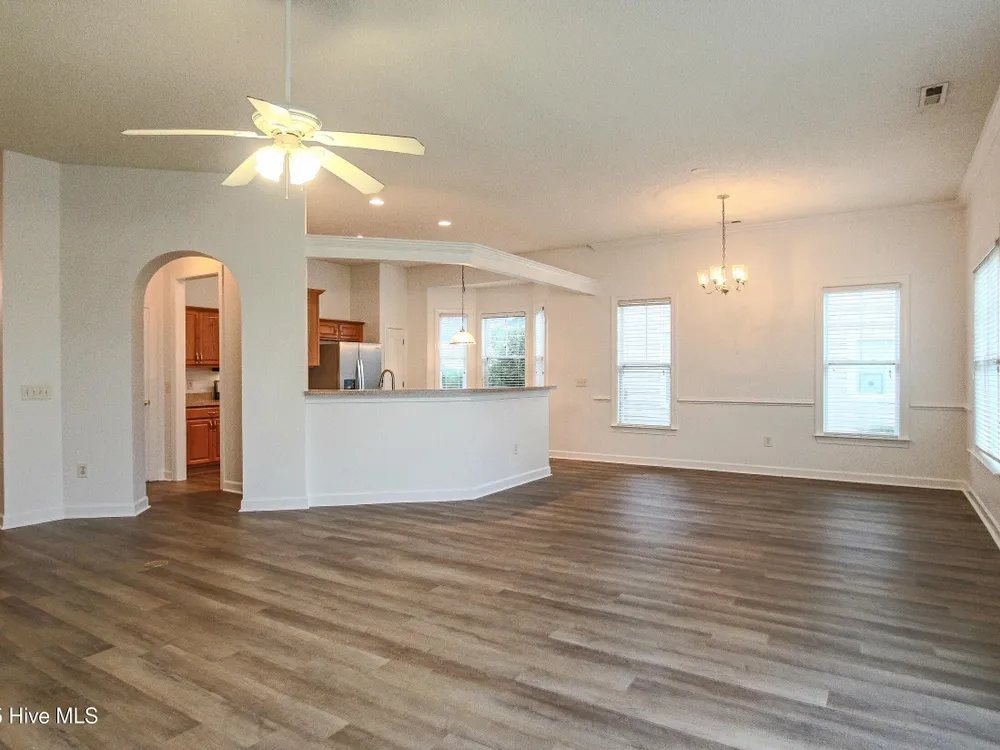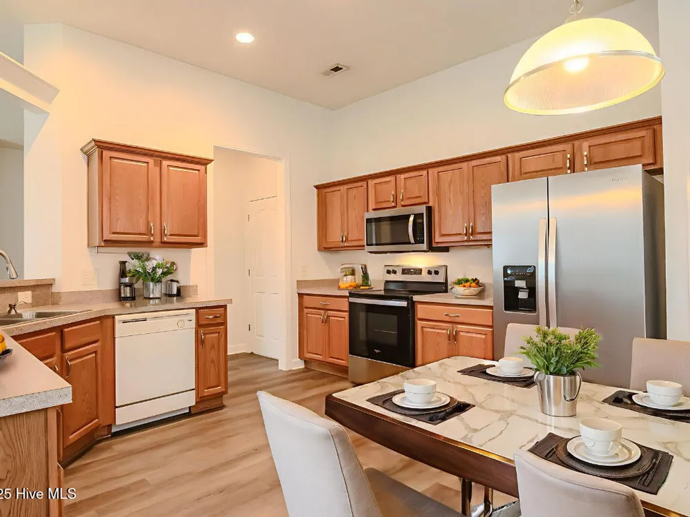 Ready for a fresh start living at the Carolina Coast? Situated in a well established neighborhood with beautiful foliage, this home boasts brand new LVP flooring throughout the home so you can say goodbye to carpet and dated vinyl floor living! There is also brand new paint throughout the home including the closets. This 3 bedroom, 2 bath home expands to a double door open foyer that brings you into a spacious great room with high ceilings and a formal dining room space or extra living area - however you want to use it. The kitchen also includes an additional area for dining, pantry and plenty of cabinet space with new stainless steel handles.The owner's suite boasts a garden tub and a convenient shower combo, along with a generous walk-in closet to accommodate all your storage needs.As a resident, you'll have access to the exclusive Meadowlands Resident's Club, complete with a sparkling pool surrounded by swaying palm trees, a well-equipped fitness room, pool tables, and a gathering area with a kitchen for social events and neighborhood get-togethers. Golf enthusiasts will love the proximity to the Meadowlands Golf Club, where you can practice your swing on the rolling fairways, putting greens, and driving range. And when you're ready for a change of scenery, the quaint village shops of Calabash and the beautiful sandy shores of Sunset Beach, NC are just minutes away. Experience the perfect blend of relaxation, recreation, and community in this beautiful home--your ideal coastal lifestyle awaits!