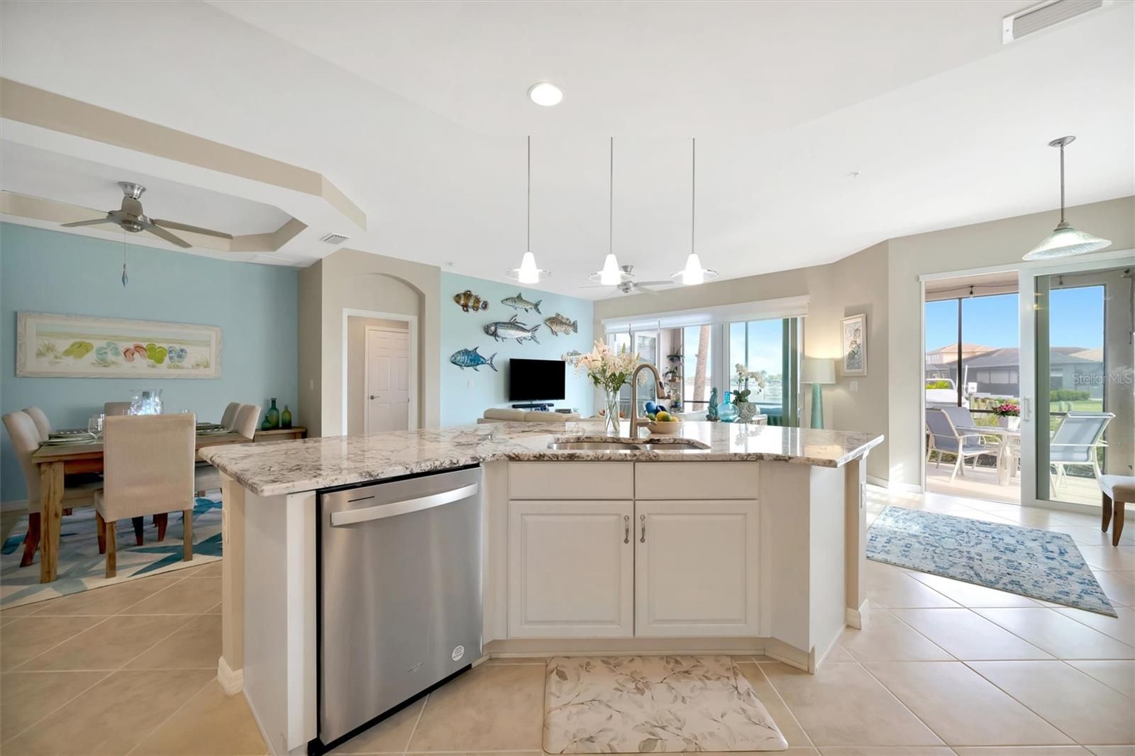 Welcome to Tidewater Preserve, a gated waterfront community just east of downtown Bradenton, ideally located near I-75 for an easy commute to St. Petersburg and Sarasota. This gorgeous, updated, and impeccably maintained bottom-floor corner residence offers 3 bedrooms, 2 full baths, a 2-car garage, and is being sold fully furnished, turnkey. With its private entry and spacious layout, the home lives more like a single-family residence. An inviting foyer welcomes you inside, opening to a formal dining area and an expansive open-concept living space—ideal for entertaining. The enclosed screened lanai is the perfect spot to enjoy peaceful sunrise views and tranquil marina scenery. This corner unit overlooks the marina and is just a short walk across the paved drive to the community pool. The kitchen is thoughtfully designed with 42” cabinetry, granite countertops, a large center island, a stylish backsplash, and premium stainless-steel appliances. Recent updates include new bedroom flooring, well-maintained tile throughout the main living areas, fresh exterior and lanai paint, new no-see-um lanai screening, a new washer and new water heater, hurricane shutters, and impact-rated sliders. Bathrooms feature 42” vanities. The owner’s retreat offers serene water views, sliding glass door access to the lanai, a walk-in closet, and an en-suite bath with a double-sink vanity, creating a private and comfortable retreat. Built in 2014 and lightly used only as a second home—never rented—the residence includes annual A/C inspections with a preventative UV light system, annual fire system inspections, keyless entry for both the front door and garage, and a wall-secured valuables/gun safe. The HOA fee covers the roof, providing added peace of mind. Boaters will appreciate the marina with rentable boat slips featuring 14,000- and 16,000-lb lifts, offering a private, tranquil, and secure harbor with direct lift access to the Manatee River. Additional waterfront amenities include a kayak launch and new seawall. Lagoon at Tidewater offers 24-hour guard-gated security, a clubhouse, fitness and entertainment facilities, tennis courts, park, dog park, a private nature walk for manatee and dolphin viewing, and docks available at the marina. Conveniently located near Costco, Publix, Home Depot, Hobby Lobby, downtown Bradenton, Anna Maria Island beaches, and approximately 15 minutes to UTC Mall. Total monthly HOA dues of $873 include: 24-hour guard, cable TV, internet, common area taxes, community pool, recreational facilities, exterior building and grounds maintenance, pest control, pool maintenance, on-site management, sewer, trash, water, and flood insurance—offering exceptional value and truly low-maintenance coastal living.