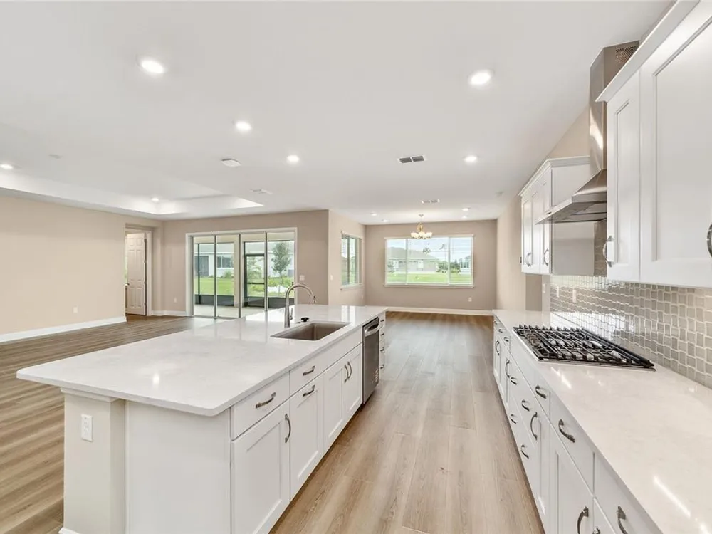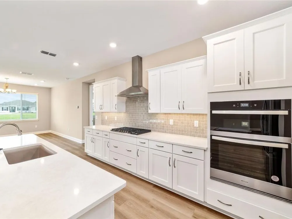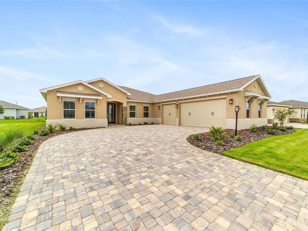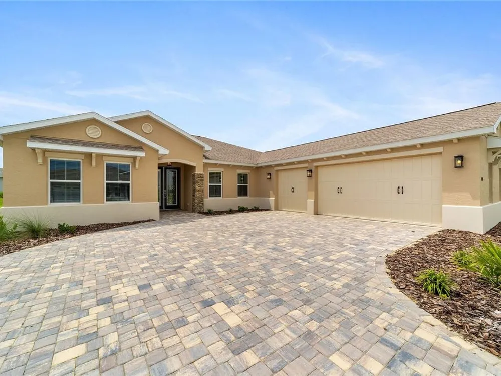Welcome to this stunning new construction Northampton home in the sought-after Balfour neighborhood of Candler Hills at On Top of the World! From the moment you arrive, you’ll be greeted by a paver driveway, a spacious 3-car garage, and elegant French entry doors. Inside, the open floor plan features 3 bedrooms, 2 full bathrooms, and a versatile flex room with French doors, perfect for a home office or den. The gourmet kitchen is beautifully appointed with premium white staggered cabinets with crown molding, quartz countertops, a designer backsplash, under-cabinet lighting, built-in oven and microwave, 5-burner cooktop, and a pantry. The kitchen flows seamlessly into the living area, where a 4-panel sliding glass door opens to the screened lanai — ideal for indoor/outdoor entertaining. The luxurious master suite showcases a tray ceiling and a spa-like en suite bathroom with tile flooring, an oversized double vanity with quartz counters, a zero-entry tiled shower with built-in bench, and a large walk-in closet. As a resident of Candler Hills at On Top of the World, you’ll enjoy access to world-class amenities, including championship golf courses, resort-style pools, state-of-the-art fitness centers, pickleball and tennis courts, walking trails, and a wide variety of clubs and activities. All of this in Ocala’s premier active adult community! Call to schedule your private showing today!