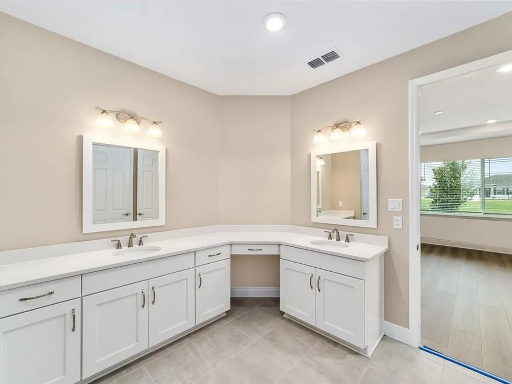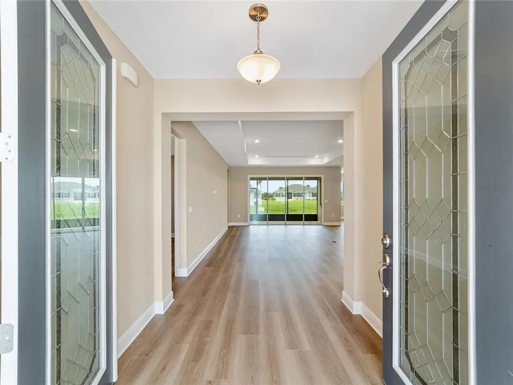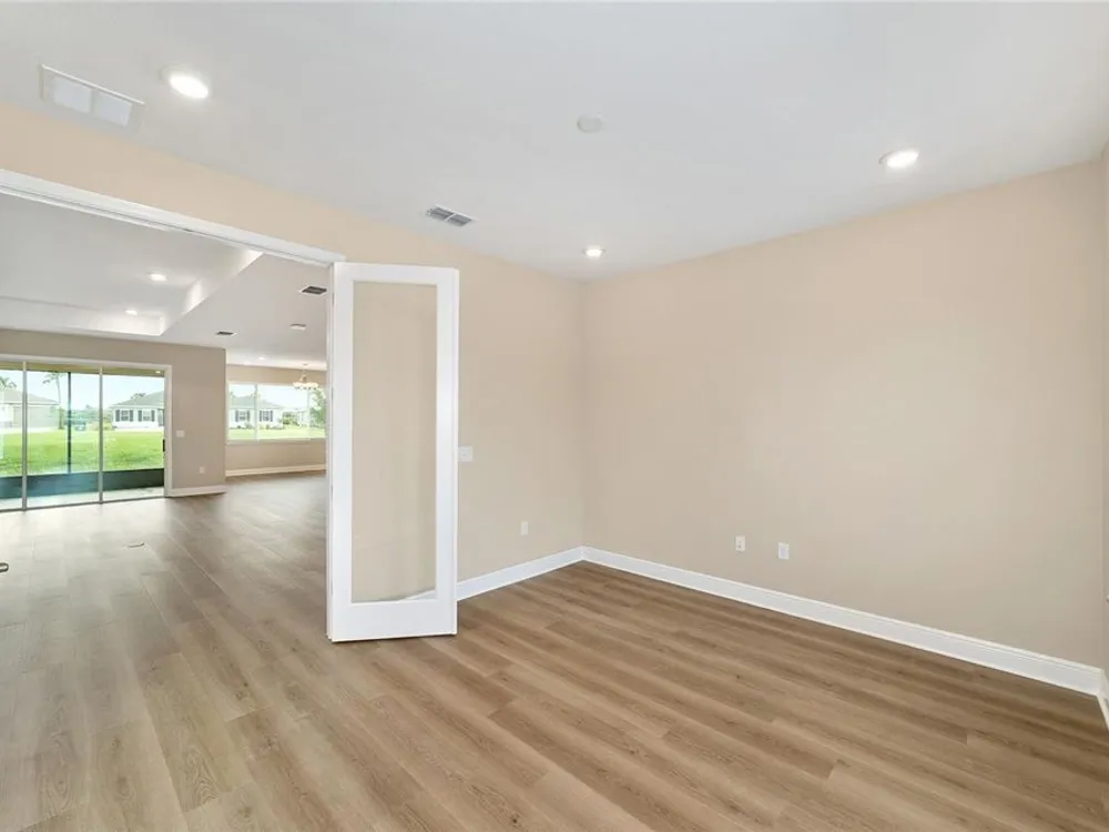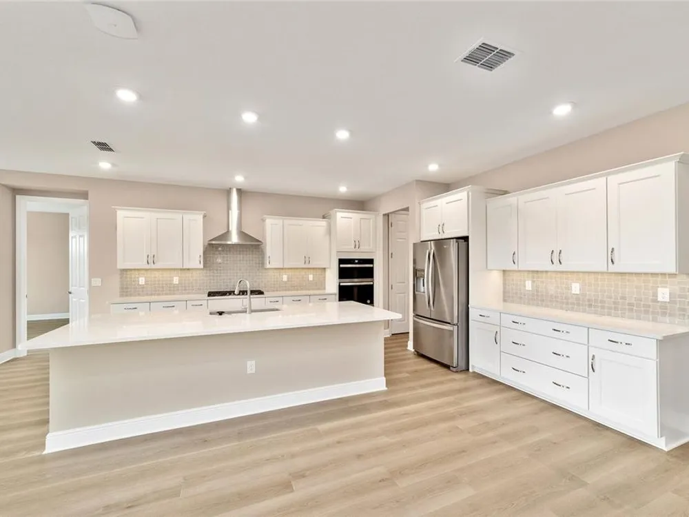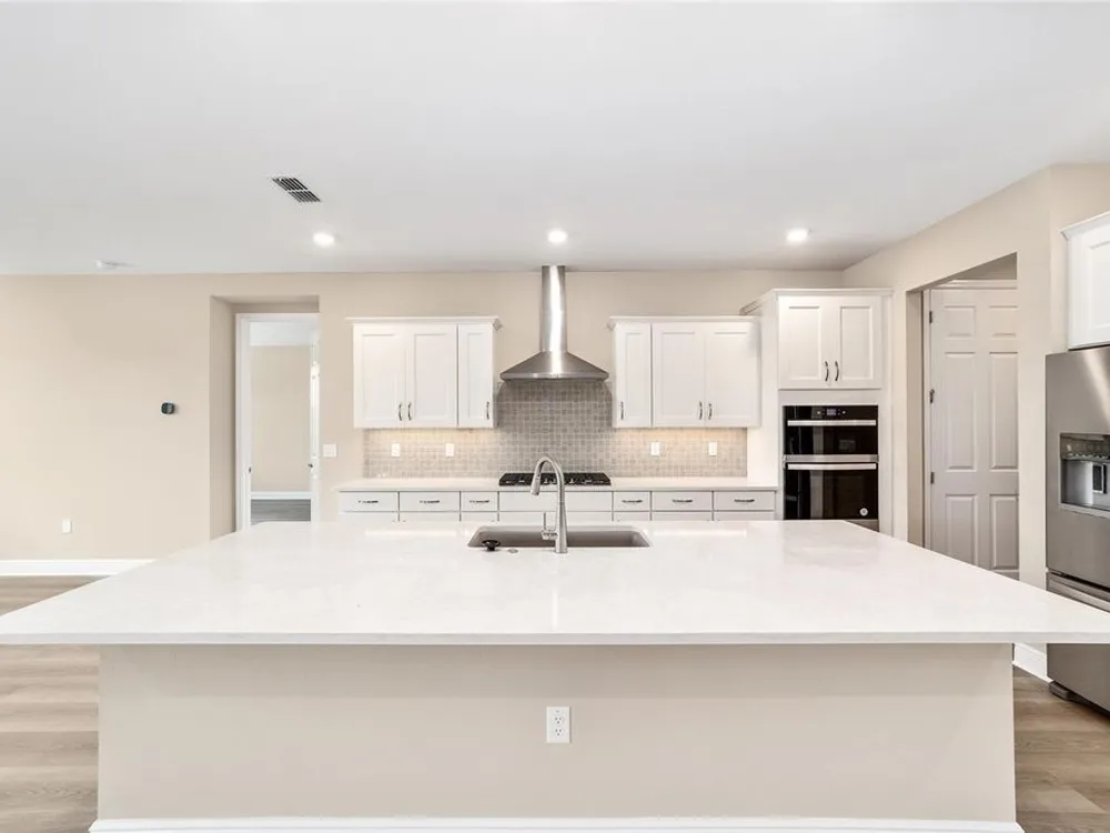 Welcome to this stunning new construction Northampton home in the sought-after Balfour neighborhood of Candler Hills at On Top of the World! From the moment you arrive, you’ll be greeted by a paver driveway, a spacious 3-car garage, and elegant French entry doors. Inside, the open floor plan features 3 bedrooms, 2 full bathrooms, and a versatile flex room with French doors, perfect for a home office or den. The gourmet kitchen is beautifully appointed with premium white staggered cabinets with crown molding, quartz countertops, a designer backsplash, under-cabinet lighting, built-in oven and microwave, 5-burner cooktop, and a pantry. The kitchen flows seamlessly into the living area, where a 4-panel sliding glass door opens to the screened lanai — ideal for indoor/outdoor entertaining. The luxurious master suite showcases a tray ceiling and a spa-like en suite bathroom with tile flooring, an oversized double vanity with quartz counters, a zero-entry tiled shower with built-in bench, and a large walk-in closet. As a resident of Candler Hills at On Top of the World, you’ll enjoy access to world-class amenities, including championship golf courses, resort-style pools, state-of-the-art fitness centers, pickleball and tennis courts, walking trails, and a wide variety of clubs and activities. All of this in Ocala’s premier active adult community! Call to schedule your private showing today!