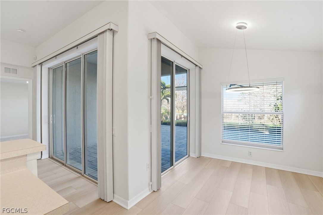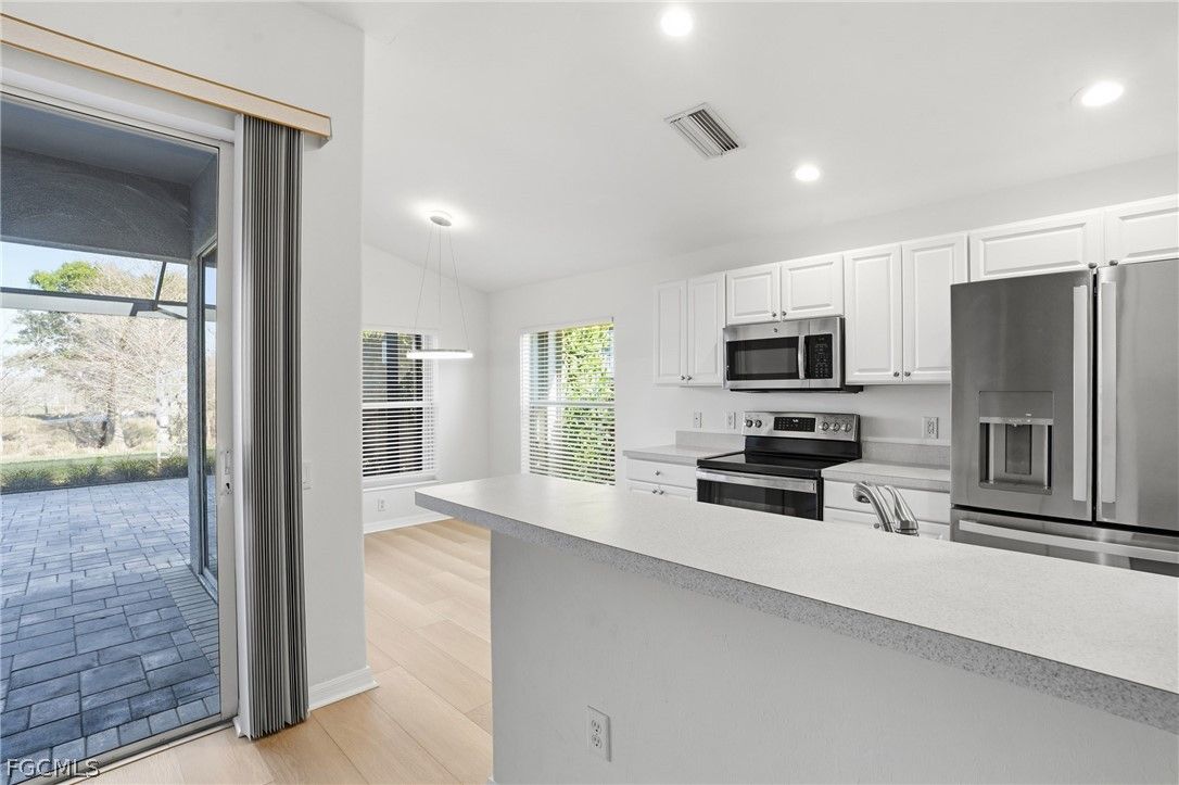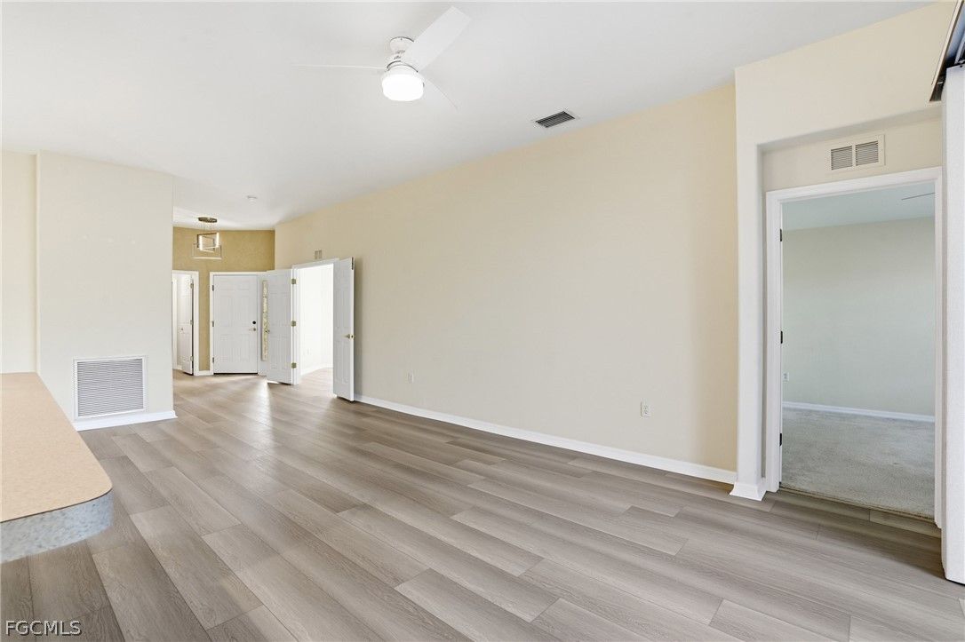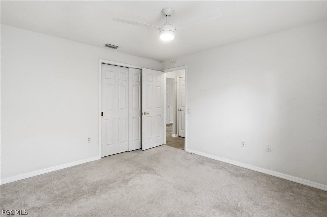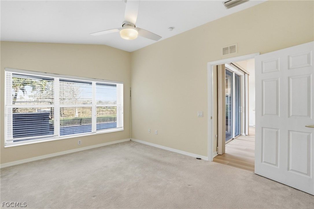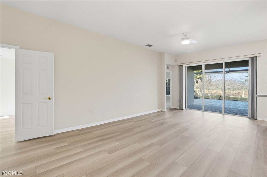 Enjoy sweeping golf course views and bundled golf living at its finest from this beautifully maintained Brentwood model in Colonial Country Club! Located at 10055 Oakhurst Way, this 3BR/2BA single-family home offers 1,509 sq. ft. of living space with a desirable split floor plan and a FULL GOLF MEMBERSHIP included. Best of all — NO FLOOD INSURANCE REQUIRED. The backyard overlooks Hole #9 of the Gordon Lewis championship course, a dogleg-left par 4 known for its challenging layout with hazards lining both sides of the fairway and a preserve area to the left. The pro tee box is prominently visible from the property, creating a scenic and dynamic view across the fairway and toward the sand traps. Enjoy golf course views from both the front and rear of the home. Inside, the home features new Noble 9x60 LVP plank flooring throughout the main living areas, a formal dining area, breakfast bar, pantry, walk-in closets, and updated lighting fixtures throughout. The kitchen is equipped with stainless steel appliances, and the home is truly move-in ready. Recent upgrades include a brand new 2024 tile roof, newer exterior paint, and electric/accordion hurricane shutters for added protection and peace of mind. Step outside to an oversized 20’ x 33’ screened paver lanai featuring picture window screens, a private jacuzzi, and an outdoor shower, all perfectly positioned to capture tranquil golf course views—ideal for entertaining or relaxing. Additional highlights include a spacious 2-car garage and meticulously maintained landscaping. Colonial Country Club is a premier gated, guard-secured community offering exceptional amenities including a Gordon Lewis championship golf course, clubhouse with dining, fitness center, tennis, pickleball, bocce, resort-style pool, spa, walking trails, and more. Conveniently located near I-75, RSW International Airport, shopping, dining, and spring training stadiums. Resort-style golf living in the heart of Fort Myers—don’t miss this opportunity!