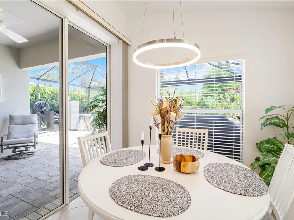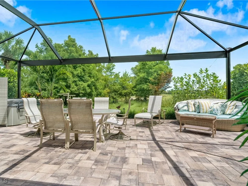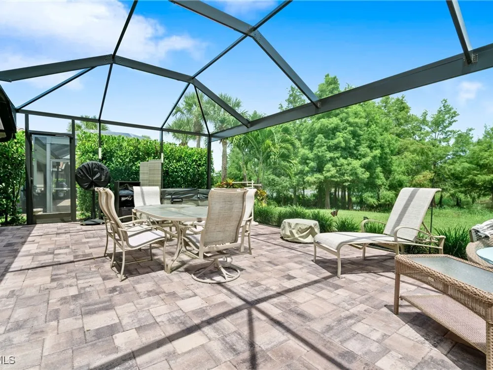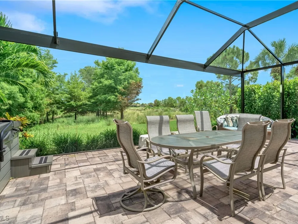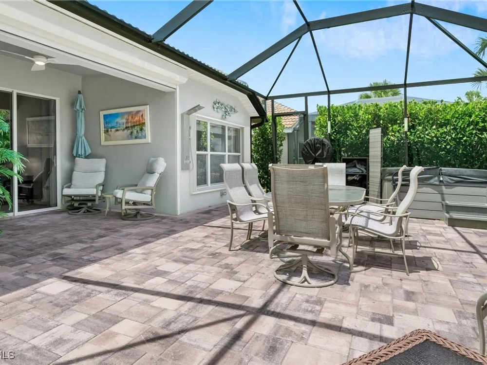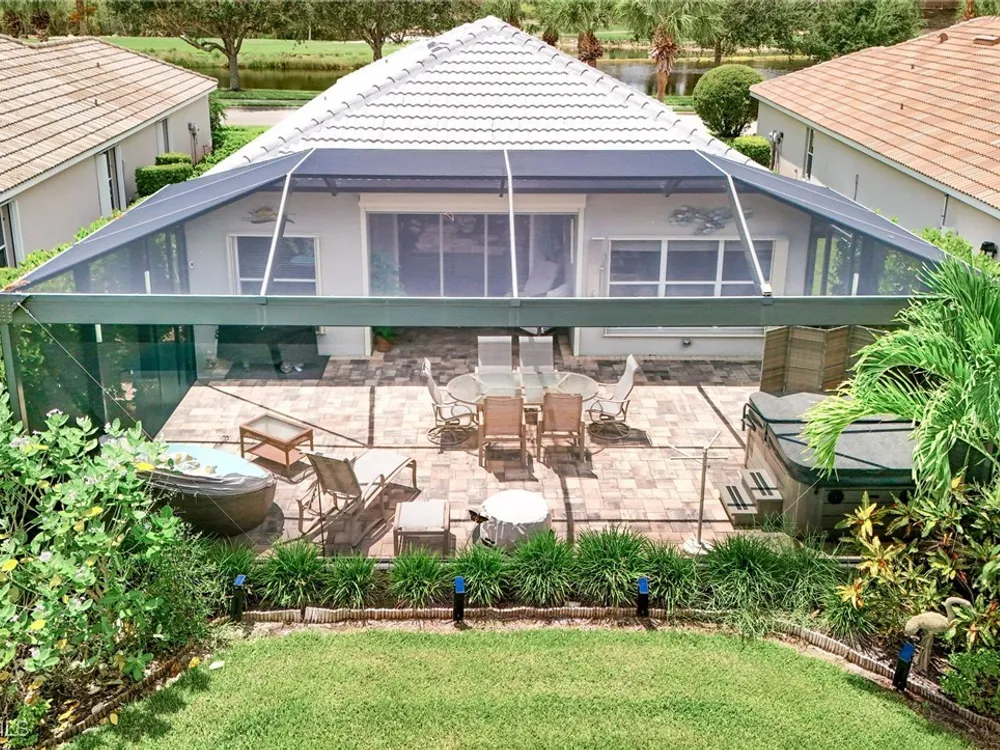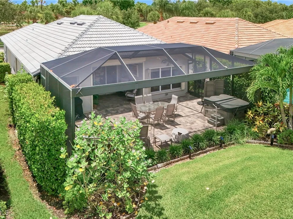 Welcome to your dream home in the prestigious Colonial Country Club community! NO FLOOD INSURANCE REQUIRED! This stunning single-family home includes a FULL GOLF MEMBERSHIP and boasts 3 bedrooms and 2 bathrooms. The home features beautiful tile flooring throughout, adding a touch of elegance to the space. Step outside to your own private oasis Beautifully maintained Brentwood model in Colonial Country Club! This 3BR/2BA home offers 1,509 sq. ft. of living space with a desirable split floor plan. Features include diagonal tile in main living areas, formal dining, breakfast bar, pantry, walk-in closets, updated lighting fixtures throughout, and electric/accordion hurricane shutters for peace of mind. The kitchen showcases stainless steel appliances, and the home is move-in ready. A new 2024 tile roof, newer exterior paint, and bundled golf membership add tremendous value. Enjoy golf course views from both the front and back of the home. Step outside to an oversized 20X33 screened Paved Lanai with picture window screens with a private jacuzzi and outdoor shower, overlooking the fairways—perfect for entertaining or relaxing. A spacious 2-car garage adds convenience. Colonial Country Club is a premier gated, guard-secured community featuring a Gordon Lewis championship golf course, clubhouse with dining, fitness, tennis, pickleball, bocce, resort-style pool, spa, walking trails, and more. Ideally located near I-75, RSW, shopping, dining, and spring training venues. Resort living at its finest!