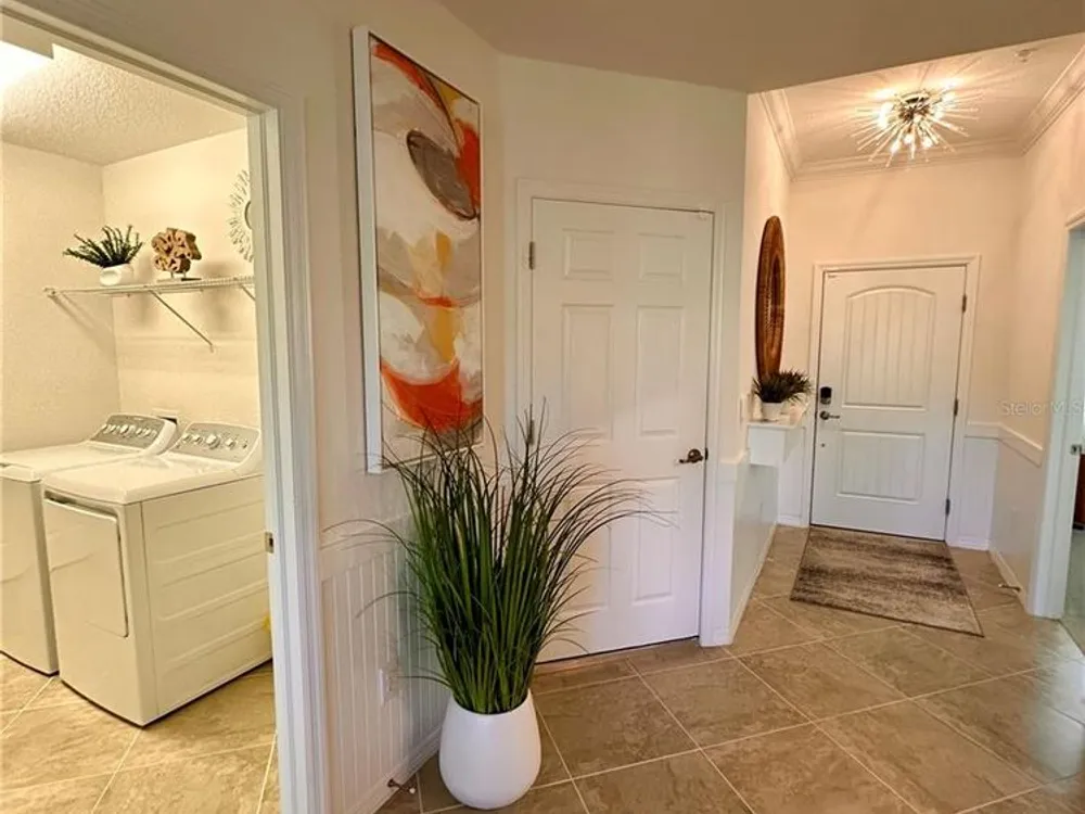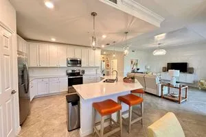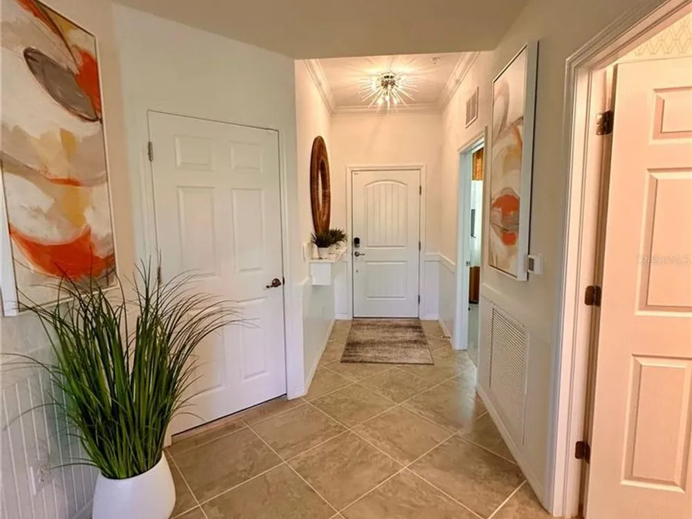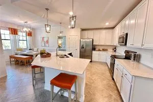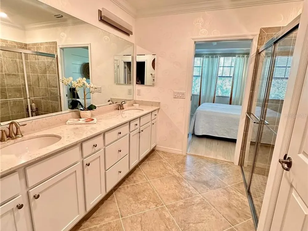 Fully furnished, this stunning condo has been beautifully decorated and remodeled with meticulous attention to detail. Discover resort-style living in this exquisitely designed home located in the prestigious Sarasota National community, in non-flood zone. This condominium offers a thoughtfully designed split floor plan featuring 2 bedrooms, 2 baths, and an expansive open-concept living space perfect for both relaxing and entertaining. The chef-inspired kitchen serves as the centerpiece of the home, complete with an oversized island with counter-height seating, stainless steel appliances, quartz countertops, elegant pendant lighting, and shaker-style cabinets. Brushed nickel hardware and decorative accents add a modern yet timeless touch. The adjacent living and dining areas feature custom trim and designer lighting, exuding a sense of sophistication. Triple sliding glass doors open to the lanai, revealing serene views of the lush preserve. The primary suite is a luxurious retreat with a spa-like ensuite bathroom featuring dual sinks, a separate water closet, and a spacious walk-in closet. Additional highlights include an oversized laundry room, a one-car garage, and impact-resistant windows and doors, ensuring peace of mind. This condo is loaded with designer upgrades, including diagonal tile flooring, crown molding, tray ceilings, decorative wainscoting, wallpaper accents, and custom lighting—all creating an ambiance of refined luxury. Located in Sarasota National, an amenity-rich community, residents enjoy access to a main clubhouse with a full-service dining room, a bar and lounge, a library, and a coffee room. Fitness enthusiasts will appreciate the state-of-the-art gym, spa treatment rooms, group fitness spaces, and locker rooms. The resort-style pool features lap lanes, a spa, beach entry, and a poolside tiki bar. Additional amenities include tennis courts, bocce, pickleball, an event lawn, expansive patios, and a dedicated dog park. The HOA fee covers water, sewer, basic cable, pest control, exterior maintenance, irrigation, and access to the world-class amenities. This prime location is just moments from Wellen Park Town Center, offering unique shops, fine dining, a Farmer’s Market, live entertainment and more. It’s also close to historic Downtown Venice and the pristine Gulf Coast beaches.