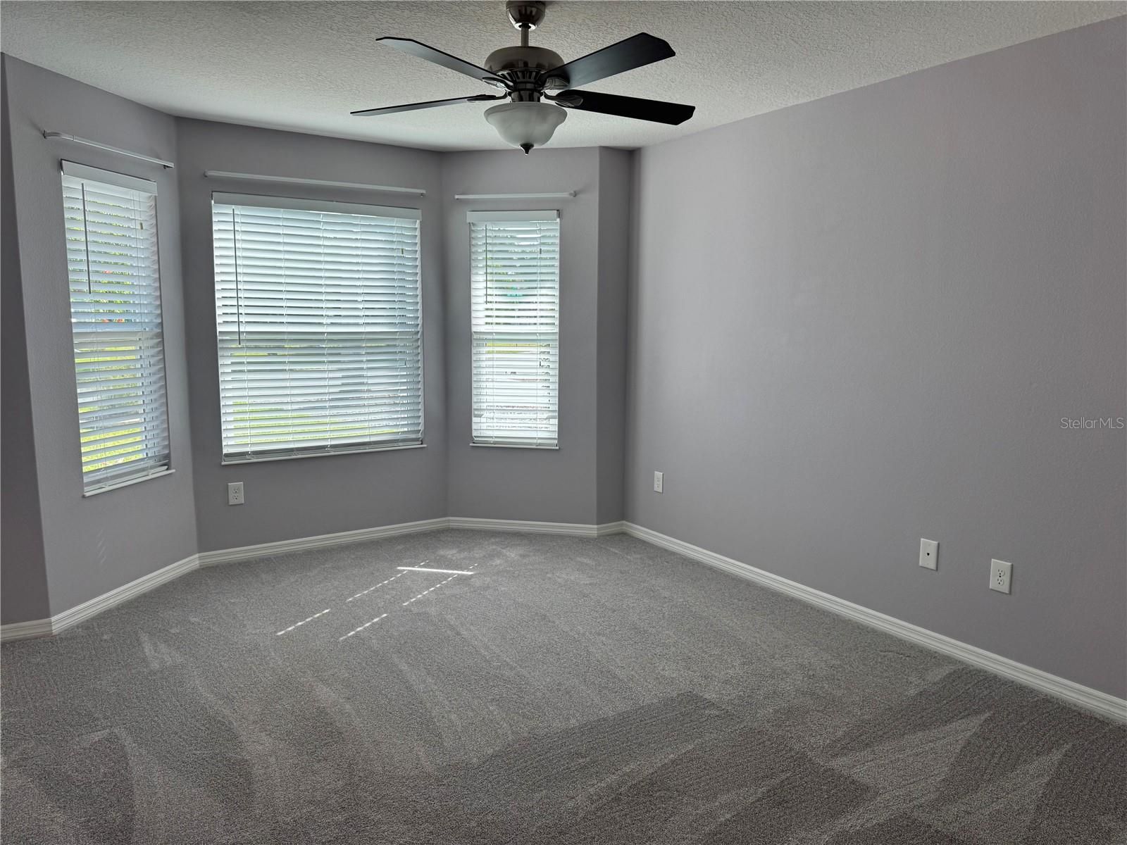 - Ceiling Fan(s), High Ceilings, Open Floorplan, Main Level Primary, Solid Surface Counters, Walk-In Closet(s), Window Treatments