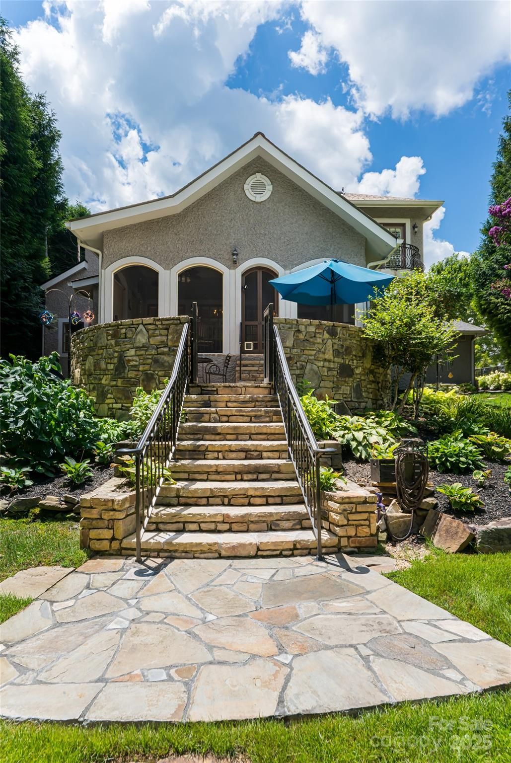 Experience timeless elegance in this exquisite Biltmore Lake residence, where architectural beauty and refined comfort converge. A stately stone turret and lush, manicured landscaping create a striking first impression, setting the stage for the exceptional design within. Every detail of this custom-built home has been meticulously curated to embody sophistication and ease, making it a rare offering in one of Asheville’s most desirable communities. Stepping inside, the sense of grandeur is immediate. Arched doorways, rich hardwood floors, and a sweeping staircase form an atmosphere of classic refinement. Sunlight pours into the generous living spaces, accentuating intricate craftsmanship and architectural details that call to mind the enduring charm of old-world design. The gourmet kitchen, complete with high-end appliances, custom cabinetry, and elegant finishes, serves as both a culinary centerpiece and a natural gathering place—equally suited for intimate dinners or large celebrations. With five spacious bedrooms and three and a half baths, the home offers abundant accommodations for family and guests. The luxurious primary suite is a private sanctuary, featuring a spa-inspired bath and a serene balcony that overlooks the grounds. Each additional bedroom is thoughtfully designed for comfort and versatility, while the open flow of the home ensures a balance between shared spaces and private retreats. Outdoor living is elevated by a generous veranda, where morning coffee or evening gatherings unfold against the backdrop of beautifully landscaped gardens. Every corner of the property has been designed with care, offering moments of beauty and tranquility that enhance daily living. The seamless integration of architectural character with modern conveniences ensures this residence not only captivates with charm but also delivers comfort for today’s lifestyle. Life at Biltmore Lake extends beyond the home itself. Residents enjoy access to a wealth of desired amenities, from miles of scenic walking trails and wooded paths, to lake activities such as canoeing, kayaking and fishing. Tennis courts, community gatherings, and outdoor spaces create opportunities for recreation and connection, fostering a lifestyle that is active and fulfilling. Just minutes away, downtown Asheville beckons with its art galleries, historic architecture, street performers and world-class dining. The balance is rare: the serenity of a mountain lake retreat paired with the cultural richness of one of the South’s most enchanting cities. Whether it is the joy of exploring the Blue Ridge Parkway, the majesty of Pisgah National Forest or the flowing waters of the French Broad River, the surrounding natural landscape offers endless opportunities for discovery and inspiration. This thoughtful integration of convenience and tranquility underscores what makes Biltmore Lake special: it is more than a neighborhood, it is a way of life. A custom design build, this home has been meticulously maintained, offering its next owners the rare opportunity to live beautifully and inspired. With timeless elegance, enduring craftsmanship and promise of an extraordinary lifestyle, it is a residence that transcends the ordinary—inviting you to claim your place in the heart of Biltmore Lake.