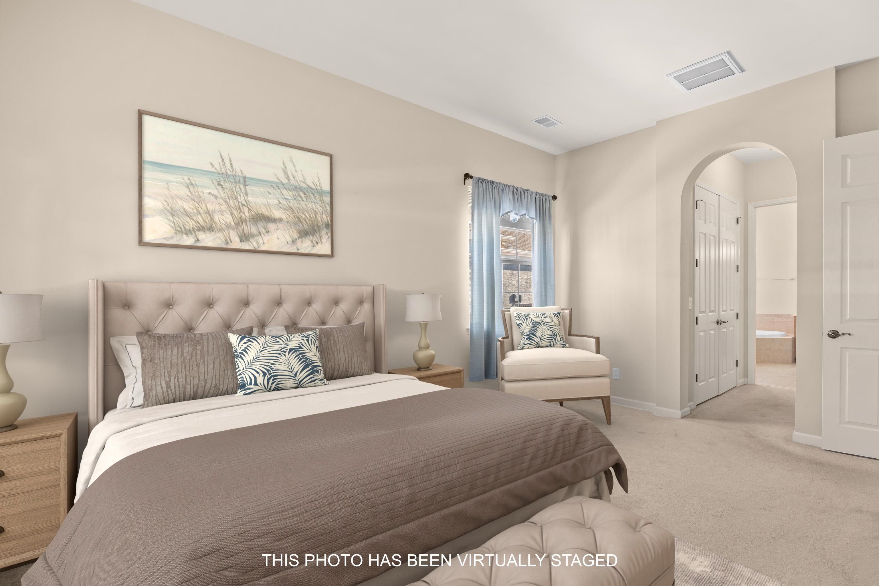 - Dual Sinks, Garden Tub/Roman Tub, Main Level Primary, Split Bedrooms, Separate Shower, Vanity, Walk-In Closet(s), Window Treatments, Breakfast Bar, Bedroom on Main Level, Breakfast Area, Entrance Foyer, Solid Surface Counters
