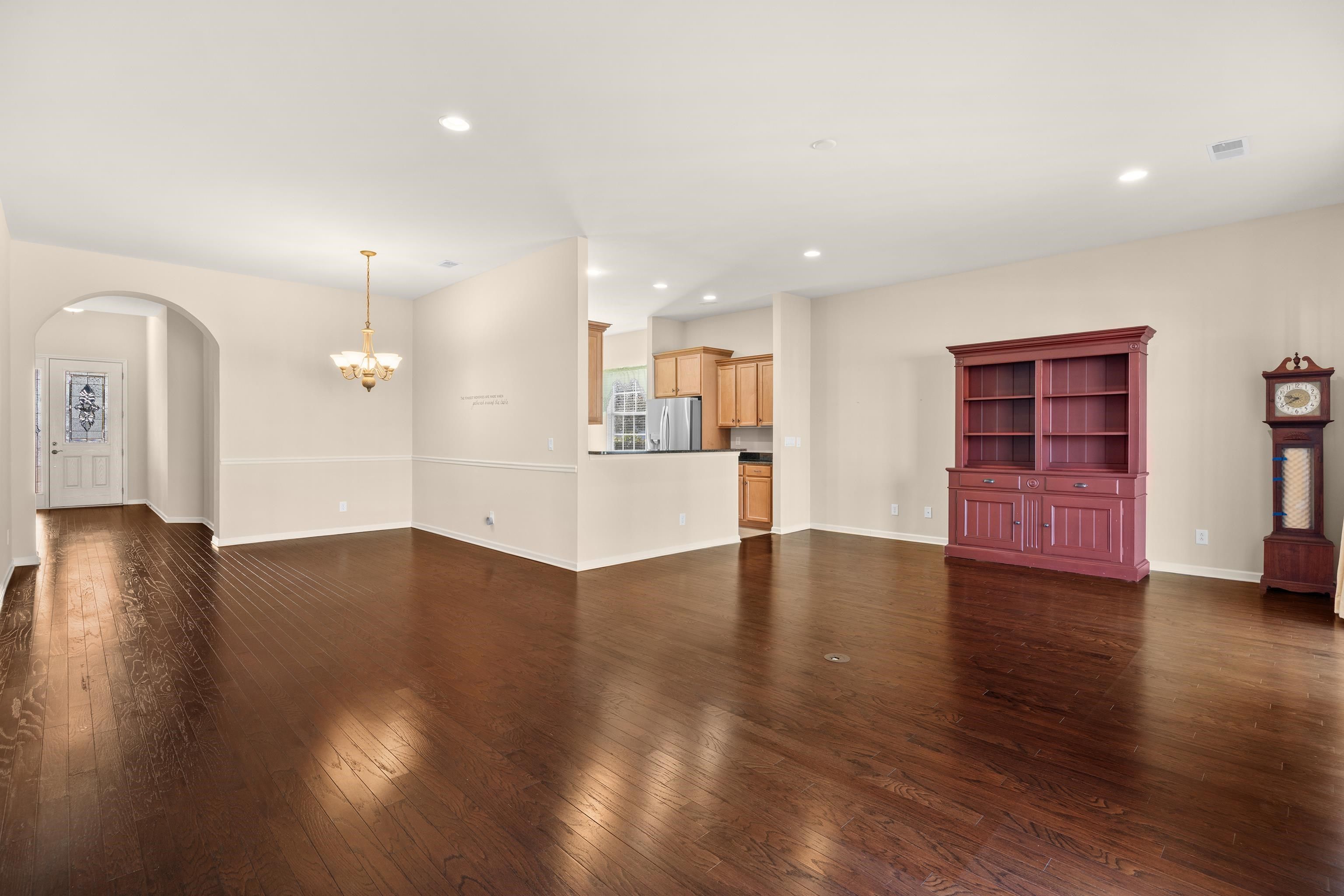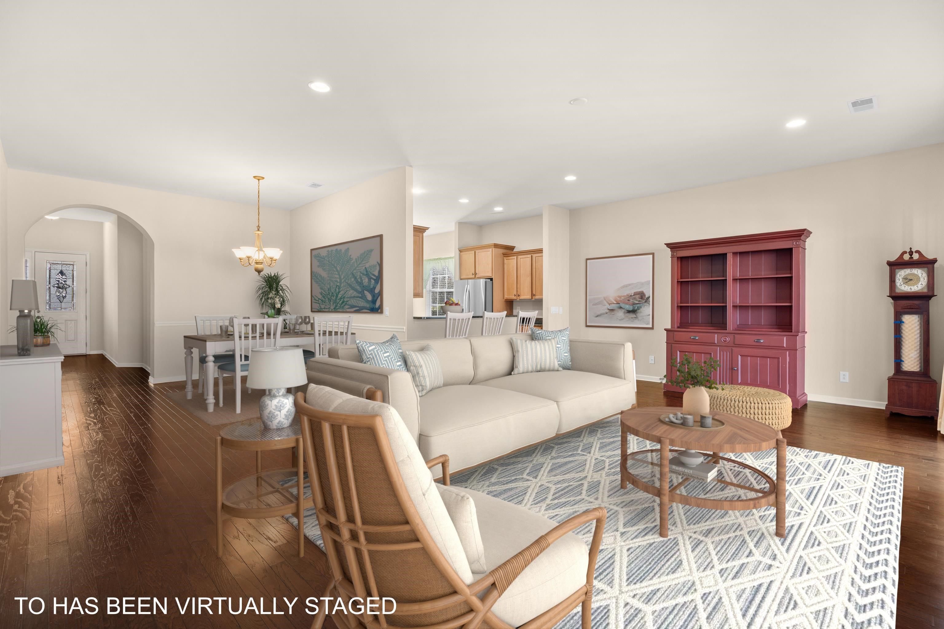 Welcome to 1006 Nittany Court, showcasing the sought-after Homestead floor plan with an elegant screened-in porch. This residence offers three bedrooms and two full bathrooms, situated on a cul-de-sac street within Seasons at Prince Creek West—an active adult 55+ gated community. Upon entry, you are greeted by beautiful hardwood floors that extend through the main living area. An arched doorway guides you into the central areas of the home; the dining room, living room, and kitchen. Two sliding doors provide access to the screened-in porch, offering serene views of the backyard. The kitchen is appointed with granite countertops, a double-door pantry, LG Stainless-Steel refrigerator, Kitchen-Aid Stainless-Steel dishwasher, and black GE electric stove and microwave, all complement the kitchens cabinetry and tile flooring. The primary bedroom features two spacious walk-in closets and an en-suite bathroom equipped with a tiled shower with a framed glass enclosure, a soaking tub, a linen closet, separate vanities, each with a sink. Two additional bedrooms, with closets, are located at the front of the home alongside a guest bathroom. All of the bedrooms are carpeted and remain in good condition. This home has been very well maintained. The monthly HOA fee includes internet, weekly trash pick-up, lawn care, irrigation, fitness center, indoor and outdoor pools, Jacuzzi, BBQ area, shuffleboard and bocce ball courts, a gated community, and a Grand Clubhouse with an on-site Lifestyle Director. Residents may enjoy relaxation or social gatherings at community events hosted at the clubhouse or offsite. Conveniently, minutes away, The Park is accessible via golf cart or car and offers two more outdoor pools, pickleball and bocce ball courts, basketball courts, tennis courts, and walking trails. Living in Seasons you have access to four pools, and many amenities. While traditional fencing is prohibited, WIFI dog fences are permitted as they do not require underground wiring. The community is pet and golf cart friendly, featuring sidewalks throughout. A 1-year home warranty will be provided at closing. Ask for details. All square footage should be independently verified by buyers and their agents. SOME PHOTOS HAVE BEEN VIRTUALLY STAGED.