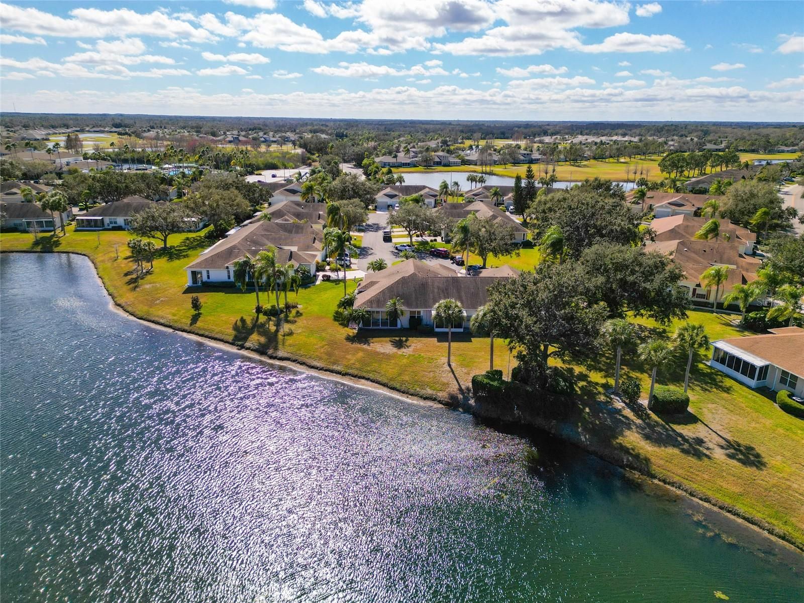 Situated at the end of a quite cul-de-sac, with beautiful water views and conveniently located near the South Clubhouse this condo is charming, bright and airy and move-in ready. Open Great Room with sofa, loveseat and dining room furniture that transfers upon sale. Flex room can be a cozy office/den area. Fresh interior neutral designer paint color throughout (2026). Newly re-screened Lanai (2026). 2-Car garage with newer screen. New lights in main living area (2026) and a crystal chandelier for a touch of elegance. A refreshed and inviting sanctuary. This unit is located in Kings Point, one of Florida's premier 55+ adult retirement communities. Catering to over 9,000 adults who want an active lifestyle. Your monthly fee includes gated security, water, sewer, Spectrum 's 80 channel basic cable TV and internet service, lawn maintenance, roof and all exterior maintenance, insurance on the structure, and free tram service to both clubhouses. Or drive your golf cart/car to the main 90,000 sq ft Kings Point Clubhouse or the newer 28,000 Sq ft Kings Point South Club house where you'll find 2 cafes, indoor and outdoor pools, locker rooms, a fitness center, a sauna, a pottery room, an Internet computer facility, an art room, a wood working shop, and general meeting rooms for the more than 50 clubs, hobby and activity groups. On site golf courses, pickleball and tennis courts. Near shopping, dining, and medical facilities with easy access to Tampa Bay's attractions and beaches. This is a generous, well-appointed lifestyle!