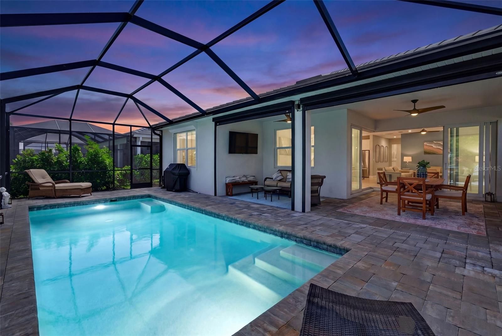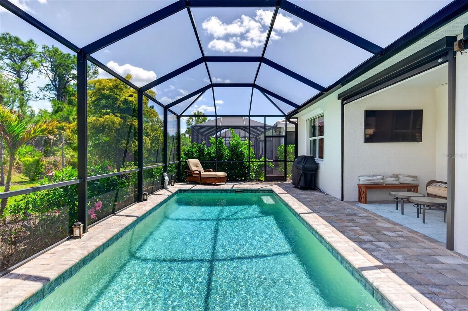 Luxury Mystique Model | Private Tropical Oasis | Pool Home Experience refined coastal living in this beautifully appointed MYSTIQUE MODEL featuring 3 BEDROOMS, 3 BATHS, FLEX ROOM, AND 2-CAR GARAGE. This home showcases a seamless blend of style and functionality with CERAMIC TILE FLOORING THROUGHOUT MAIN LIVING AREAS and CARPET IN BEDROOMS, complemented by UPGRADED CABINETRY, GRANITE COUNTERTOPS, and UPGRADED KITCHENAID APPLIANCES in the gourmet kitchen. The home’s curb appeal is enhanced by an UPGRADED ELEVATION WITH A 4-WINDOW BAY WINDOW, adding both character and natural light. The open-concept design is elevated by the stunning ZERO-CORNER SLIDING GLASS DOORS, creating a true indoor-outdoor lifestyle filled with natural light. Enjoy 8-FOOT DOORWAYS, a spacious FLEX ROOM, and thoughtfully designed living spaces throughout. Step outside to your own PRIVATE TROPICAL OASIS, where a SPARKLING POOL is surrounded by a QUIET, LUSH BACKYARD SETTING, perfect for relaxing or entertaining. Additional upgrades include WIDENED DRIVEWAY, EPOXY GARAGE FLOOR, INSULATED GARAGE WITH AC SPLIT, STORAGE RACKS IN GARAGE, PORTABLE GENERATOR WITH GAS HOOKUP FOR GENERATOR AND GRILL, HURRICANE SHADES SURROUNDING THE HOME, and a 4-FOOT GARAGE EXTENSION for added functionality. This home offers the perfect combination of luxury, comfort, and Florida lifestyle living. Private showings available—schedule your tour today and experience this exceptional home and community firsthand.