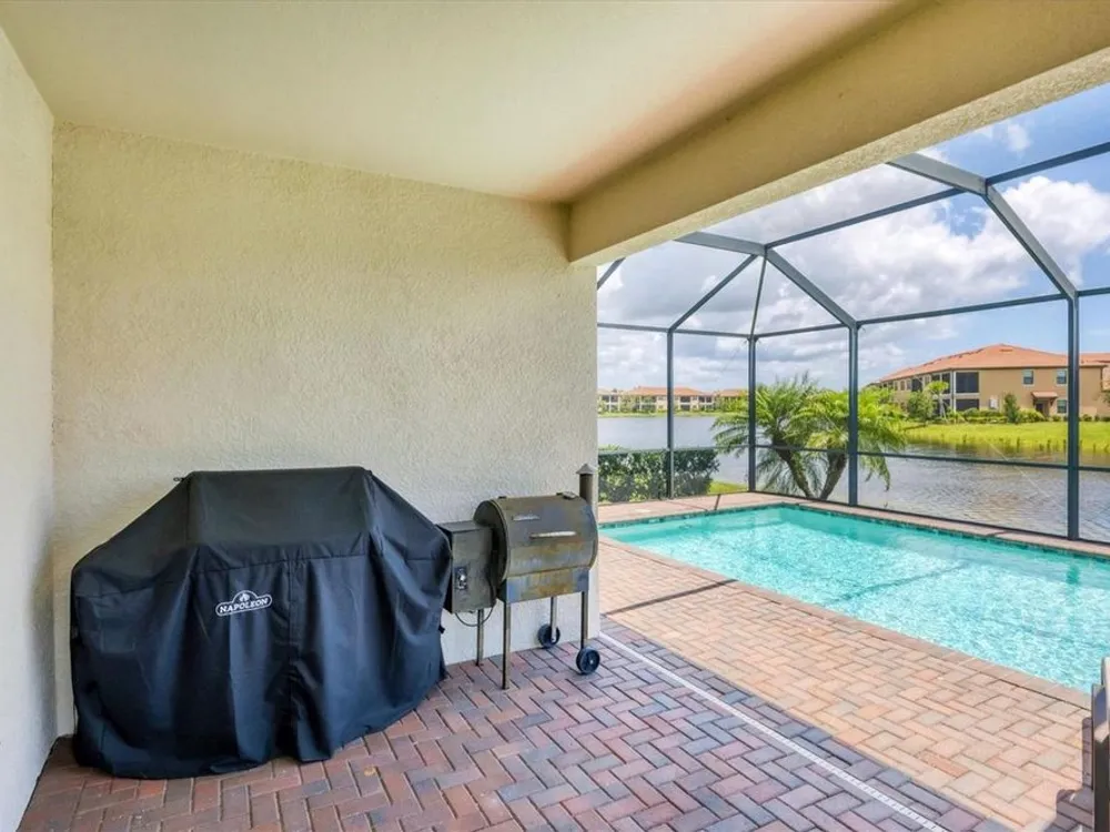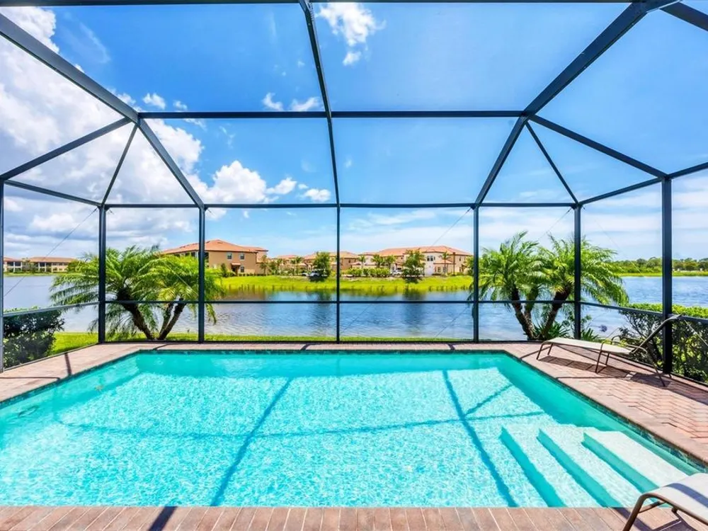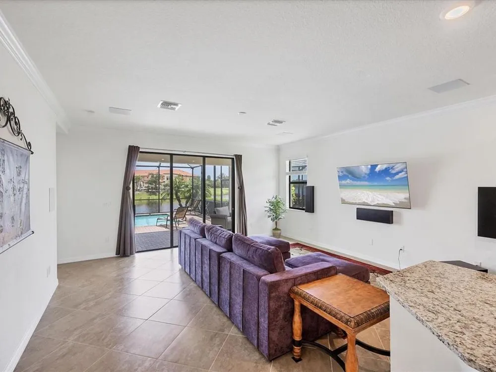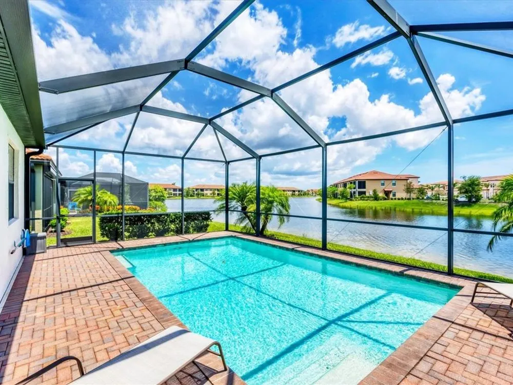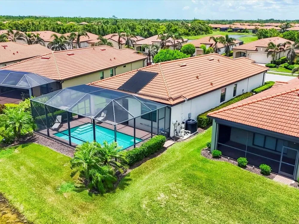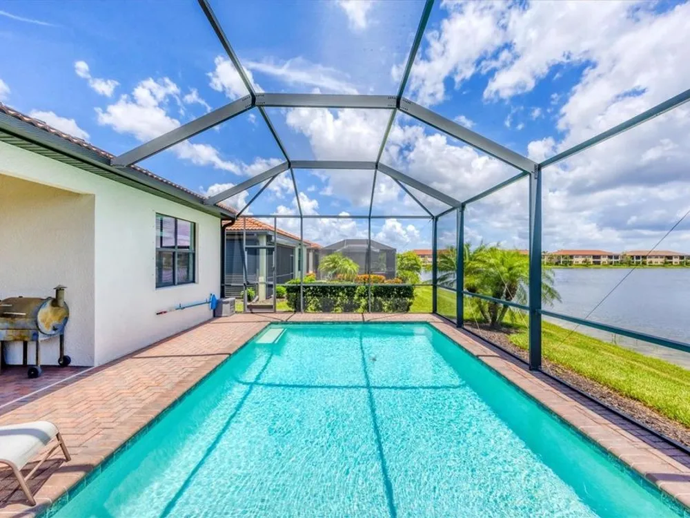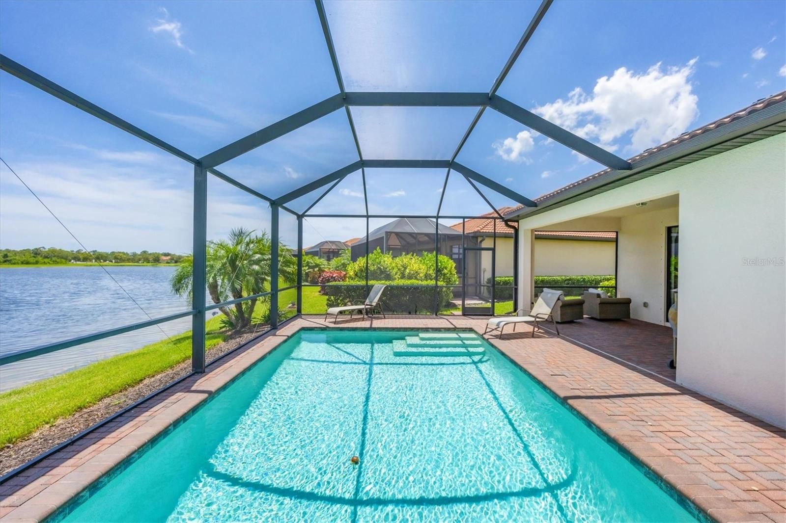 TRULY SPECTACULAR VIEWS!! Private pool and lanai overlooking lake views in all directions. SOUTHWEST EXPOSURE for sun all day long. PAVERED LANAI SURROUNDS SOLAR HEATED POOL. Looking for a little relaxation in the shade- sit on your front porch- a great place for reading a book and watching or engaging with the neighbors walking by. This Milan floor plan has 2BR/2BA and a SEPARATE FLEX ROOM that has multiple uses and can be whatever you prefer. Often used as an office space or den with a pull out sofa for extra guests. The large open great room is the heart of the home, combining living room, kitchen, and dining room areas together for cozy gathering or all out entertaining space. The whole home is enhanced with a Neutral, Warm decor, high ceilings, crown molding, and 8 foot doors. Gourmet kitchen offers GRANITE counters, STAINLESS STEEL appliances/upgraded refrigerator, extra recessed lighting, and Island perfect for eating breakfast or setting out hors d'oeuvres and wine. Tile flooring throughout the main rooms with carpets in the 2 bedrooms only. Spacious en suite master bedroom with 2 WALK IN CUSTOM BUILT closets. Master bath has dual sinks and walk in shower. Large Guest bedroom at other end of home for privacy. Separate laundry room with wash sink. HURRICANE SHUTTERS. Not in Florida to see it in person? Go to the 3D Walkthrough at : https://my.matterport.com/show/?m=heBGDXv4DTf Sarasota National is Venice’s premier community, offering over 1,300 acres of preservation, conservation, lakes, and open spaces with breathtaking views. As an Audubon International Certified Sanctuary, it provides the perfect backdrop for the community’s 18-hole championship golf course. Enjoy resort-style amenities, including a huge pool and spa, Tiki Bar, tennis courts, pickle ball, bocce courts, a 7000 sq. ft. fitness center, a 30,000 sq. ft. clubhouse with dining and incredible views, and a coffee lounge/library/card room/meeting place. Plus, there’s a day spa for relaxation. The community is just minutes from the new Wellen Park shopping area and Atlanta Braves stadium, with Venice Beach and downtown Venice only a short drive away. Whether you enjoy dining, shopping, or outdoor activities, this location has it all. Live the Florida lifestyle and make every day feel like a vacation! Schedule your tour today! BE AWARE, hitting the "contact agent"button on Zillow or 3rd party websites will NOT take you to the person who has the house on the market. SEE THIS GREAT HOME TODAY and FIND YOUR FLORIDA LIFESTYLE!