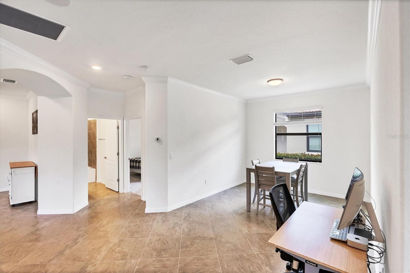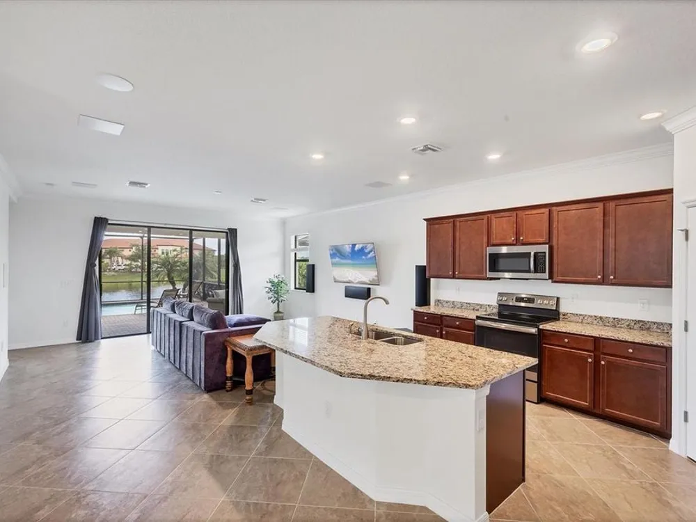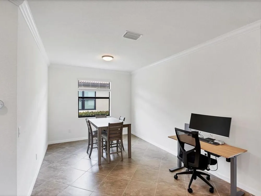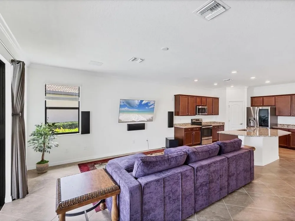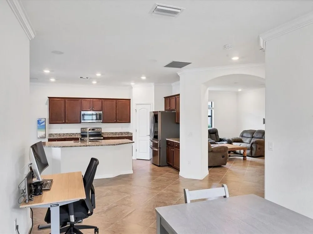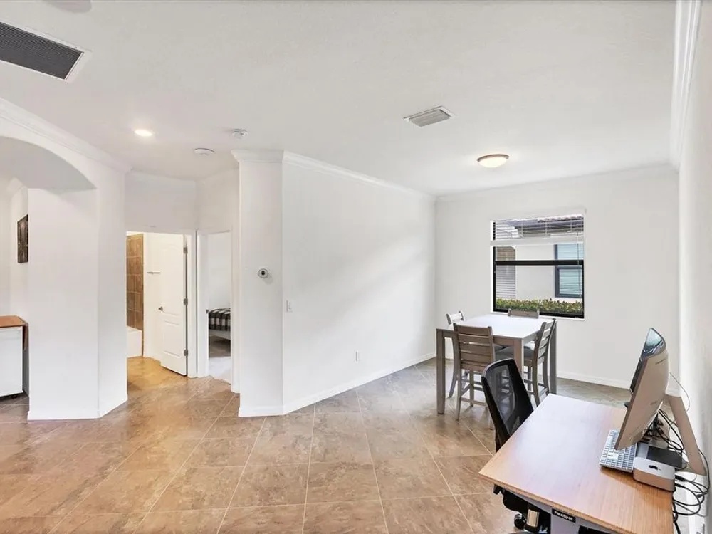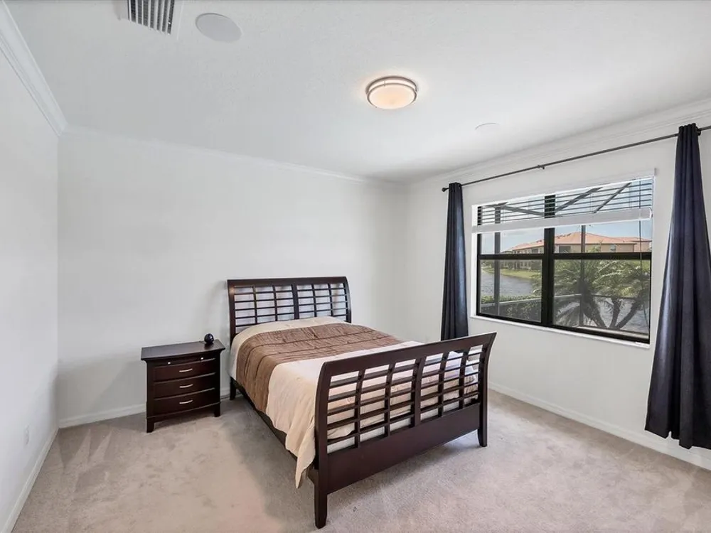 TRULY SPECTACULAR VIEWS!! Private pool and lanai overlooking lake views in all directions. SOUTHWEST EXPOSURE for sun all day long. PAVERED LANAI SURROUNDS SOLAR HEATED POOL. Looking for a little relaxation in the shade- sit on your front porch- a great place for reading a book and watching or engaging with the neighbors walking by. This Milan floor plan has 2BR/2BA and a SEPARATE FLEX ROOM that has multiple uses and can be whatever you prefer. Often used as an office space or den with a pull out sofa for extra guests. The large open great room is the heart of the home, combining living room, kitchen, and dining room areas together for cozy gathering or all out entertaining space. The whole home is enhanced with a Neutral, Warm decor, high ceilings, crown molding, and 8 foot doors. Gourmet kitchen offers GRANITE counters, STAINLESS STEEL appliances/upgraded refrigerator, extra recessed lighting, and Island perfect for eating breakfast or setting out hors d'oeuvres and wine. Tile flooring throughout the main rooms with carpets in the 2 bedrooms only. Spacious en suite master bedroom with 2 WALK IN CUSTOM BUILT closets. Master bath has dual sinks and walk in shower. Large Guest bedroom at other end of home for privacy. Separate laundry room with wash sink. HURRICANE SHUTTERS. Not in Florida to see it in person? Go to the 3D Walkthrough at : https://my.matterport.com/show/?m=heBGDXv4DTf Sarasota National is Venice’s premier community, offering over 1,300 acres of preservation, conservation, lakes, and open spaces with breathtaking views. As an Audubon International Certified Sanctuary, it provides the perfect backdrop for the community’s 18-hole championship golf course. Enjoy resort-style amenities, including a huge pool and spa, Tiki Bar, tennis courts, pickle ball, bocce courts, a 7000 sq. ft. fitness center, a 30,000 sq. ft. clubhouse with dining and incredible views, and a coffee lounge/library/card room/meeting place. Plus, there’s a day spa for relaxation. The community is just minutes from the new Wellen Park shopping area and Atlanta Braves stadium, with Venice Beach and downtown Venice only a short drive away. Whether you enjoy dining, shopping, or outdoor activities, this location has it all. Live the Florida lifestyle and make every day feel like a vacation! Schedule your tour today! BE AWARE, hitting the "contact agent"button on Zillow or 3rd party websites will NOT take you to the person who has the house on the market. SEE THIS GREAT HOME TODAY and FIND YOUR FLORIDA LIFESTYLE!