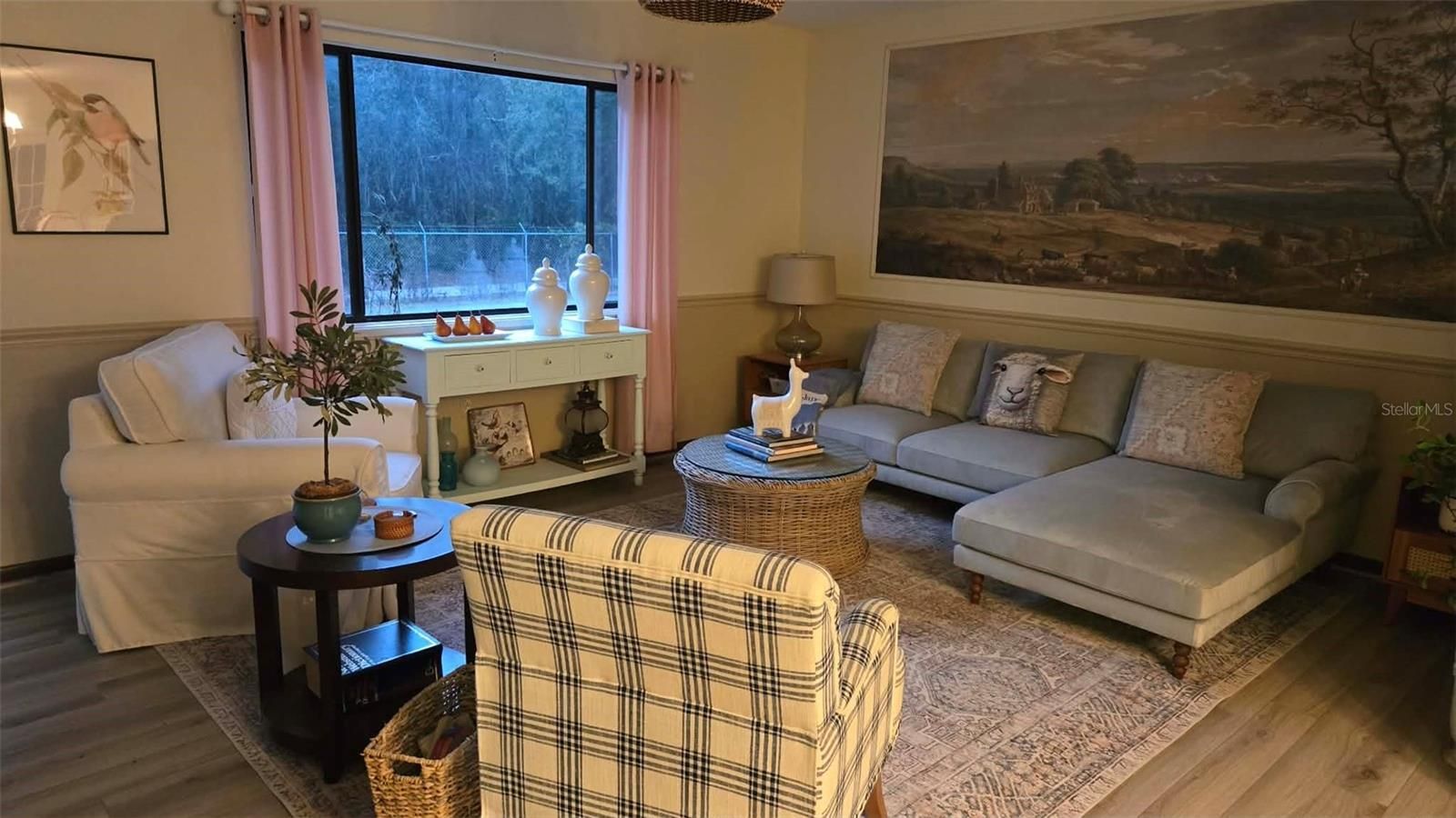 Welcome to your new home!! Home has a new roof 2024. Through out the freshly painted home is beautiful Wainscoting. The kitchen is a dream! Over the stove is a stained glass window with lighting. New appliances , counter top, kitchen sink and faucet. The laundry room has a barn door and a transom between the kitchen and laundry. No more carpet here, all laminate floors for easy care. The main bedroom has a beautiful glassed in shower, updated counters and a walk in closet. You can enjoy the Florida weather in the Florida room or go out to the screned room for those nice evenings. The colors are soothing.. lighting is georgous.. Come see all this home has to offer in Pine Run an active 55+ community with pools, clubhouses and many activities.
