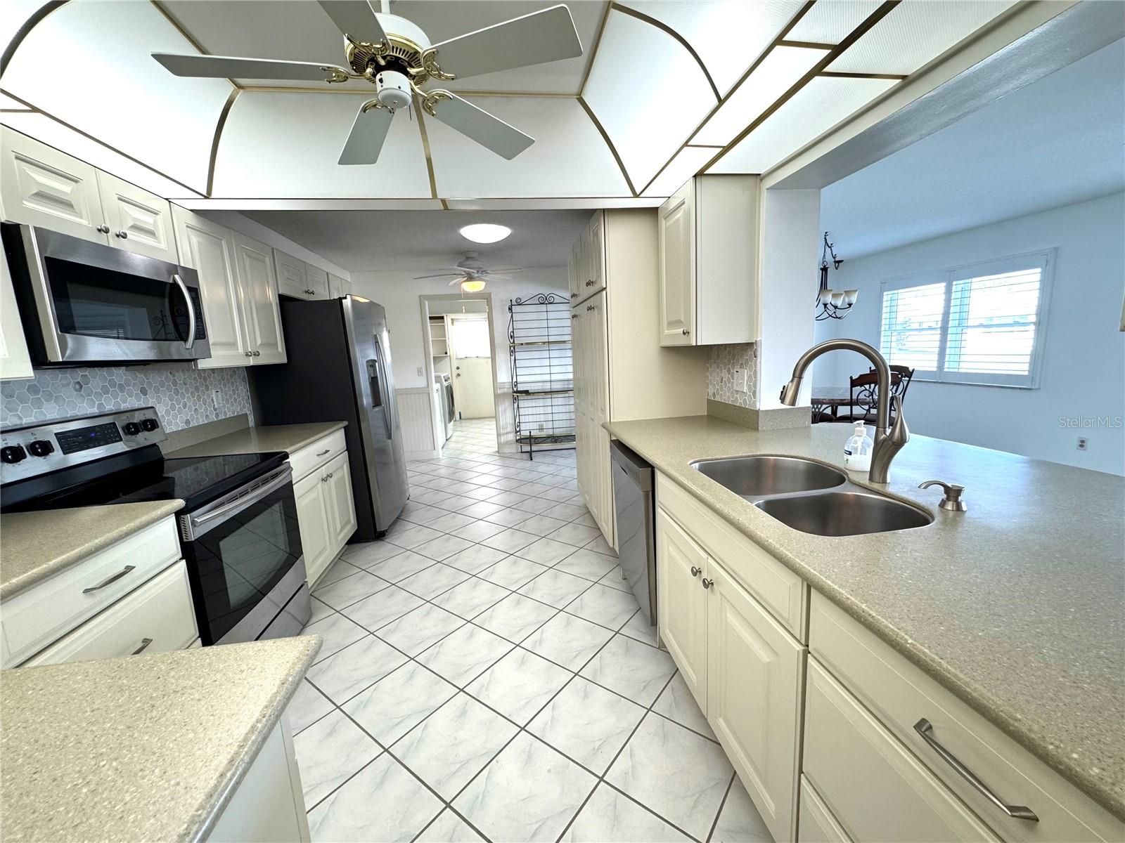 MOTIVATED SELLER! Beautiful home with a gorgeous water view! Well maintained spacious Eden model with a large 2 Car Garage. Updated kitchen with extra cabinets and sky light makes for a light and bright kitchen complete with stainless steel appliances. Capture the beautiful water view while at the kitchen sink. Very spacious family/living room with beautiful tile floors, updated windows, and incredible water views. Large master bedroom complete with a spacious walk-in closet and bathroom. Guest bedroom is also spacious with two built-in closets. Large laundry/utility room with plenty of storage. This home also features a Florida room to relax in with water views. Front porch is covered and a great place to enjoy a beverage and the outdoors. A/C installed in 2016 and Roof replaced in 2020. Mainlands of Tamarac by the Gulf Unit #3 is an active, 55 plus golf cart friendly community offering a clubhouse, heated in-ground pool, shuffleboard courts, public golf course & many other activities. H.O.A. fees are $528 monthly and include a majority of your expenses and utilities including, cable, internet, water, sewer, trash, lawn care, painting and roof repair.