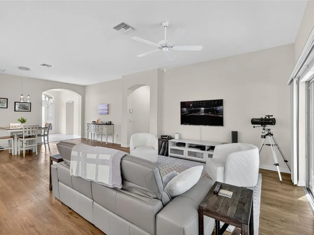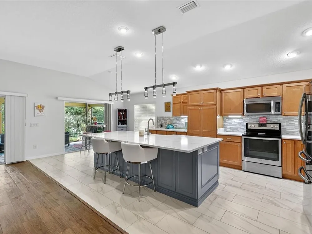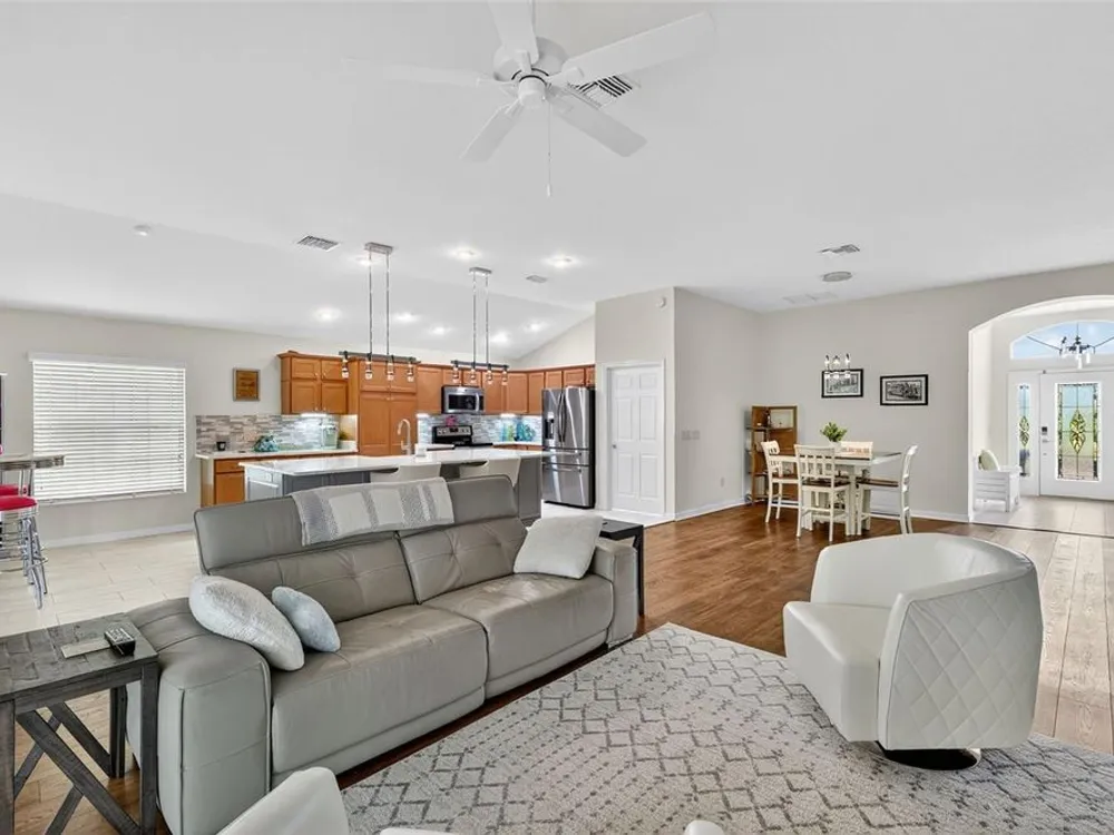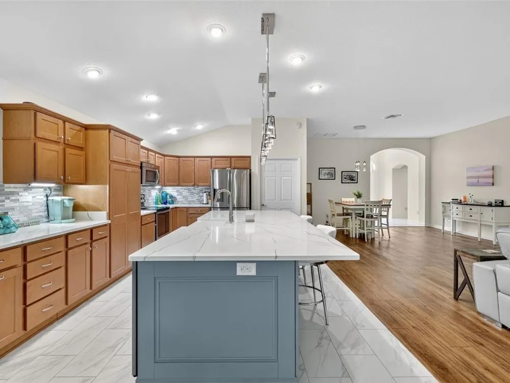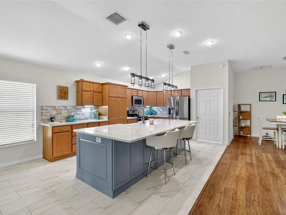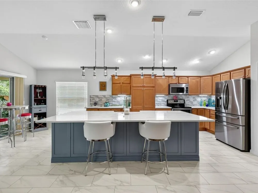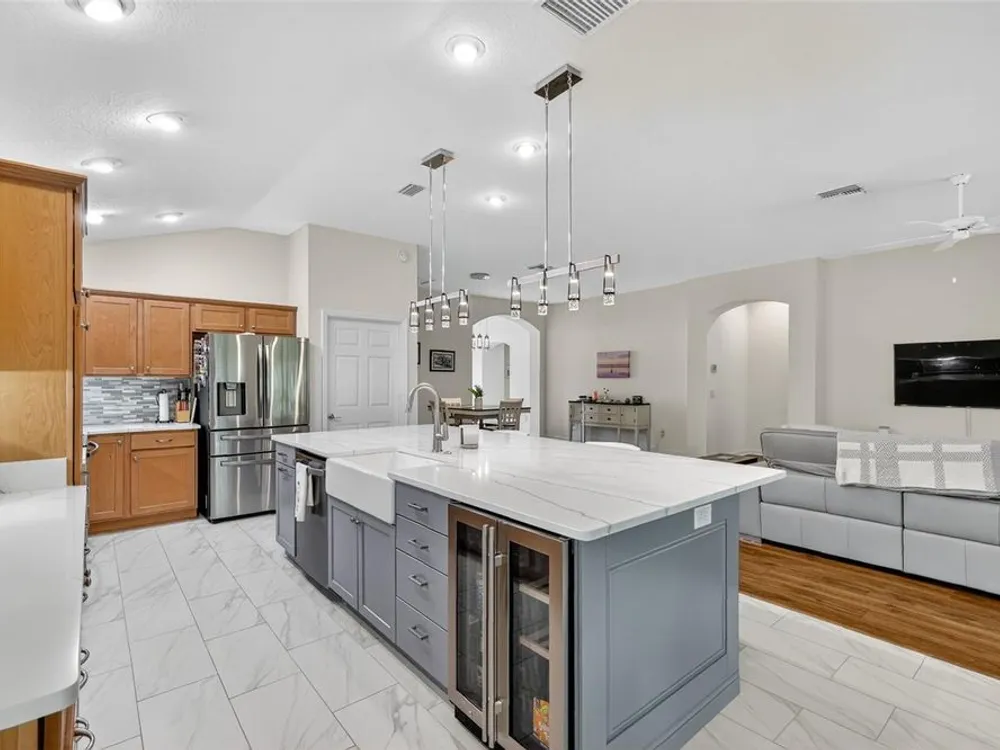 Your Permanent Vacation Awaits! This immaculate 3-bedroom, 2-bath home in Oxford isn't just a place to live—it's the key to the lifestyle you've been dreaming of. Step inside your private retreat; 2,066 sq. ft. of bright and airy space is where good times are waiting to happen. Perfectly blending SHOWPIECE DESIGN with workspace functionality, this kitchen is the natural social hub of the home, featuring a large center island, a built-in wine fridge, & beautiful soft-close cabinets—perfect for entertaining. With updated lighting throughout and ZERO CARPET, the entire home has a fresh, clean aesthetic that's both stylish & incredibly easy to maintain. Find tranquility in the master suite, where the bathroom has been beautifully refreshed with new floors and counters to for a spa-like escape. Now, step outside to the backyard, your private, garden-like oasis perfect for sipping morning coffee or unwinding in the evening. Plus, the oversized garage provides abundant space for your vehicles, golf cart, and hobbies. But the luxury doesn't stop at your doorstep. Owning this home gives you an all-access pass to the AMENITY-RICH private neighborhood that defines RESORT-STYLE living. Imagine your days spent lounging by the JAW-DROPPING resort-style POOL (or the second one!), relaxing in the jacuzzi, or getting active on the pickleball courts and putting green. For even more outdoor fun, enjoy the community dog park, scenic walking trails, and the PRIVATE BEACH WITH DOCK ACCESS TO LAKE MIONA! Rounding out the resort experience are a stunning clubhouse, a state-of-the-art GYM, and a beautiful banquet room. And the best part? The HOA handles all your lawn care and irrigation, giving you back your weekends to truly live the good life! Explore the full scope of this vibrant social community at www.LakesideLandings.org. What ties this perfect package together is the unbeatable location. Bordering The Villages, you're just moments from the vibrant energy of Lake Sumter Landing & Brownwood Town Squares. Ocala, Orlando, and both coasts are just a day trip away! World-class shopping, endless dining options, and top-tier medical facilities are all nearby. This isn't just a lifestyle choice; it's a smart money move. For savvy investors & discerning homeowners, the financial advantage here is HUGE: there is NO BOND in this community, saving you thousands. Watch Virtual Tour 1 and Click on Virtual Tour 2 for the Floorplan. All information must be verified by buyer and/or their agent. Grab your sunglasses & call me to make this permanent vacation yours!