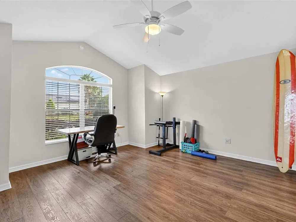 - Ceiling Fan(s), Eat-in Kitchen, High Ceilings, Open Floorplan, Solid Surface Counters, Vaulted Ceiling(s), Walk-In Closet(s)
