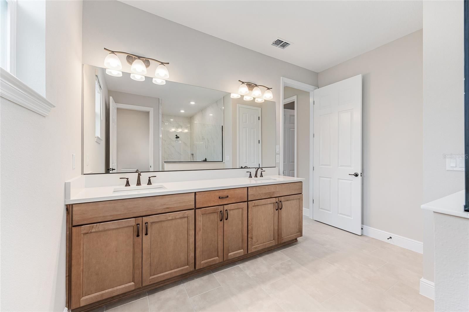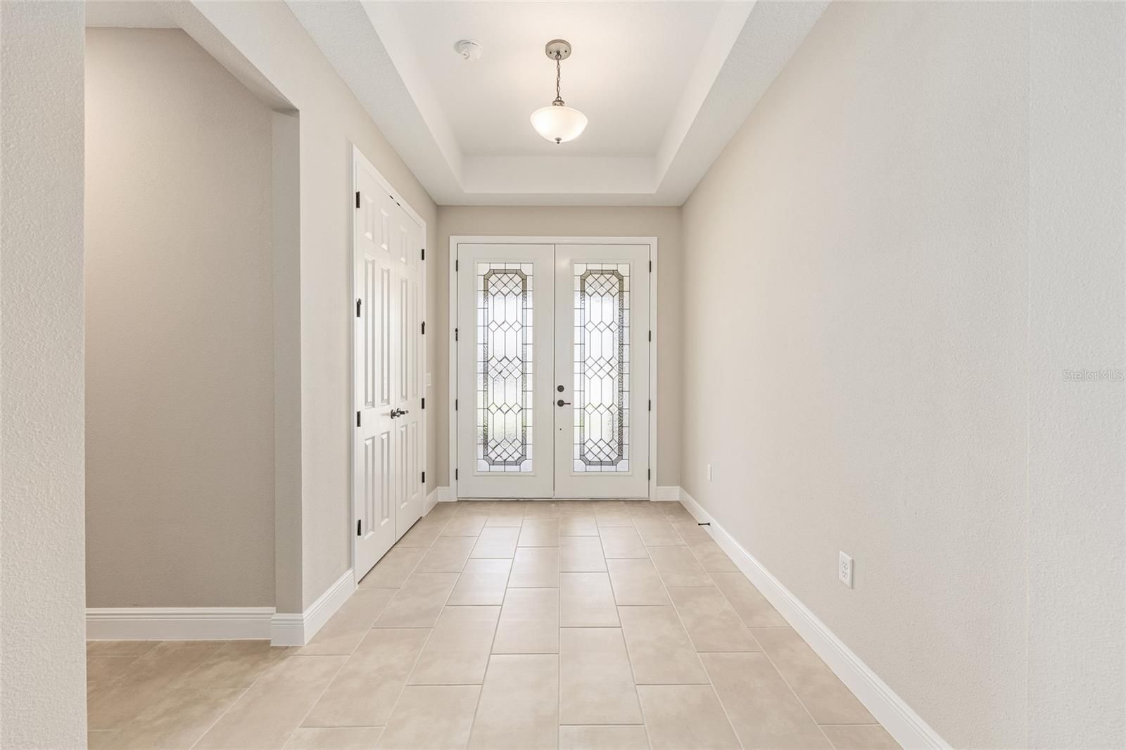 Welcome to the Wellington model, located in the sought-after Balfour community at On Top of the World. This beautifully designed home offers 3 bedrooms, 3 bathrooms, and a 3-car garage, with a paver driveway and walkway leading to elegant French entry doors. Inside, you’ll find tile flooring throughout and elegant tray ceilings that add a touch of sophistication to the open floor plan. A separate dining room provides the perfect space for gatherings, while the living area features a sliding glass door that opens to the screened lanai for seamless indoor-outdoor living. The chef’s kitchen boasts rich brown staggered cabinets with crown molding, built-in oven and microwave, 5-burner cooktop with range hood, stainless steel refrigerator and dishwasher, backsplash, under-cabinet lighting, walk-in pantry, and a large island. The private owner’s suite is a true retreat with a tray ceiling, 3-panel window overlooking the backyard, and a walk-in closet with convenient access through to the laundry room. The luxurious en suite features a double vanity sink with quartz counters, a zero-entry tiled shower with a built-in bench, and a linen closet. One of the guest bedrooms also offers a walk-in closet and its own en suite with a single vanity and a tiled tub/shower combination, perfect for visiting family or friends. Designed with comfort and style in mind, the Wellington model offers modern finishes, spacious living, and thoughtful details—ready for you to call home. Residents of On Top of the World enjoy an active-adult lifestyle with access to championship golf courses, fitness centers, swimming pools, pickleball and tennis courts, walking trails, and a wide variety of clubs and social activities.