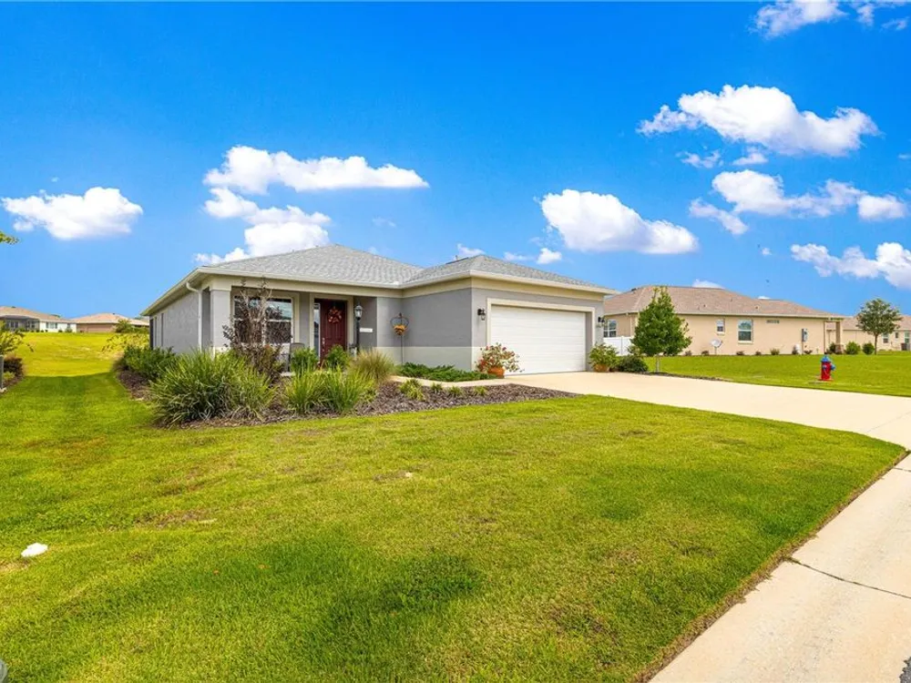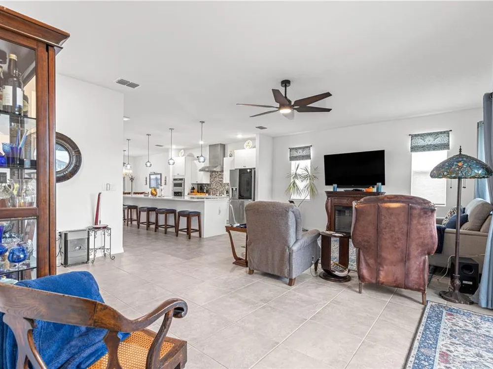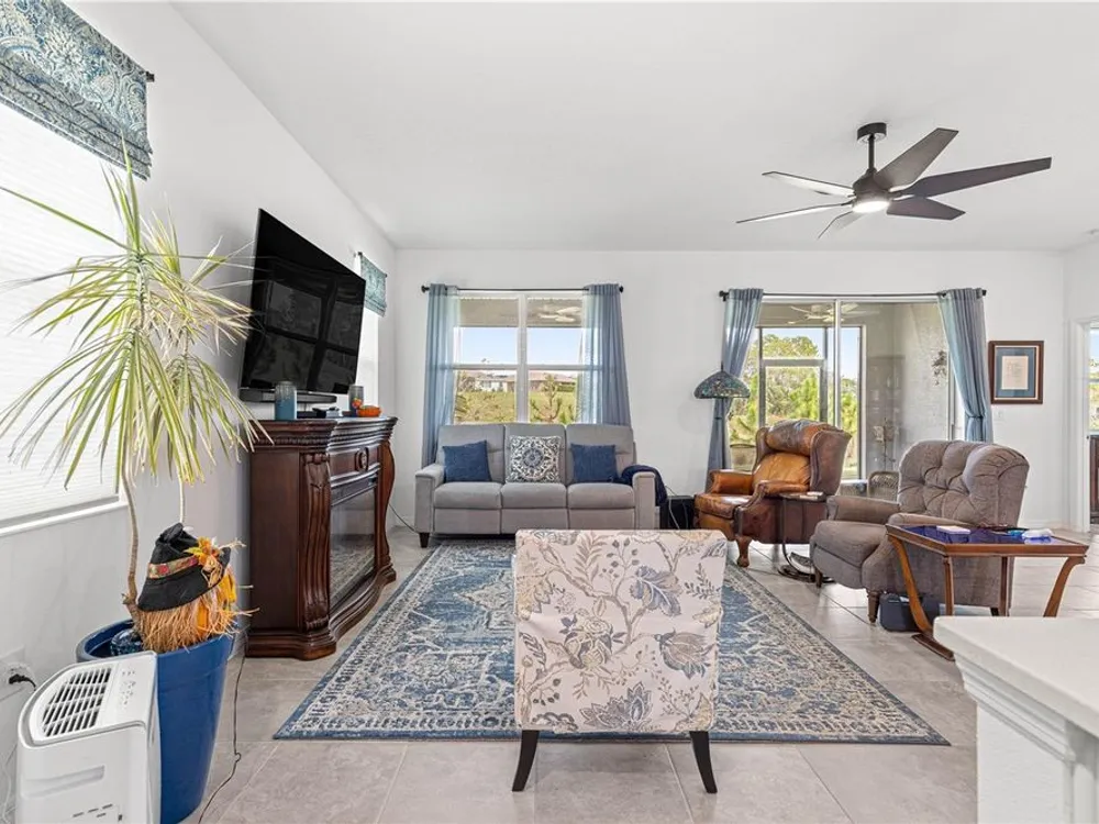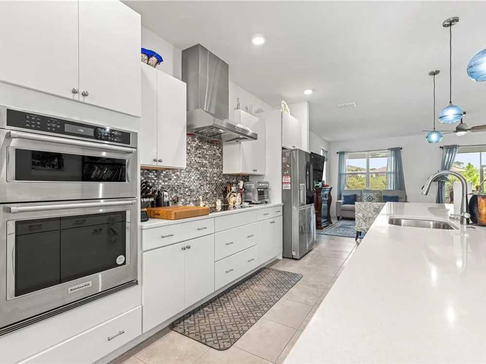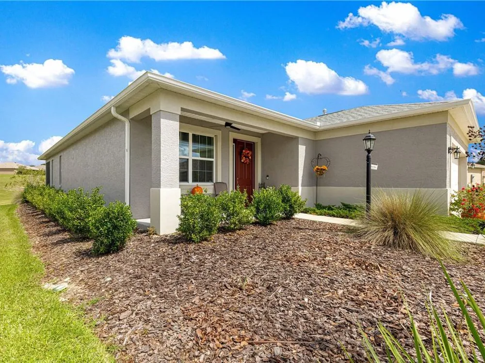 Elegant and modern, this Orchid Model home in the desirable On Top of the World community combines comfort, luxury, and privacy in a serene cul-de-sac setting. Built in 2022, this 3-bedroom, 2-bath home is perfectly positioned on a choice lot backing onto an expansive retention pond, offering peaceful views from the screened lanai—an ideal spot for morning coffee or evening relaxation. Inside, the open-concept design centers around a spectacular chef’s kitchen featuring a 15-foot quartz island perfect for entertaining. The kitchen is equipped with high-end stainless-steel appliances, soft-close cabinetry, a gorgeous tile backsplash, and abundant prep and storage space. The natural flow extends into the dining and living areas, enhanced by upgraded lighting fixtures and ceiling fans throughout. The primary suite includes a spacious walk-in closet and a luxurious main shower with modern finishes, while two additional bedrooms provide ample space for guests or a home office. Additional enhancements include a whole-house surge protector, water softener and filtration system, rain gutters, and an insulated garage extended by four feet for added storage or workspace. This smart home is designed for efficiency and convenience, blending technology with everyday living. Residents enjoy maintenance-free living with the HOA covering basic internet, trash removal, lawn mowing and edging, and exterior repainting every seven years. The community’s extensive amenities are easily accessible by golf cart, including grocery stores, multiple pools, fitness centers, and Veterans Park—making this an exceptional home for those seeking both privacy and active living in one of Florida’s premier 55+ communities.
