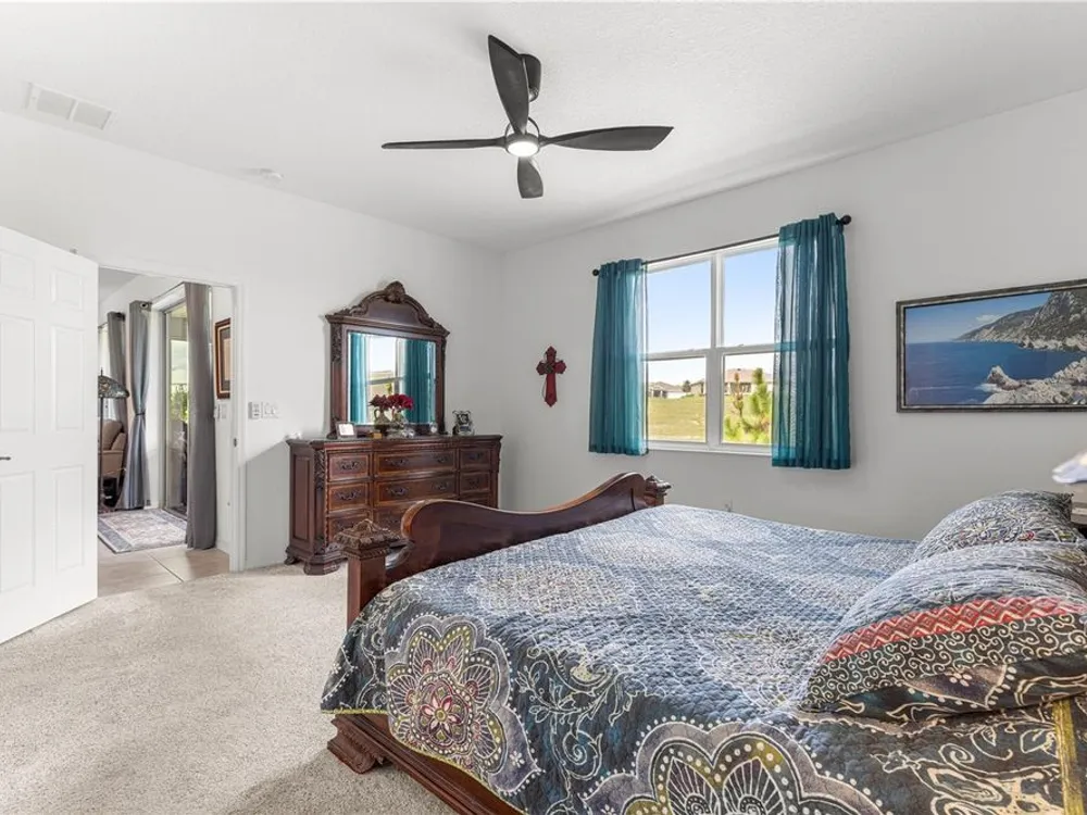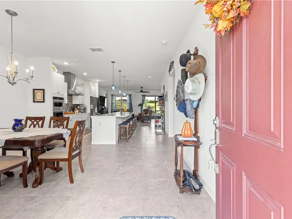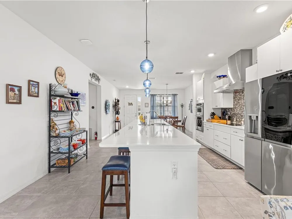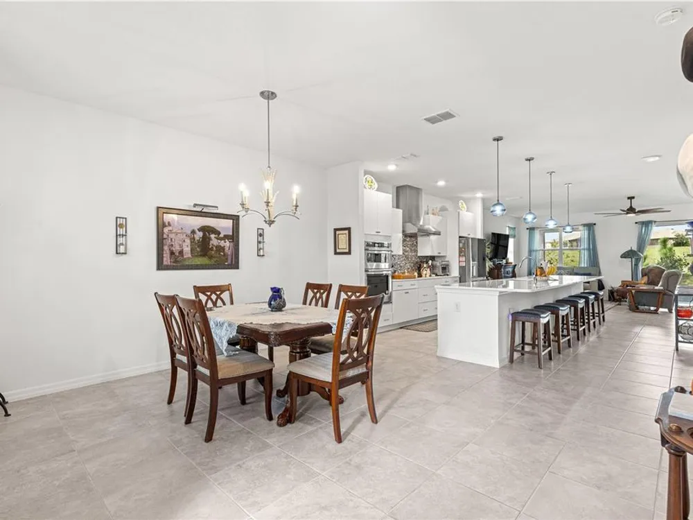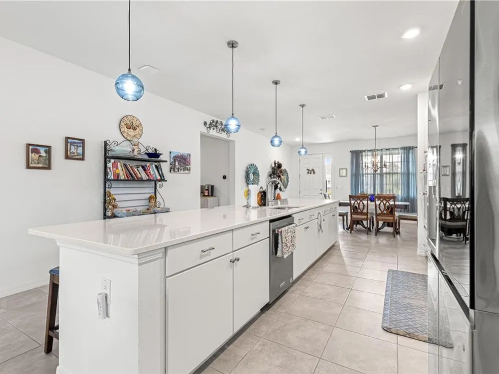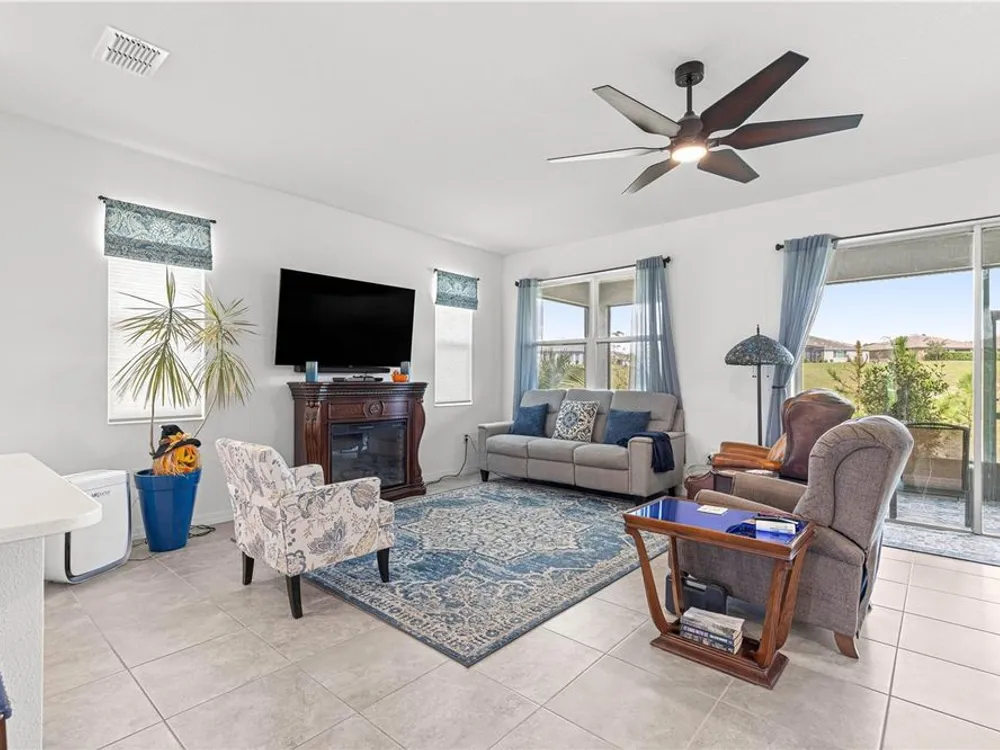Elegant and modern, this Orchid Model home in the desirable On Top of the World community combines comfort, luxury, and privacy in a serene cul-de-sac setting. Built in 2022, this 3-bedroom, 2-bath home is perfectly positioned on a choice lot backing onto an expansive retention pond, offering peaceful views from the screened lanai—an ideal spot for morning coffee or evening relaxation. Inside, the open-concept design centers around a spectacular chef’s kitchen featuring a 15-foot quartz island perfect for entertaining. The kitchen is equipped with high-end stainless-steel appliances, soft-close cabinetry, a gorgeous tile backsplash, and abundant prep and storage space. The natural flow extends into the dining and living areas, enhanced by upgraded lighting fixtures and ceiling fans throughout. The primary suite includes a spacious walk-in closet and a luxurious main shower with modern finishes, while two additional bedrooms provide ample space for guests or a home office. Additional enhancements include a whole-house surge protector, water softener and filtration system, rain gutters, and an insulated garage extended by four feet for added storage or workspace. This smart home is designed for efficiency and convenience, blending technology with everyday living. Residents enjoy maintenance-free living with the HOA covering basic internet, trash removal, lawn mowing and edging, and exterior repainting every seven years. The community’s extensive amenities are easily accessible by golf cart, including grocery stores, multiple pools, fitness centers, and Veterans Park—making this an exceptional home for those seeking both privacy and active living in one of Florida’s premier 55+ communities.