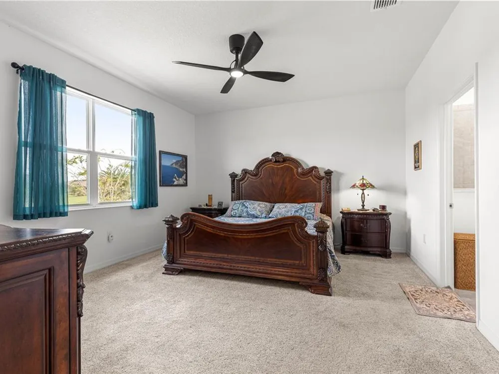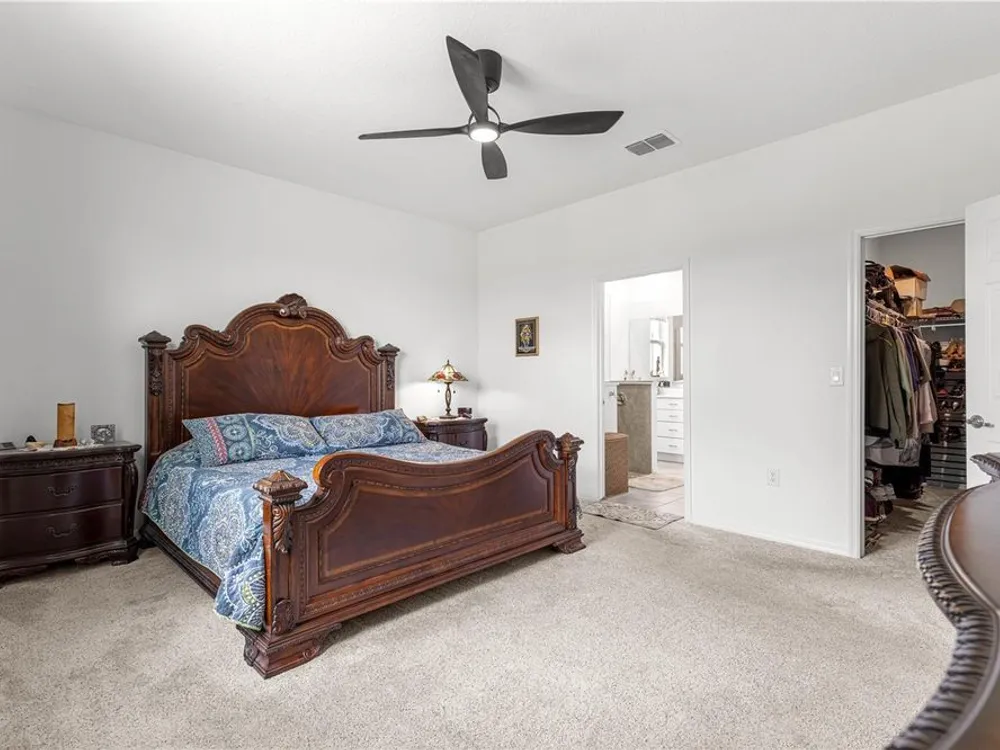- Ceiling Fan(s), Eat-in Kitchen, High Ceilings, Open Floorplan, Main Level Primary, Smart Home, Solid-Wood Cabinets, Stone Counters, Window Treatments