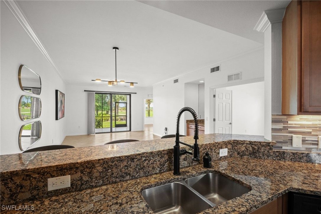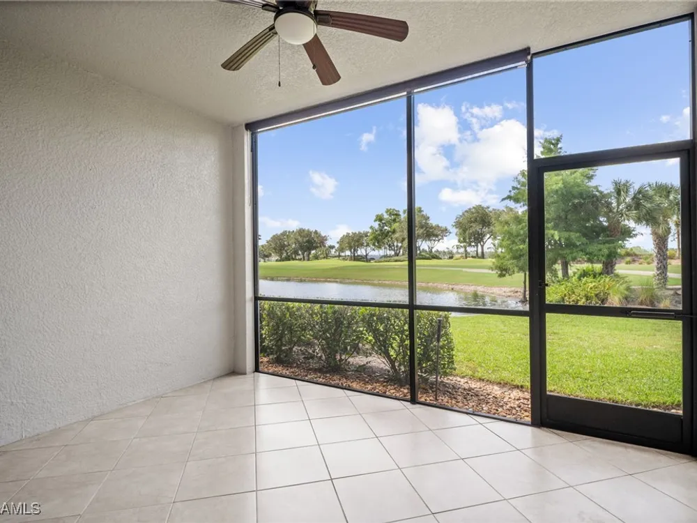 Golf membership is INCLUDED with this gorgeous first floor, end unit "Abbey" model veranda condo, featuring a stunning southern golf and lake view. The Abbey model is wide & spacious with lots of extra windows for tons of natural light! This condo has been well-maintained and upgraded: freshly painted, added LVP flooring in the bedrooms, wood plank tile in the den, and modern fixtures throughout. The entire condo is hurricane impact glass and sliders for added peace of mind! Heritage Bay features a stunning 27-hole Lewis-Azinger designed golf course and aqua driving range. The grand clubhouse offers diverse dining options, elegant event spaces, and a lively social scene. Have a bite to eat in The Grille Room— a casual indoor/outdoor bar & dining area, with an incredible southern view of the 27th green. Members can also enjoy a resort-style pool area with heated spa & 'The Cabana' poolside bar & grille with a full service kitchen. The community also includes a top-notch tennis program with 7 har-tru clay courts, pickleball & bocce courts, and a state-of-the-art fitness center. With a calendar full of events and activities, Heritage Bay ensures a vibrant and luxurious lifestyle for its members. Whether you're a golf enthusiast or simply looking for serene views and luxury living, Heritage Bay offers it all. 2019 special assessment for amenities renovations paid in FULL