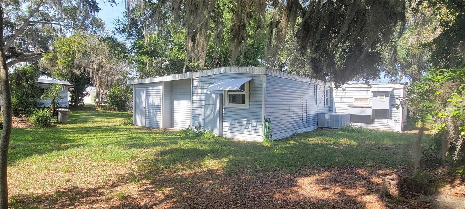TURNKEY, FURNISHED, NO BOND! Open the door, and step up into the warm and cozy living room of this unique single wide manufactured home in The Villages. The only single wide in The Villages which features: kitchen, living room, dining room and bonus room along with 2 bedrooms, master with large walk-in closet, and 2 full baths. Nestled among many oak trees, where little sunlight heats the property. Located in the Village of Orange Blossom Gardens, one of the most serene and peaceful communities in all of Florida. This home features a dedicated 13 x 12 fully-outfitted dream workshop with its own AC, and an adjacent screened-in lanai. One bath has a tub/shower and the other is a step-in shower with seats. The beautifully finished inside laundry room has cabinets/shelves and leads to a large storage room with shelves and stand-up freezer. Home also has a large bonus room which can be: office, crafts, exercise, music, bar or even a 3rd bedroom with sliding glass doors that exits to a completely shaded outdoor patio. The kitchen features an island with outlets for your morning coffee, plenty of cabinets, deep sink with an aerator and an extra large refrigerator. Home also has a true dining room with custom shelves and cabinets. All plumbing has been replaced (no gray pipe) with most electrical updated with lots of dimmers & three way switches. Location is ideal as it’s right off highway 441 with plenty of restaurants, stores, entertainment, many services including medical and home improvement stores. Spanish Springs Square is one of several squares which features nightly entertainment/restaurants/shopping, is a short golf cart ride away. The Villages is the largest & most active 55+ community in Florida. Features all yr round golf with over 100 golf courses and community pools that also have hot tubs. Enjoy all kinds of clubs, classes, sports and hobbies that are endless! INVESTOR: Here is an amazing opportunity to create an extraordinary experience for your short term rental portfolio! Staging Decorations do not convey in this sale. NEW roof sealant 2025, NEW central AC 2025, New AC in workshop 2025, HWH 2007. You get over 7K in upgrades without an increase in price - sellers loss, your gain!