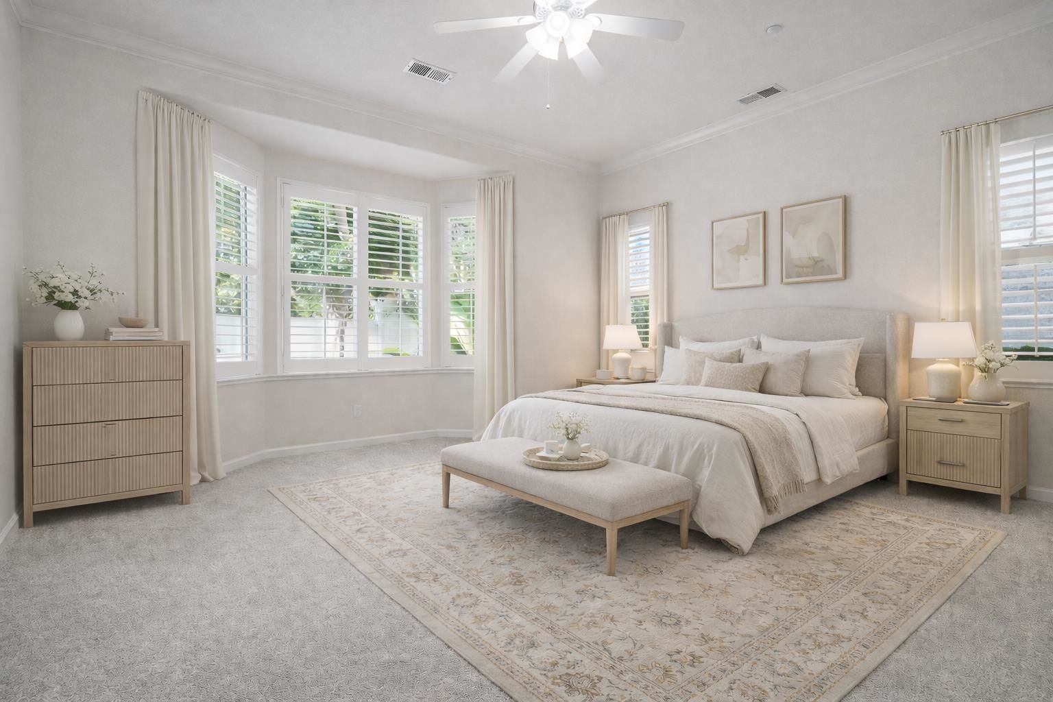 Step into this immaculate home that’s just like new! Fresh interior paint and new carpeting create a warm, inviting atmosphere, while the brand-new appliances, new HVAC system, new water heater, and modern plumbing fixtures ensure peace of mind for years to come. Situated on a desirable corner lot, this residence offers two spacious bedroom suites for privacy, a generous office for work or hobbies, and an indoor laundry room with abundant storage. The utility room off the garage adds even more functionality. Light and bright throughout, this home is designed for both relaxation and convenience -- ready for you to move in and make it your own! Come join this wonderful 55+ community with all its amenities: lodge, ballroom, gym, game rooms, library, tennis & pickle ball courts, bocce courts and our own park with picnic tables and BBQs and activities too numerous to mention! Life is good here!