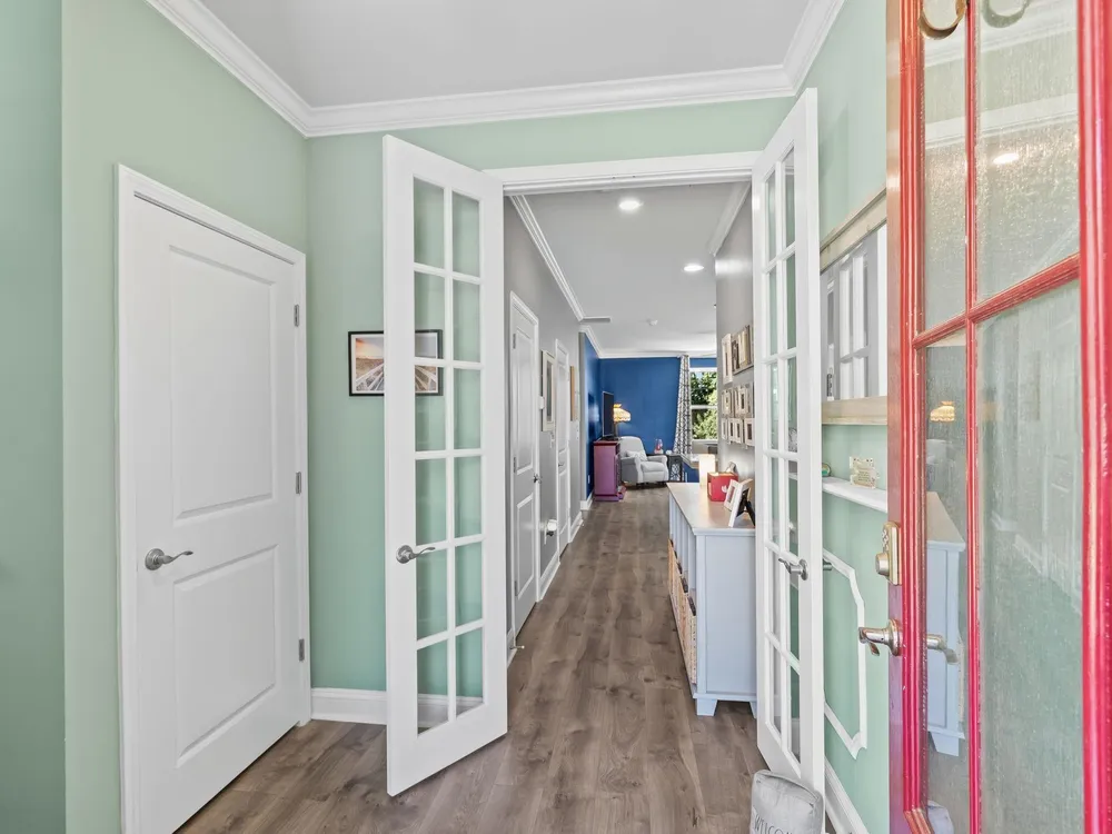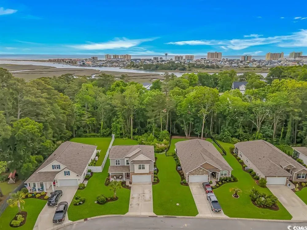 PREMIUM LOT, FULLY UPGRADED, POPULAR FLOOR PLAN, IDEAL LOCATION! GOLF CART RIDE TO THE BEACH! The community of Waters Edge is quietly tucked away near the sweet spot where Hoggs Inlet feeds the Atlantic Ocean to the Cherry Grove channels and you can literally hear the waves crash on quiet breezy evenings from your backyard oasis and from the upstairs bedroom you even get a slight ocean view. Every once in a while a property becomes available that truly has it all! The minute you walk into this meticulously maintained Belfort floorplan you will see that every detail was considered. This open concept floorplan not only gives you a master suite on the first floor but also delivers a huge, fully updated kitchen overlooking a spacious living area making this showstopper perfect for entertaining! Some of the countless upgrades include stainless steel appliances, granite countertops, subway tile backsplash, crown molding, ashen oak smooth laminate flooring, cultured marble countertops in bathrooms, Stefan brushed nickel lighting, cape coast tile in the baths and laundry room, fully screened in back patio, french doors added in the foyer and many more! Upstairs boasts an additional 3 bedrooms and a massive secondary living room area perfect for guests or kids. This home has numerous closet spaces for ample storage and 9-foot ceilings on the main level capitalize every heated square foot. This highly sought-after neighborhood puts you a golf cart ride to the beach or the shopping and dining that North Myrtle Beach is famous for. Waters Edge also has a wonderful community pool, and gym, and the HOA even includes your landscaping and internet!! The good ones never last so schedule your showing today and as always...WELCOME HOME