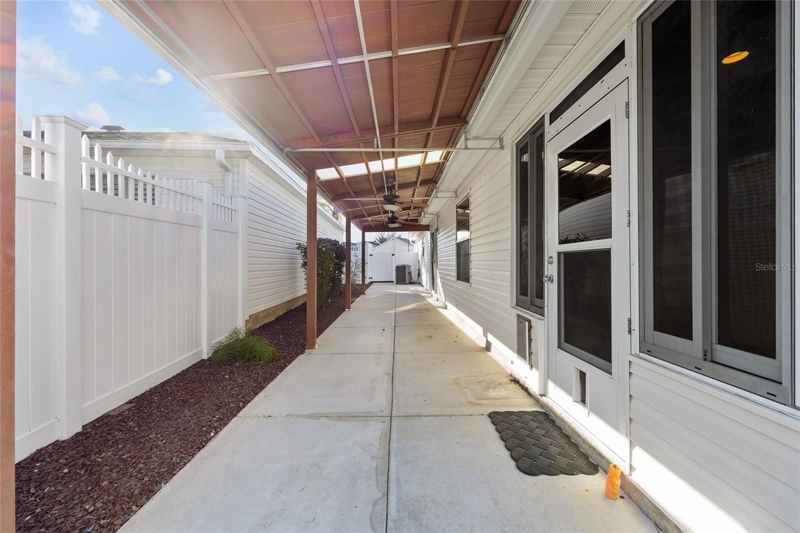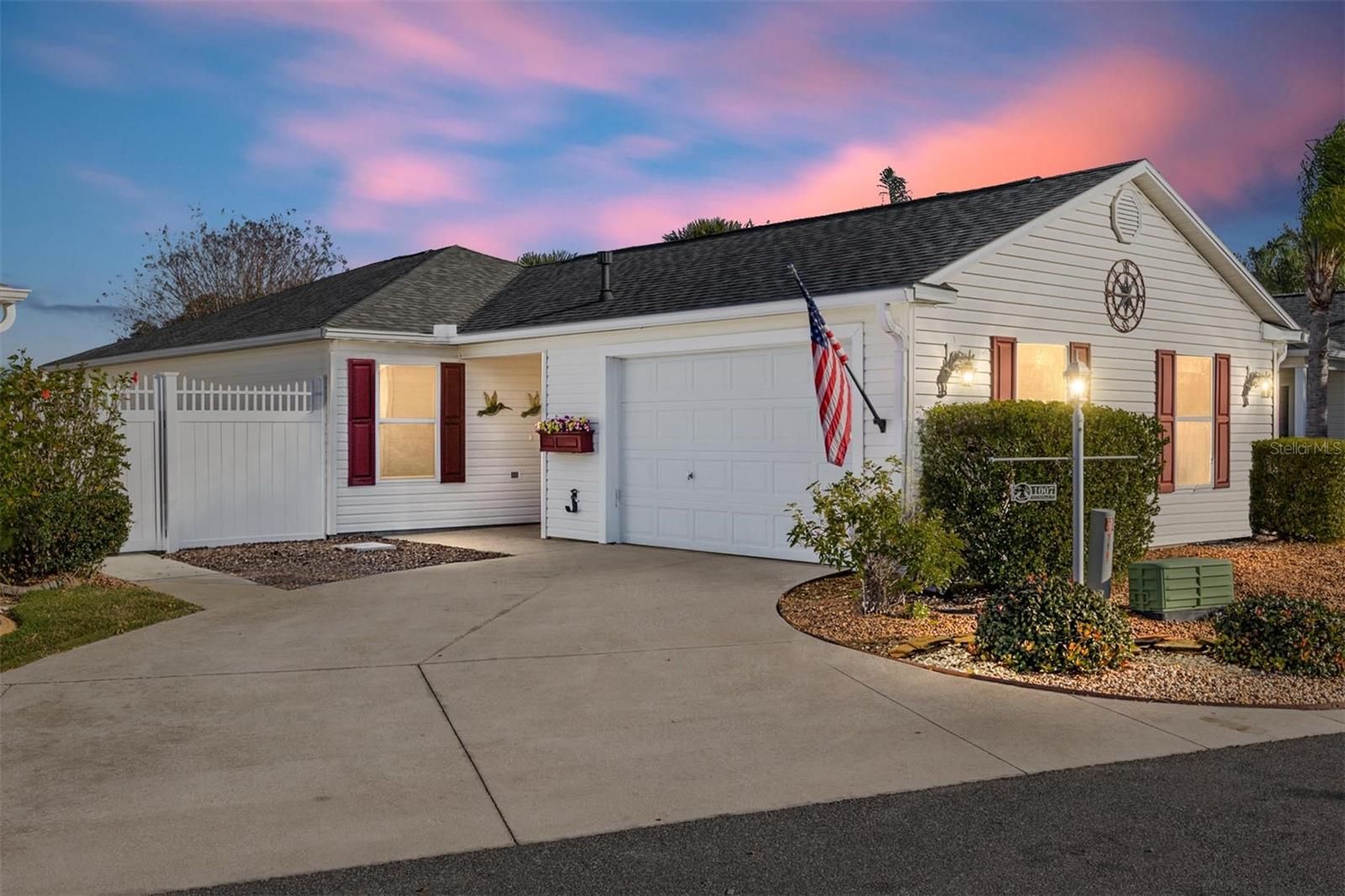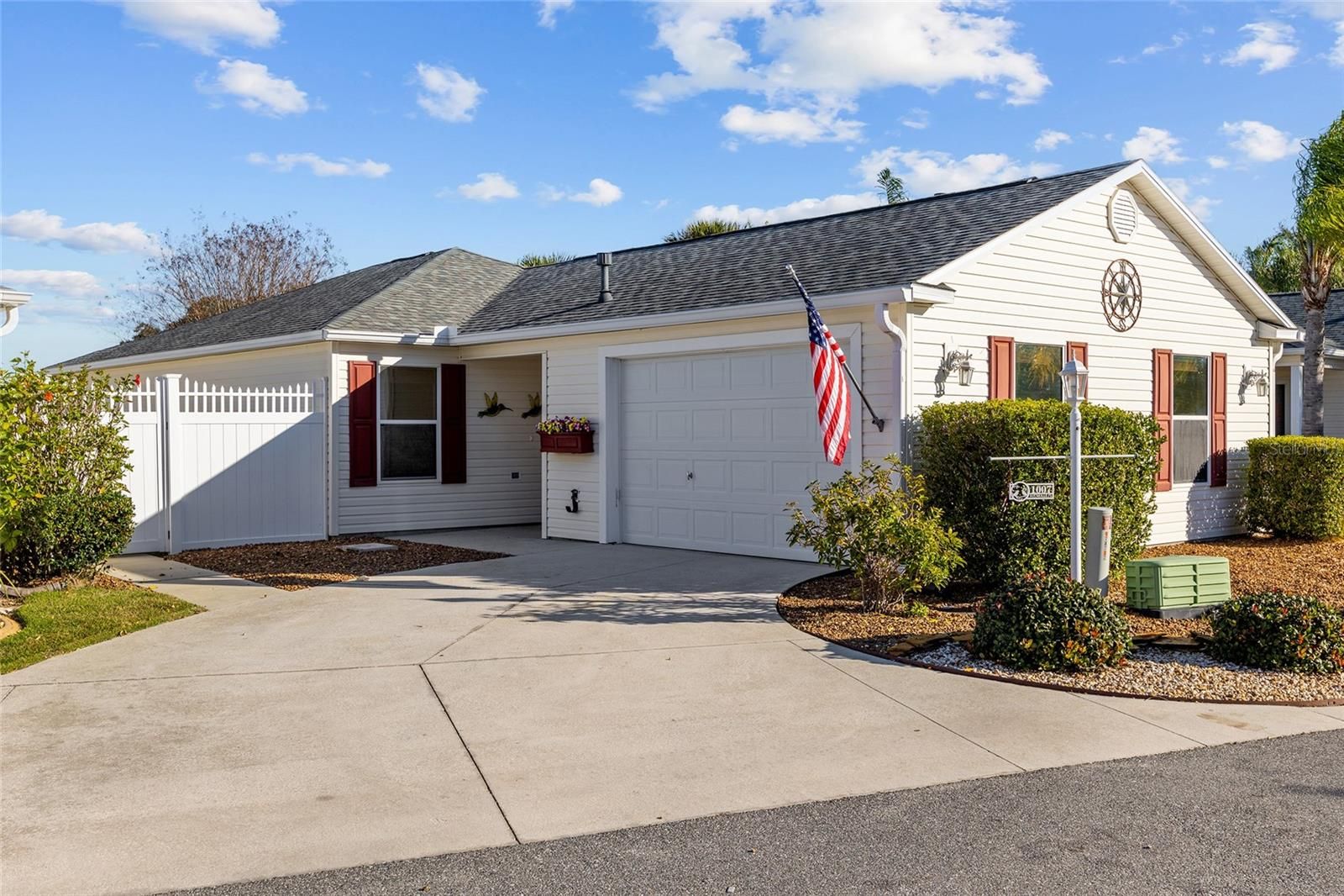 Village of SABEL CHASE, Carlton Villas, MARATHON Courtyard Villa! Built in 2006, this 2 Bedroom/2 Bath home has an ENCLOSED Florida Room (Under Heat & Air from the Main Unit) = 1,278 Sq Ft!! ** ROOF: 2022 ** HVAC with Gas Furnace: 09/2020 ** Gas Water Heater with Expansion Tank: 2021 ** The Exterior features Gutters & Downspouts, Rock Mulch, Landscape Beds with Concrete Curbing, SIDE Pergola with Roof & Ceiling Fans, and a Privacy Wall! -- Entering this home, you will find High & Vaulted Ceilings in Living Areas, Laminate and Tile Flooring Throughout (NO CARPET!!) -- REMODELED KITCHEN with Water Resistant Laminate Flooring, Beadboard Front Cabinets & Crown Molding, Custom Pulls & Tiled Backsplash. CUSTOM SERVING Buffet with Built-in Cabinets. The Dining Room has a 6 Ft Slider to Side Courtyard with Custom Bamboo Shade & Valance. The Living Room has a Ceiling Fan with Light and Entry to Florida Room! The Primary En-Suite Bedroom has Water Resistant Laminate Flooring, Vaulted Ceiling, Ceiling Fan with Light, Window to Backyard, Walk-in Closet (5.5 Ft x 8 Ft) and the En-Suite Bathroom has a Single Vanity, Step-in Shower and Commode. The Guest Bedroom has A Built-in Closet with Extra Shelving/Organization, Built-in Queen Size Murphy Bed with Side Storage. The Guest Bathroom has Water Resistant Laminate Flooring, Large Single Vanity, Tub/Shower Combo with Grab Bar, Glass Slider Doors and Removable Sprayer. The Florida Room (Acrylic Slider Windows) has Tile Flooring and is Under Heat & Air from the Main Unit, 2 Recessed Lights, Ceiling Fan, Entry from Living Room, Chair Rail, 2 Pet Doors and Door to Courtyard!! The Garage has One Car with Golf Cart Parking, Ceiling Fan, Attic Access with Pull-down Stairs, Utility Sink, Mounted Wall Cabinets, Irrigation System and 2024 LG ThinQ Front Load Washer on Pedestal and 2024 LG ThinQ Dryer (Electric with Capped Gas Line) on Pedestal. Don’t miss out on this GEM in a GREAT LOCATION and start enjoying the Florida Lifestyle!!!