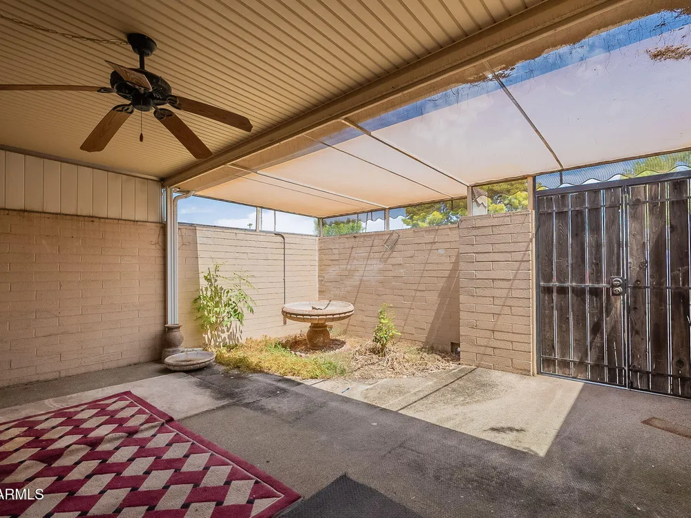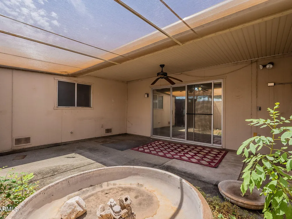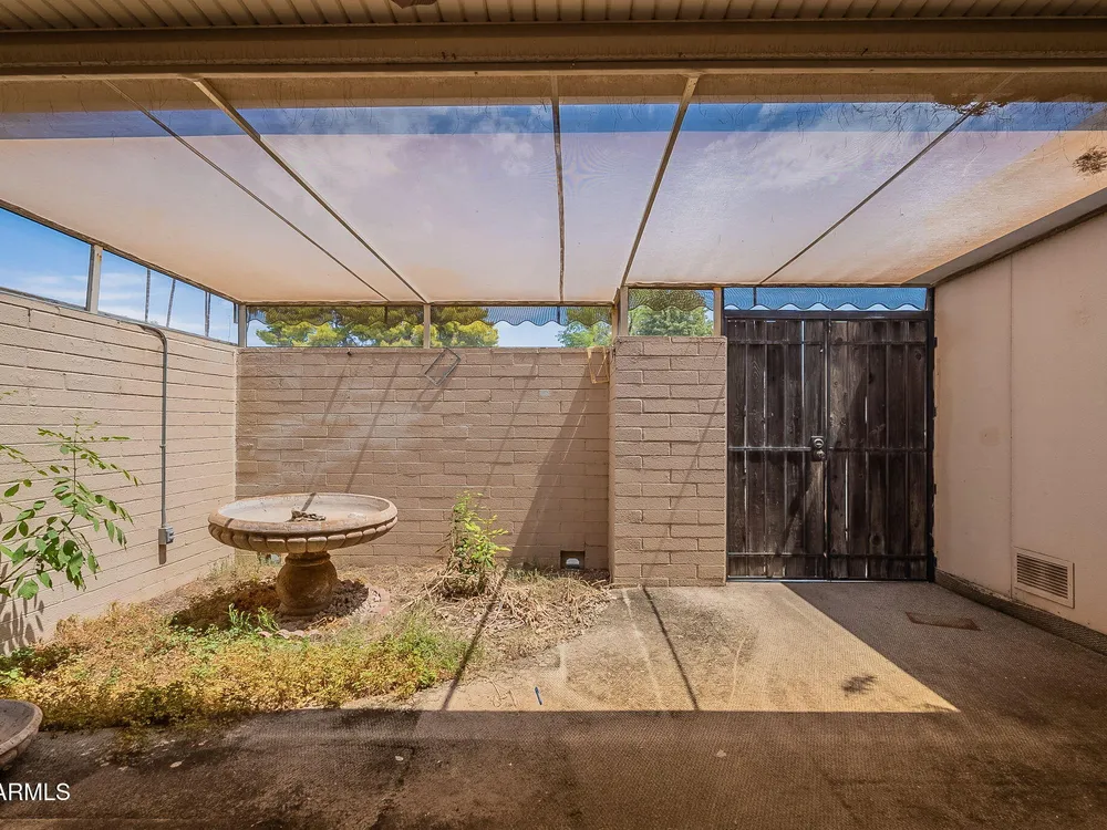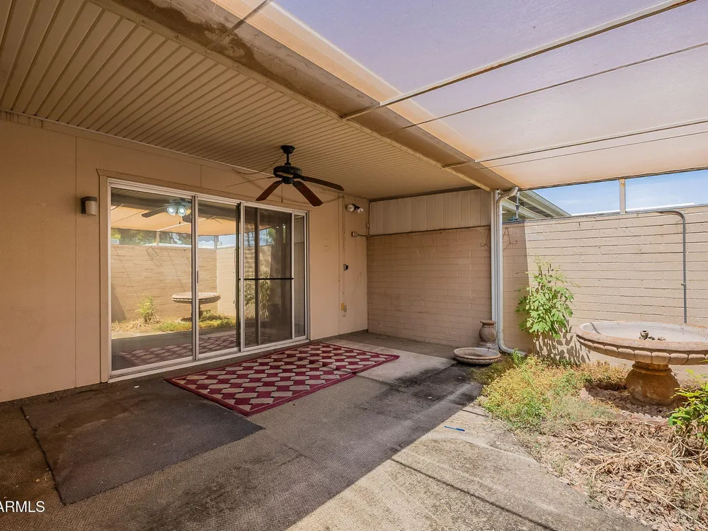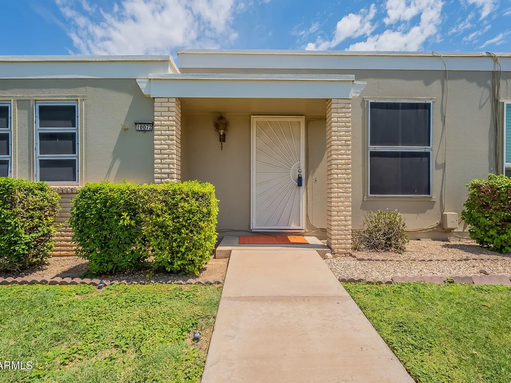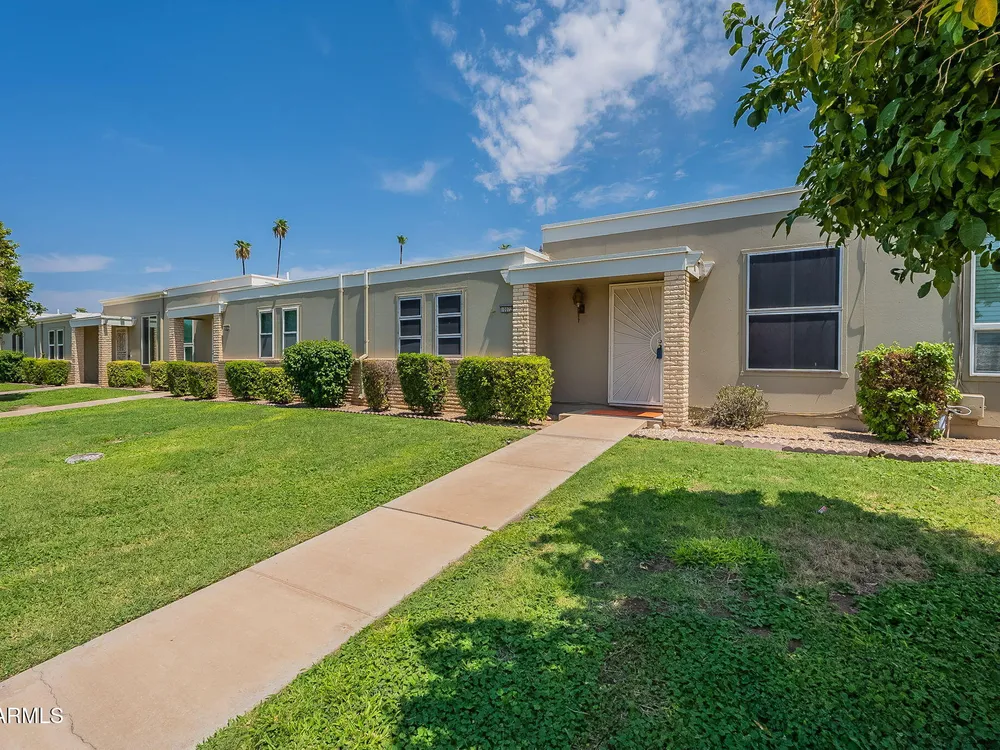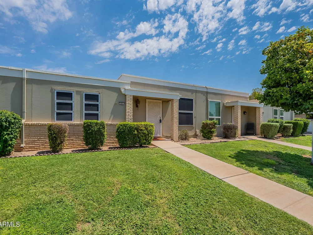 Priced to sale! Make this mid-century townhome what you desire, located in the heart of Sun City, offering you 1,224 sqft, 2 large bedrooms, both with walk-in closets, 1 full bath, tall ceilings in the main expansive living area and plenty of room in the kitchen and dining area to make it your own. Enjoy the Arizona room overlooking your covered private covered patio. One car garage with plenty of storage. Prime location near shopping, dining, golf, and medical facilities. Enjoy full access to Sun City's 55+ amenities including pools, spas, pickleball, tennis, fitness centers, arts & crafts studios, and social clubs. Perfect for year-round or seasonal living in a vibrant active adult community. Don't miss out on this gem.